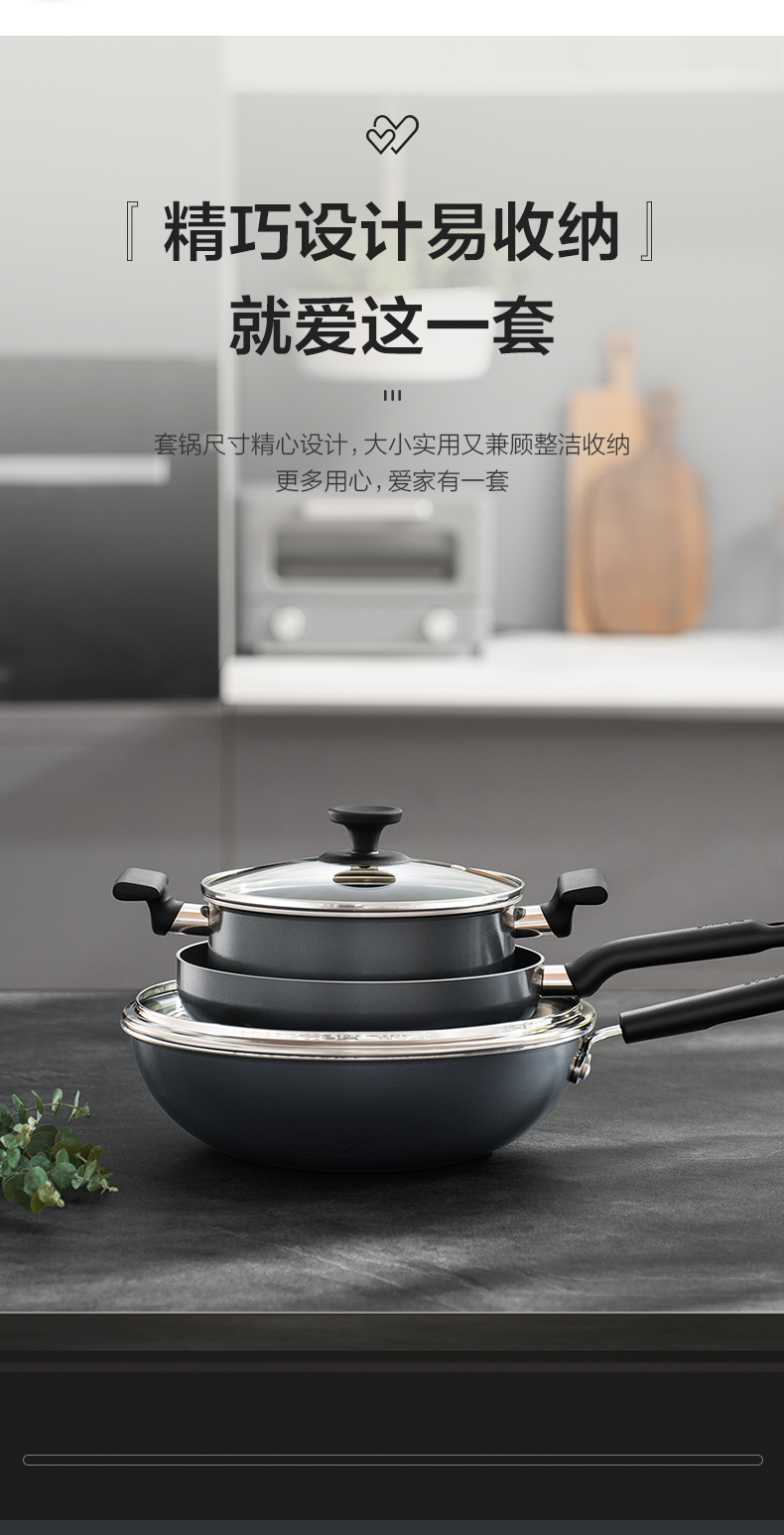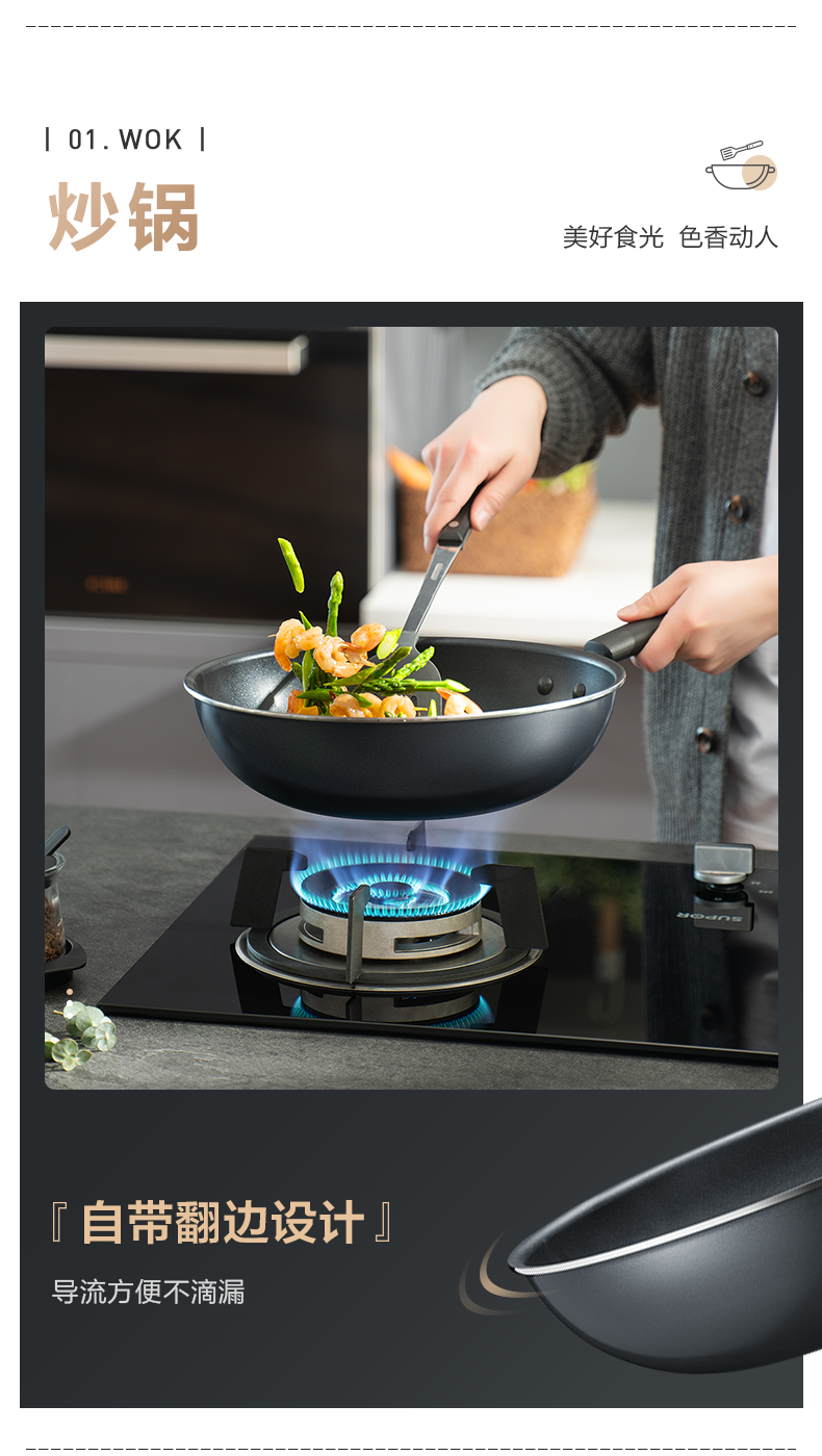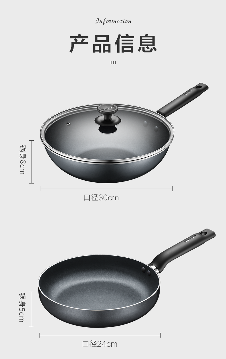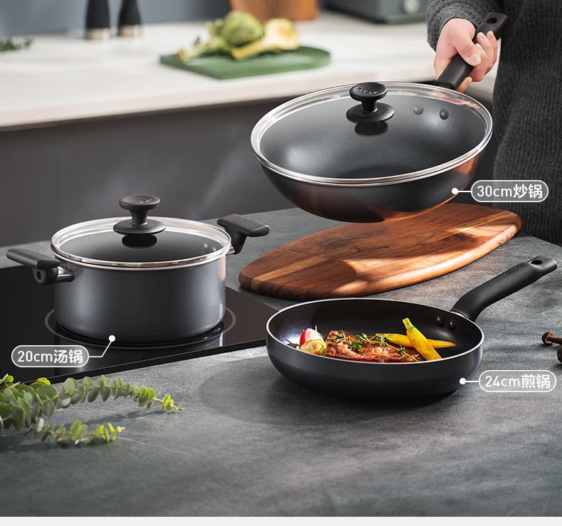 SUPOR pot set non-stick wok soup pot frying pan three-piece pot set wok pot household gas induction cooker universal wok + frying pan + soup pot 3-piece set