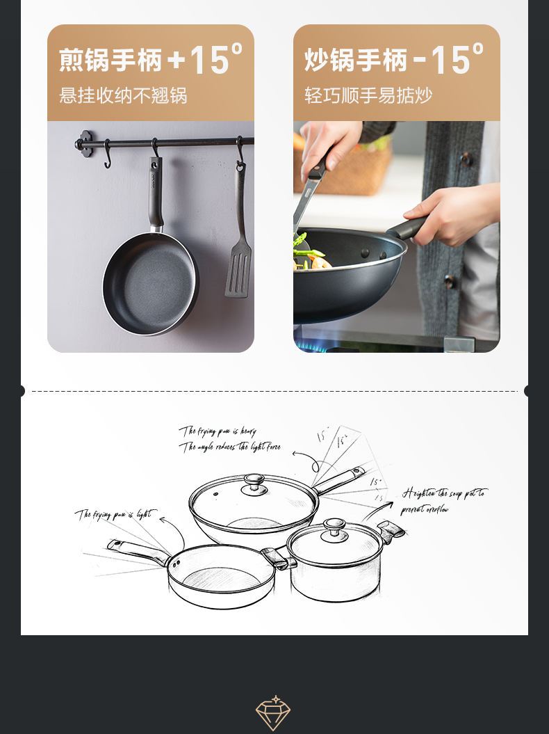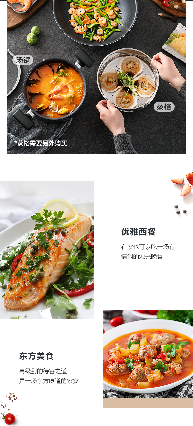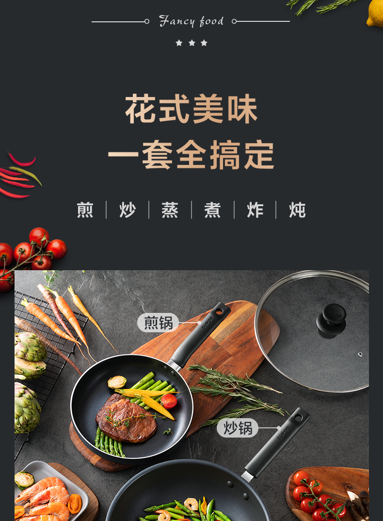 SUPOR pot set non-stick wok soup pot frying pan three-piece pot set wok pot household gas induction cooker universal wok + frying pan + soup pot 3-piece set