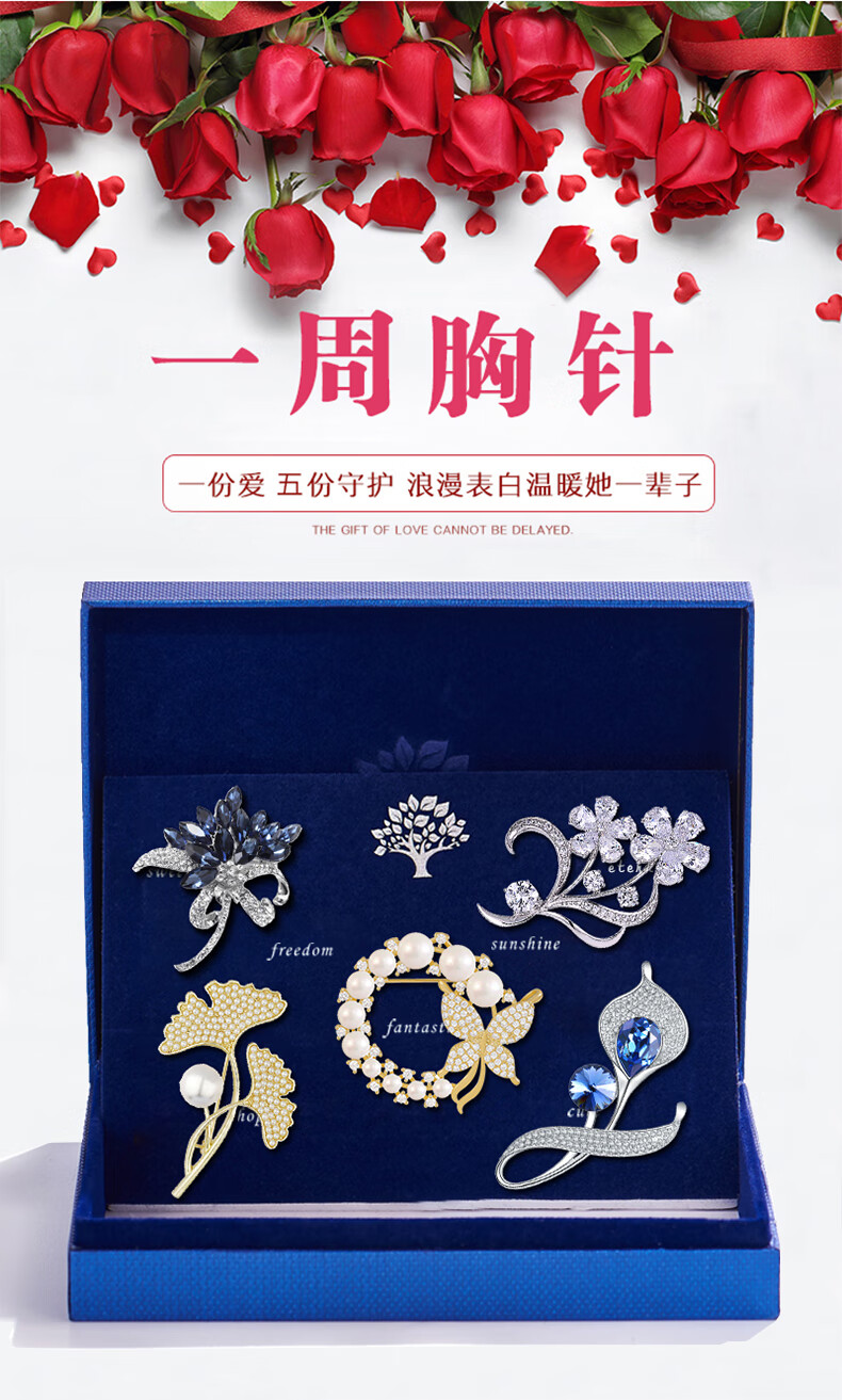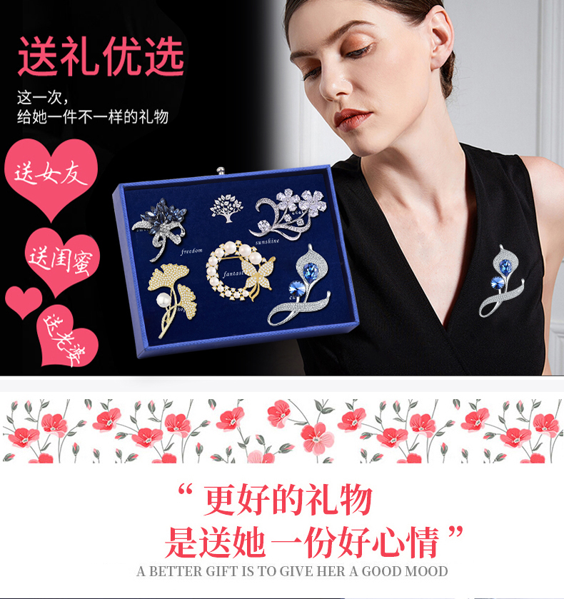 Ancient brooch, high-end women's exquisite niche corsage gift box, light luxury and elegant pin, silk scarf buckle, birthday gift for women, practical T505 temperament and noble brooch 5-piece set