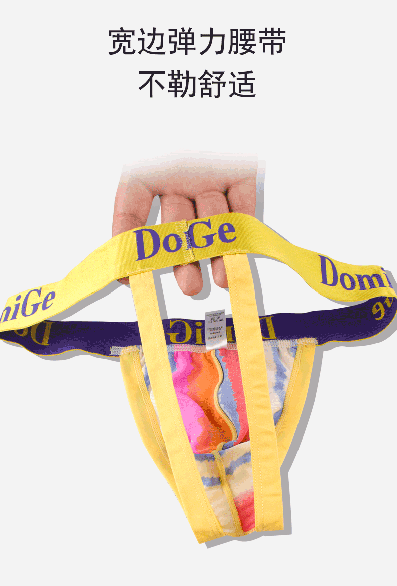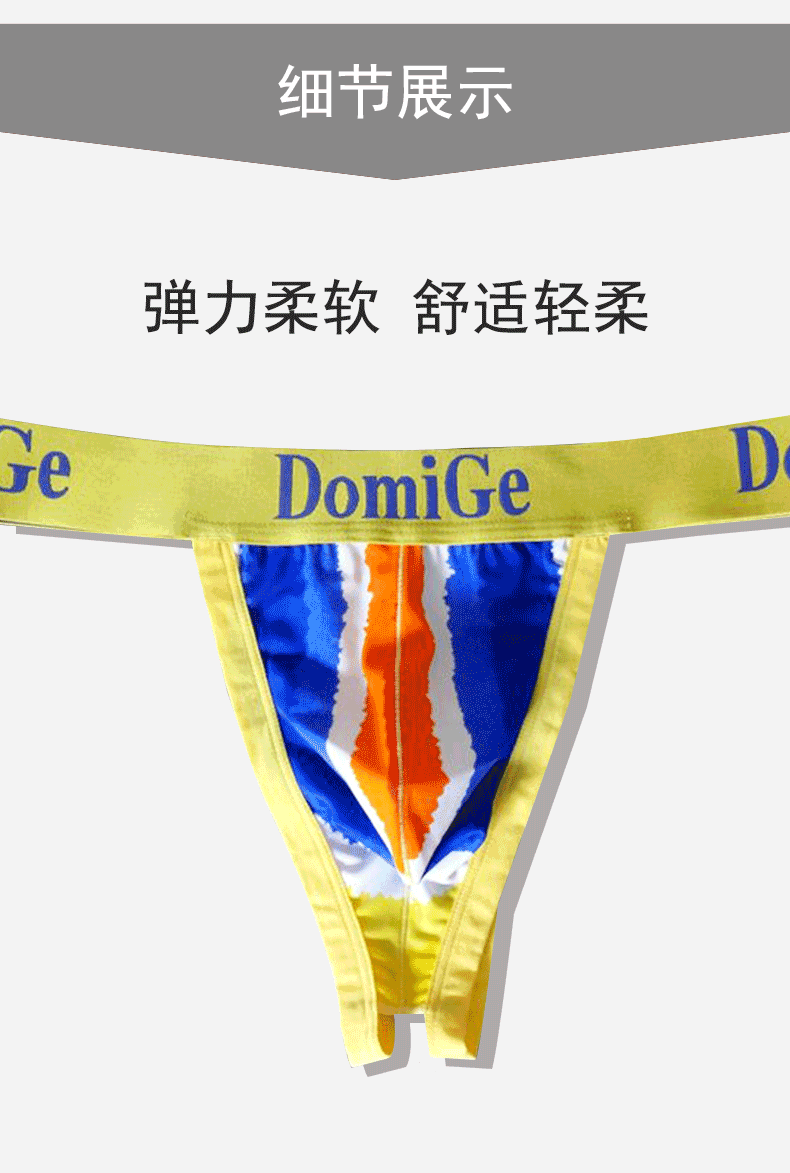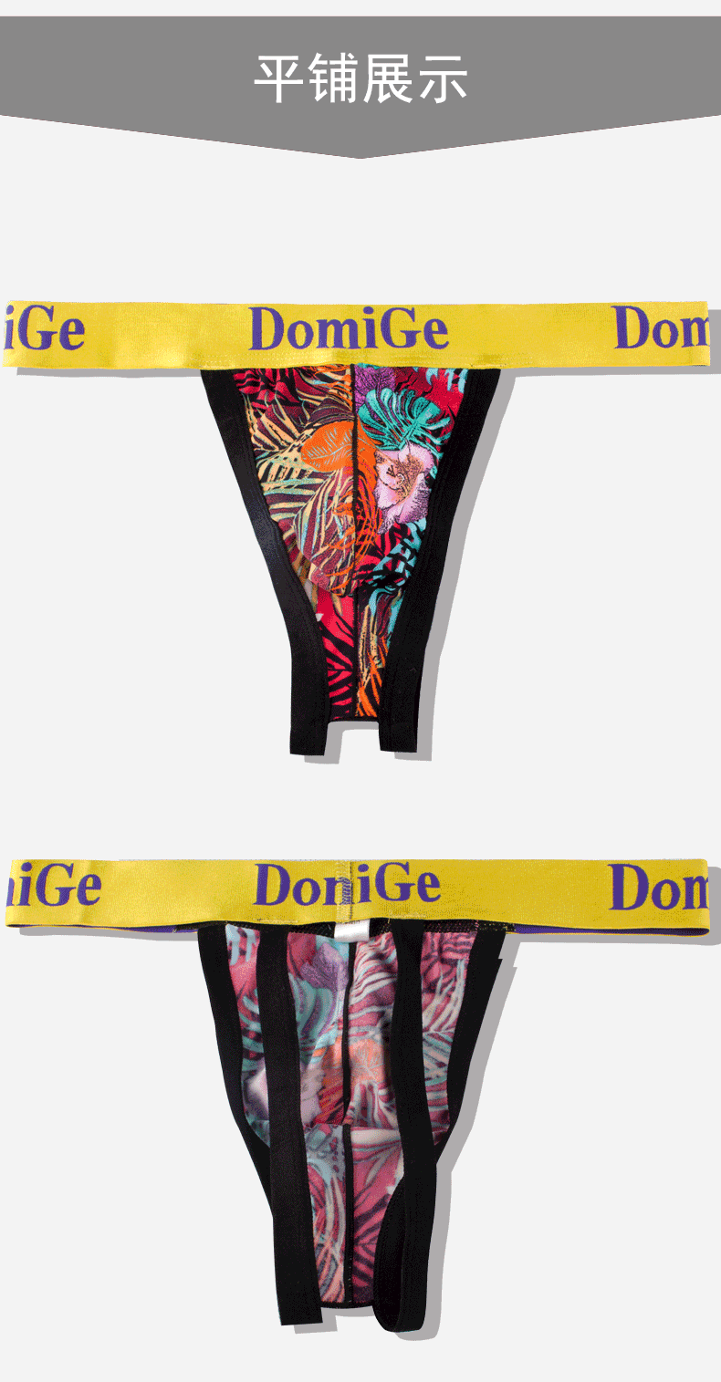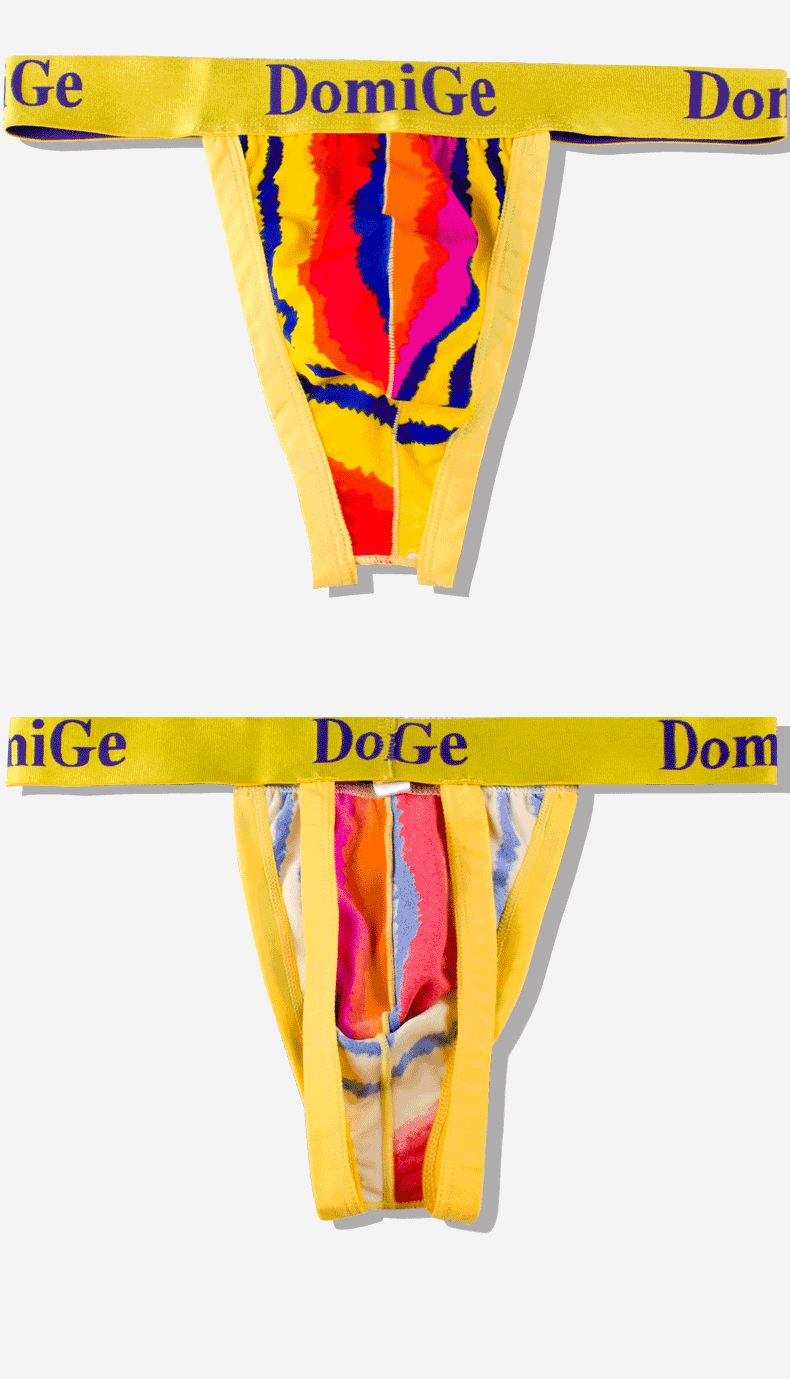 Dumi International men's sexy ultra-thin ice silk underwear printed double-strap T-shaped underwear elastic close-fitting single pack yellow bottom printing 5418 1 pair XXL2.6-2.8 feet