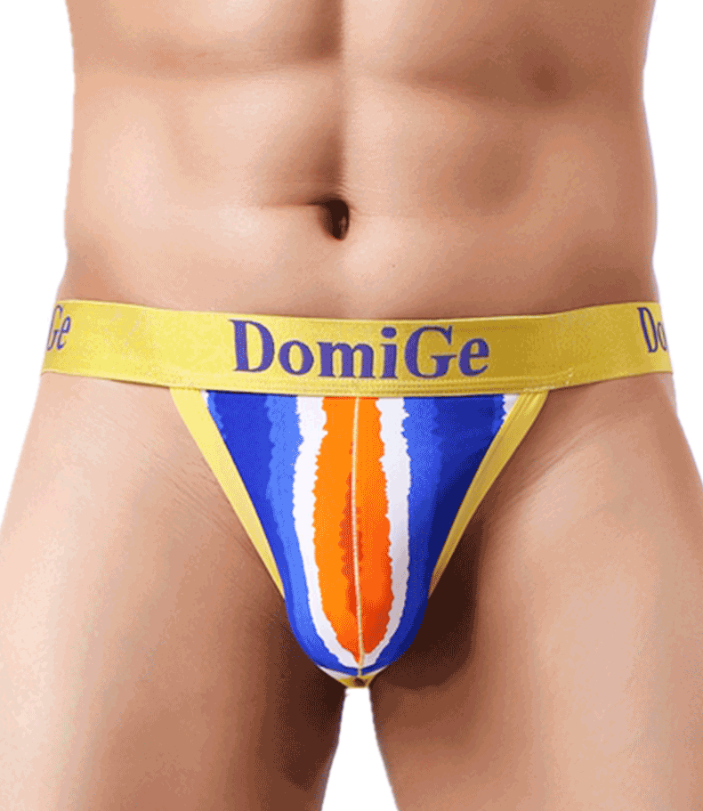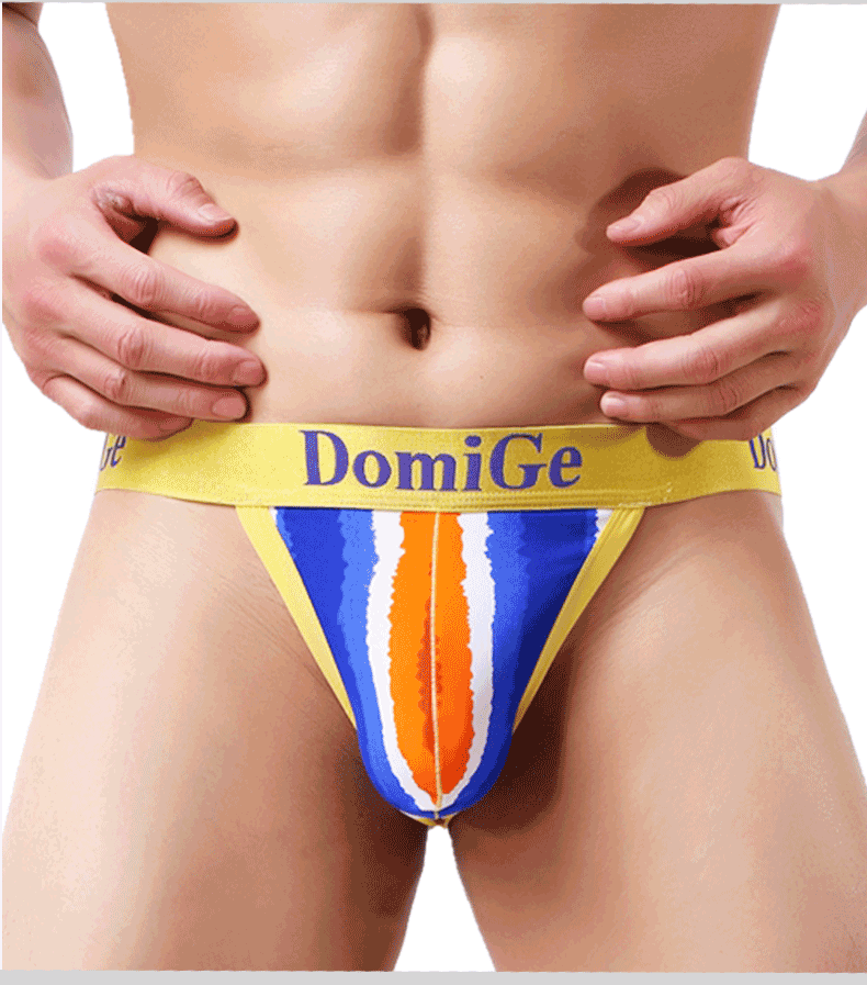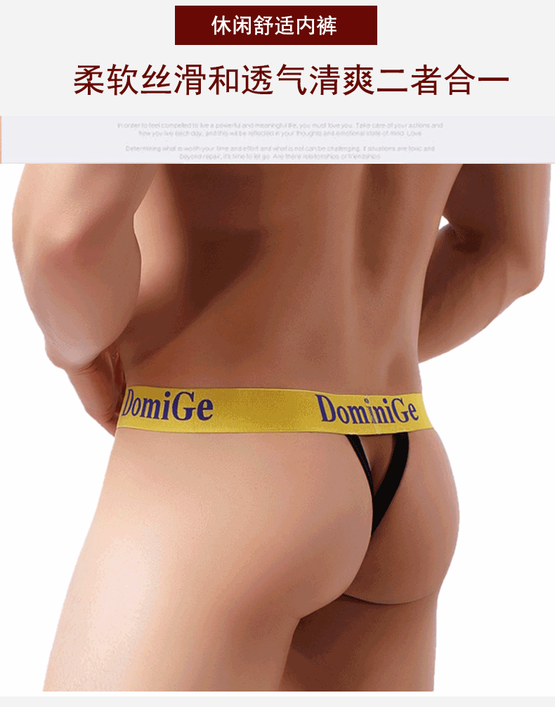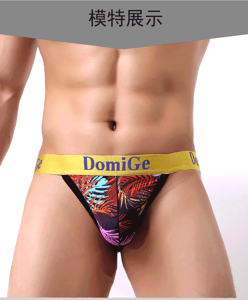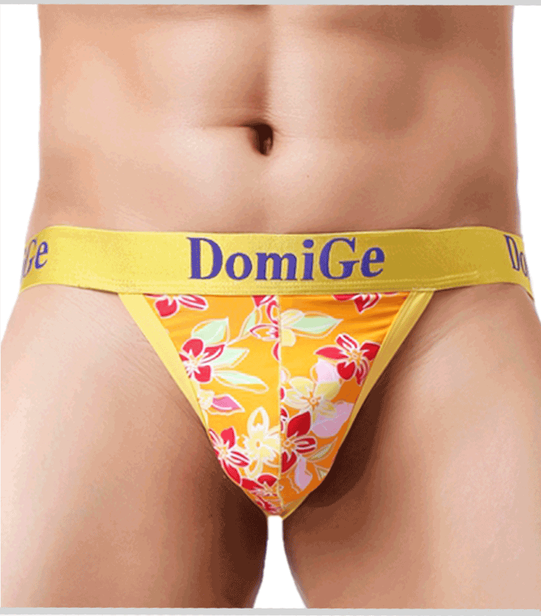 Dumi International men's sexy ultra-thin ice silk underwear printed double-strap T-shaped underwear elastic close-fitting single pack yellow bottom printing 5418 1 pair XXL2.6-2.8 feet