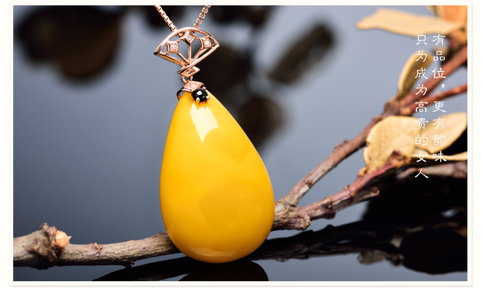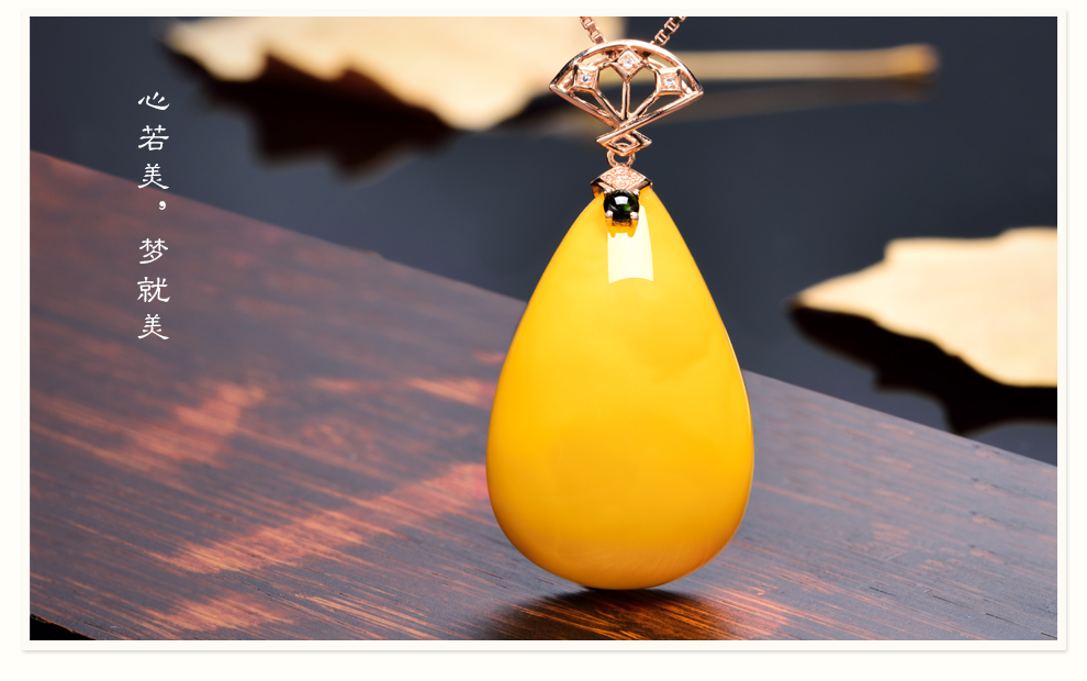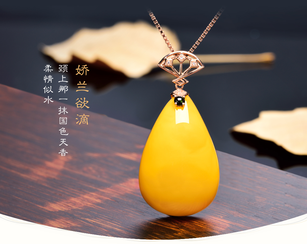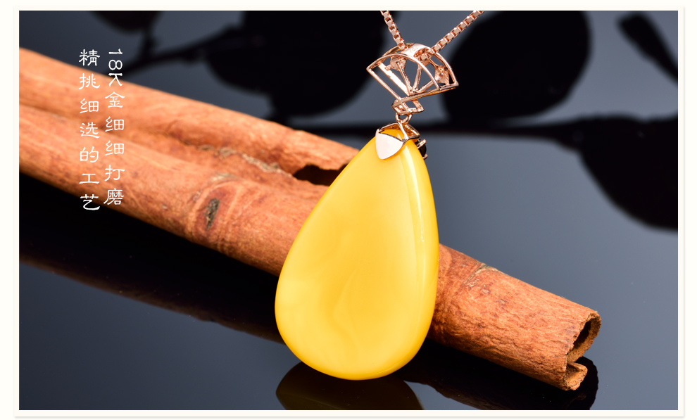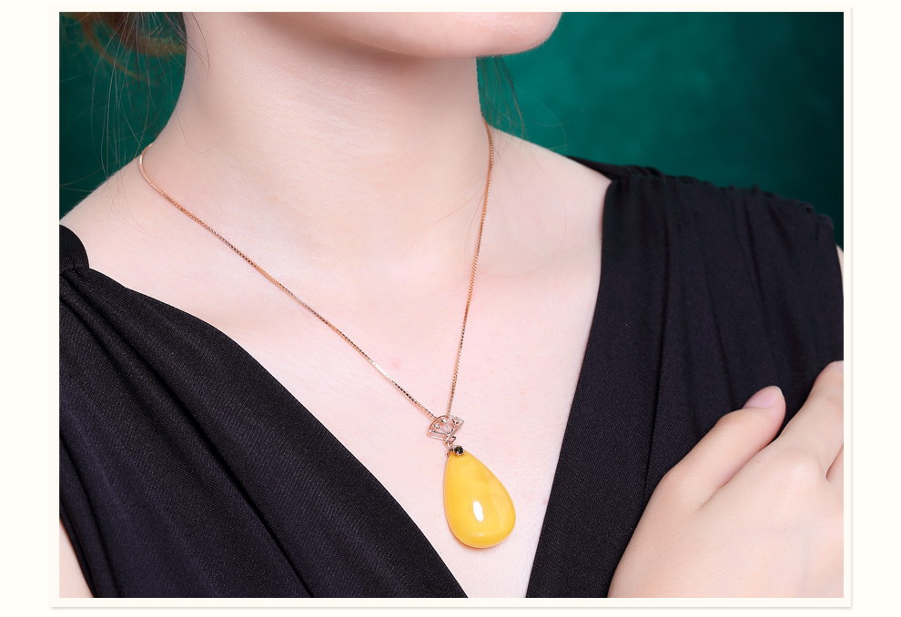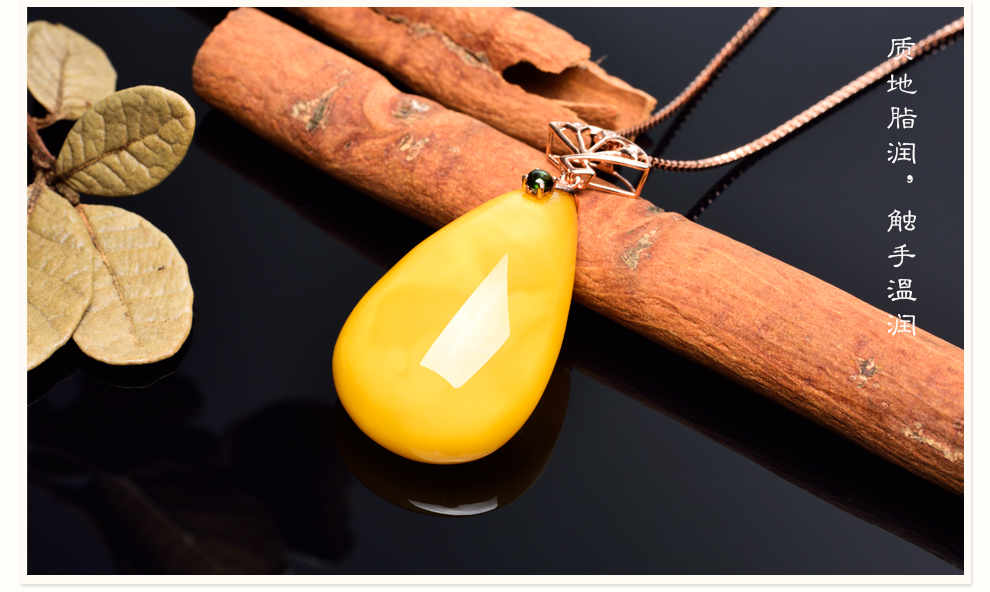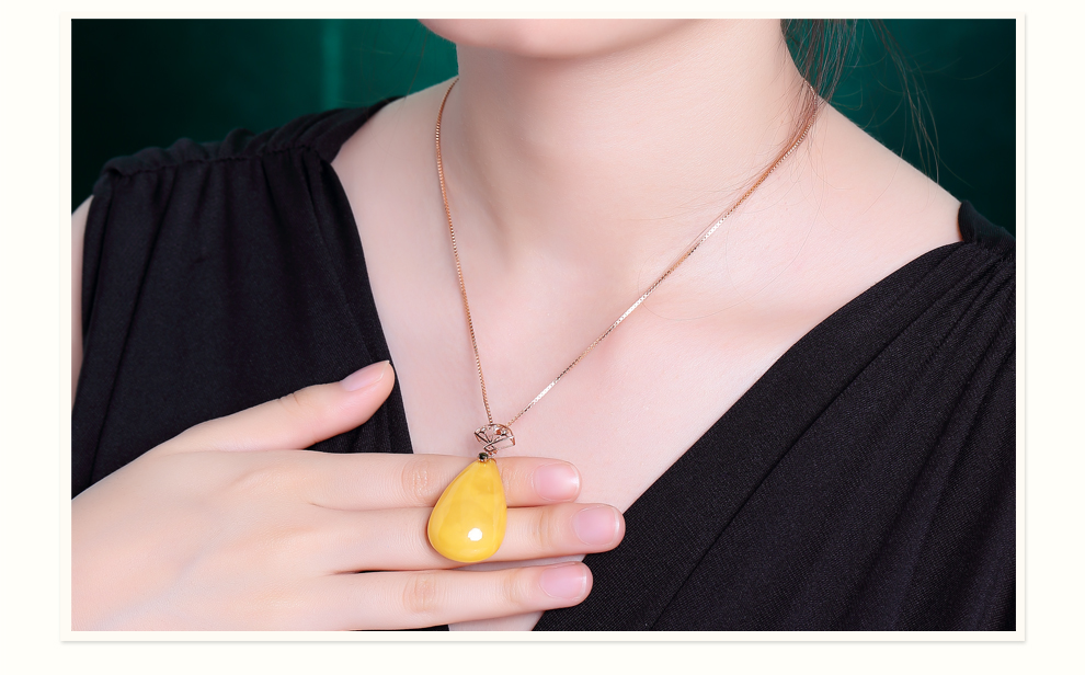 Ouchini natural unbaked beeswax pendant 18K gold inlaid with natural chicken fat yellow water drop amber necklace pendant for women (excluding chain) ready for delivery
