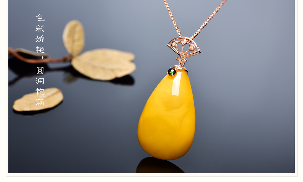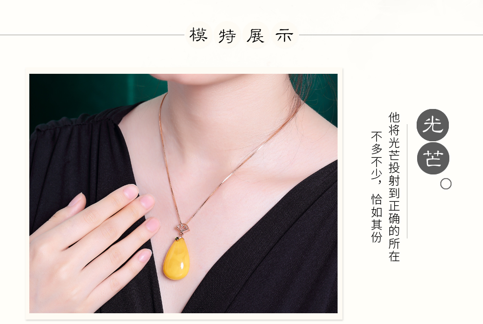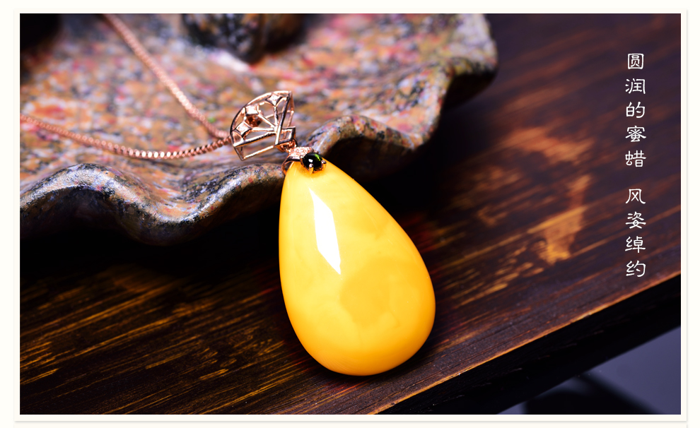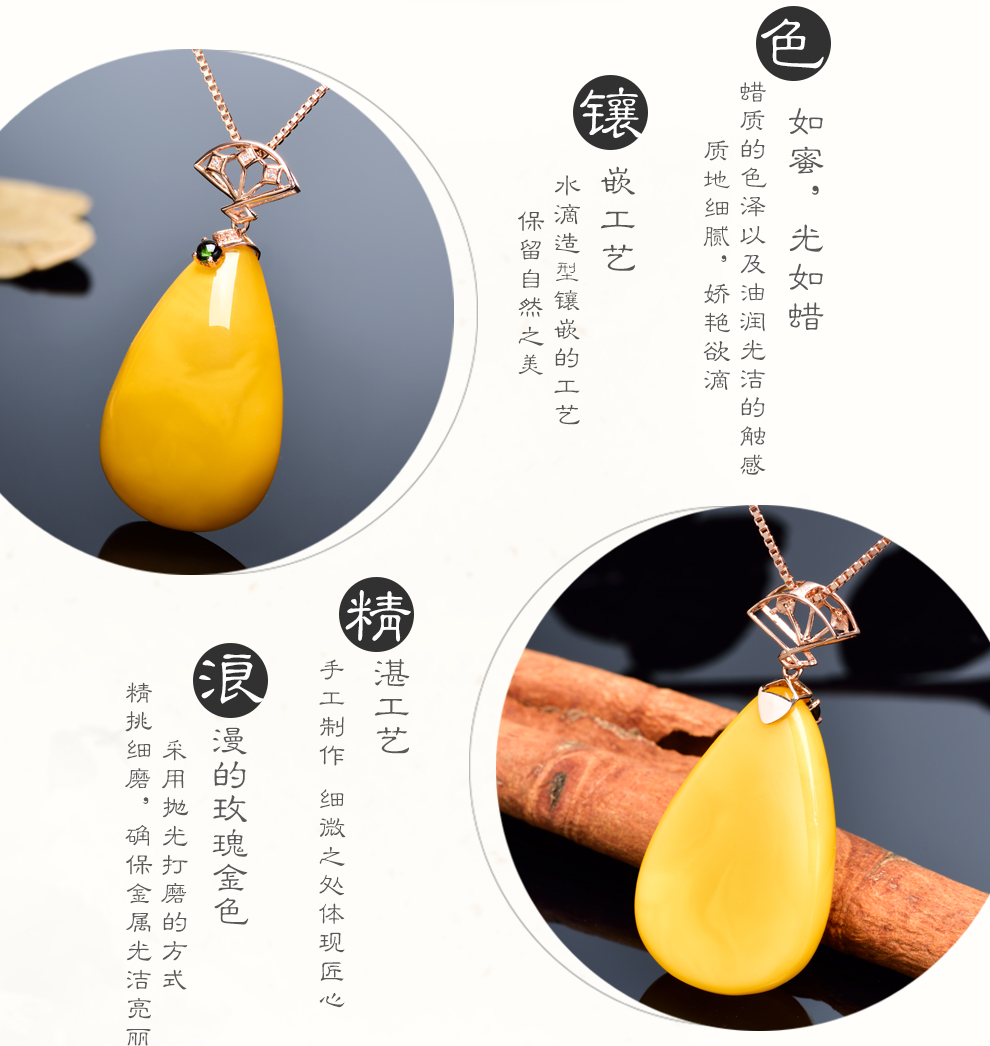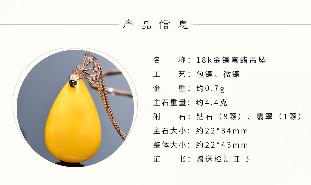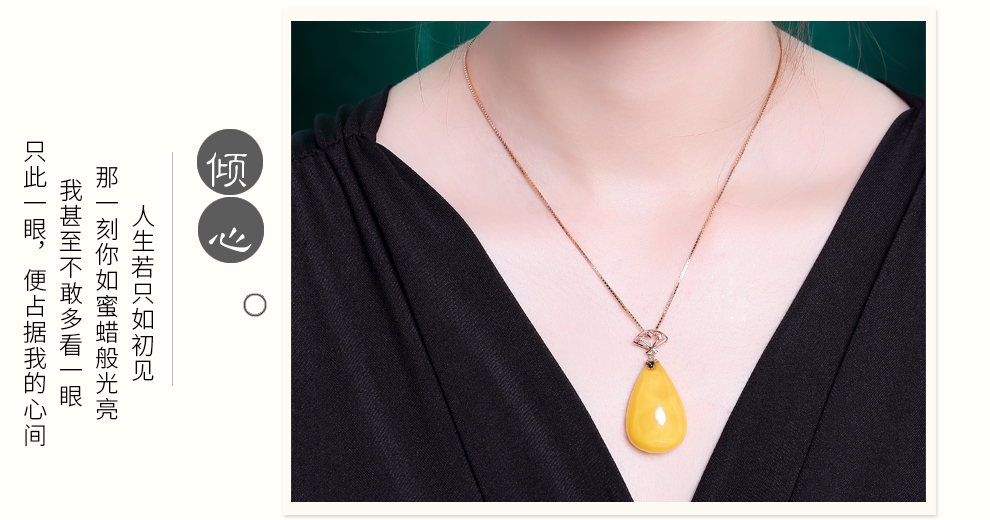 Ouchini natural unbaked beeswax pendant 18K gold inlaid with natural chicken fat yellow water drop amber necklace pendant for women (excluding chain) ready for delivery