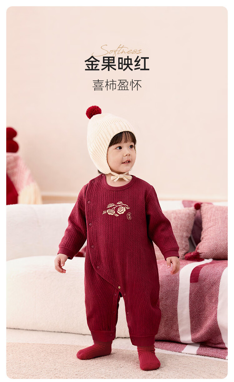 Babylove baby thin quilted jumpsuit autumn and winter warm sweater romper red New Year's clothing Jinshi Ruyi