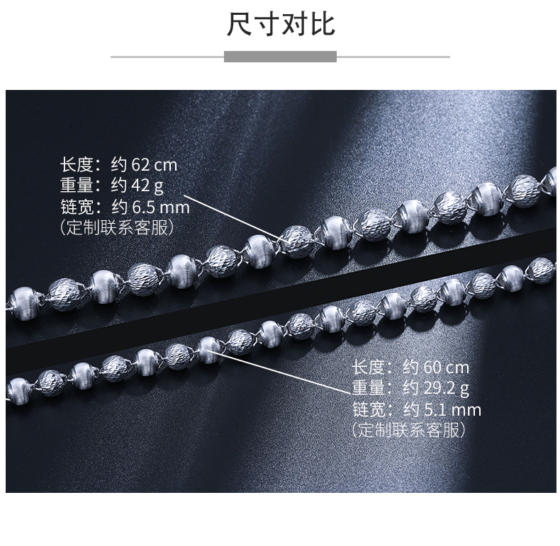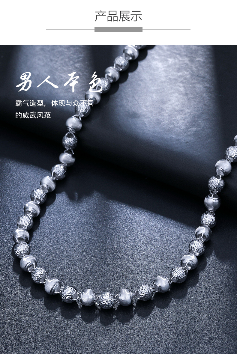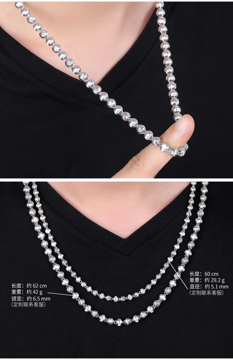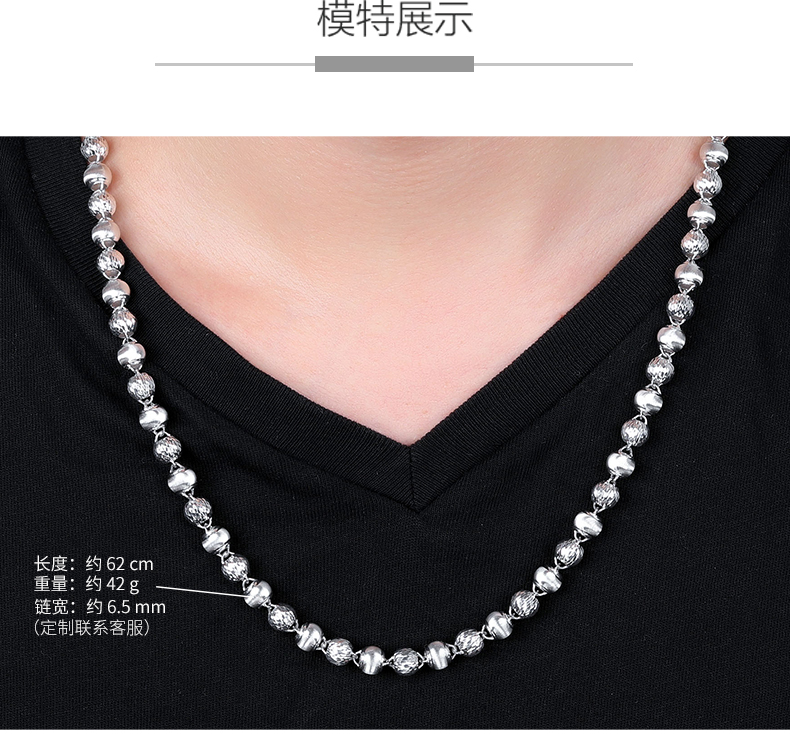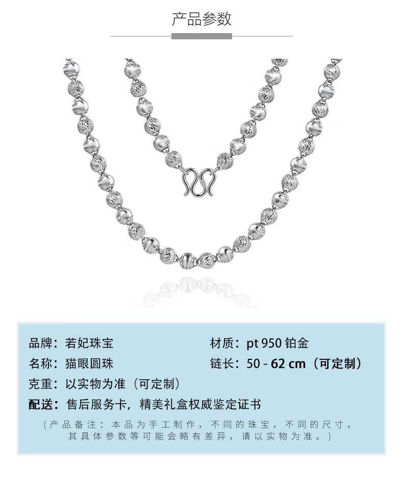 Ruofei men's platinum necklace pt950 fashionable cat eye trendy men's platinum necklace round bead platinum men's chain thick clavicle chain pt950 56-58 cm 38-40 g