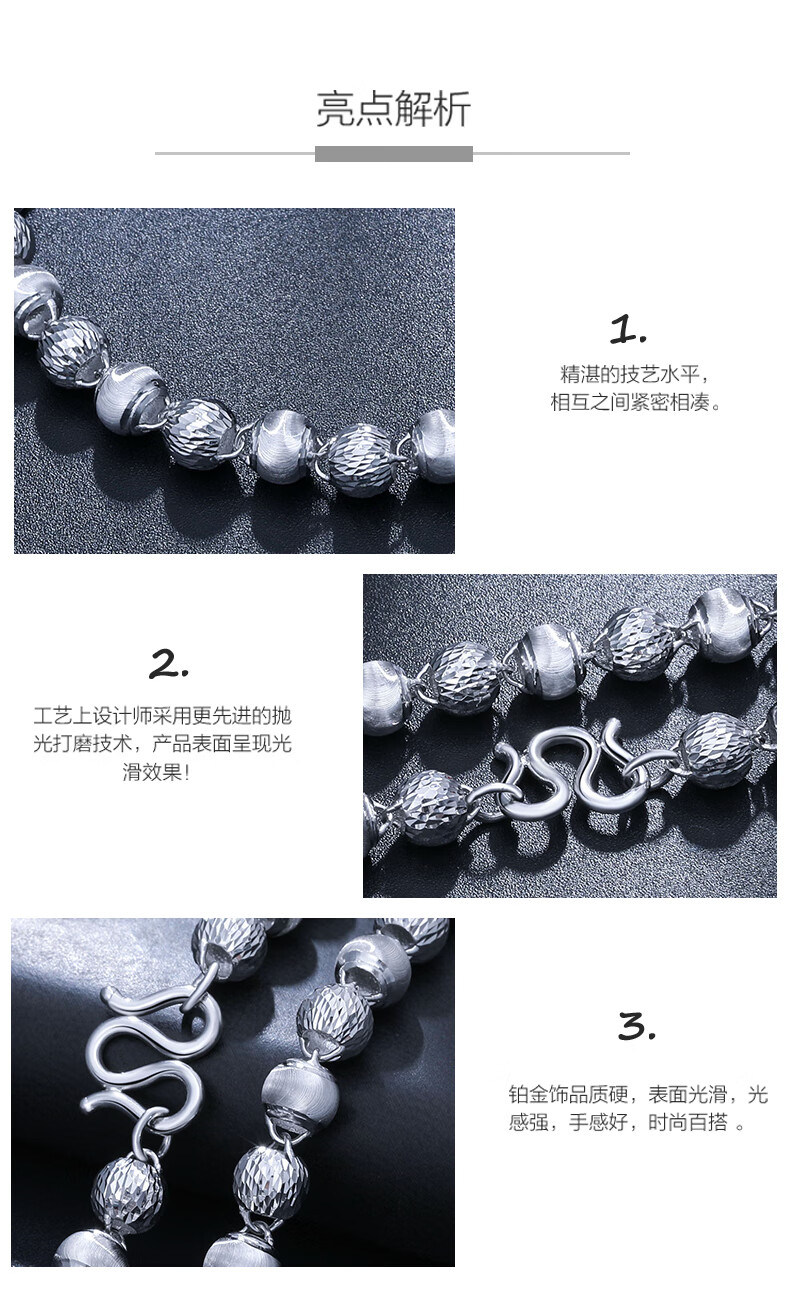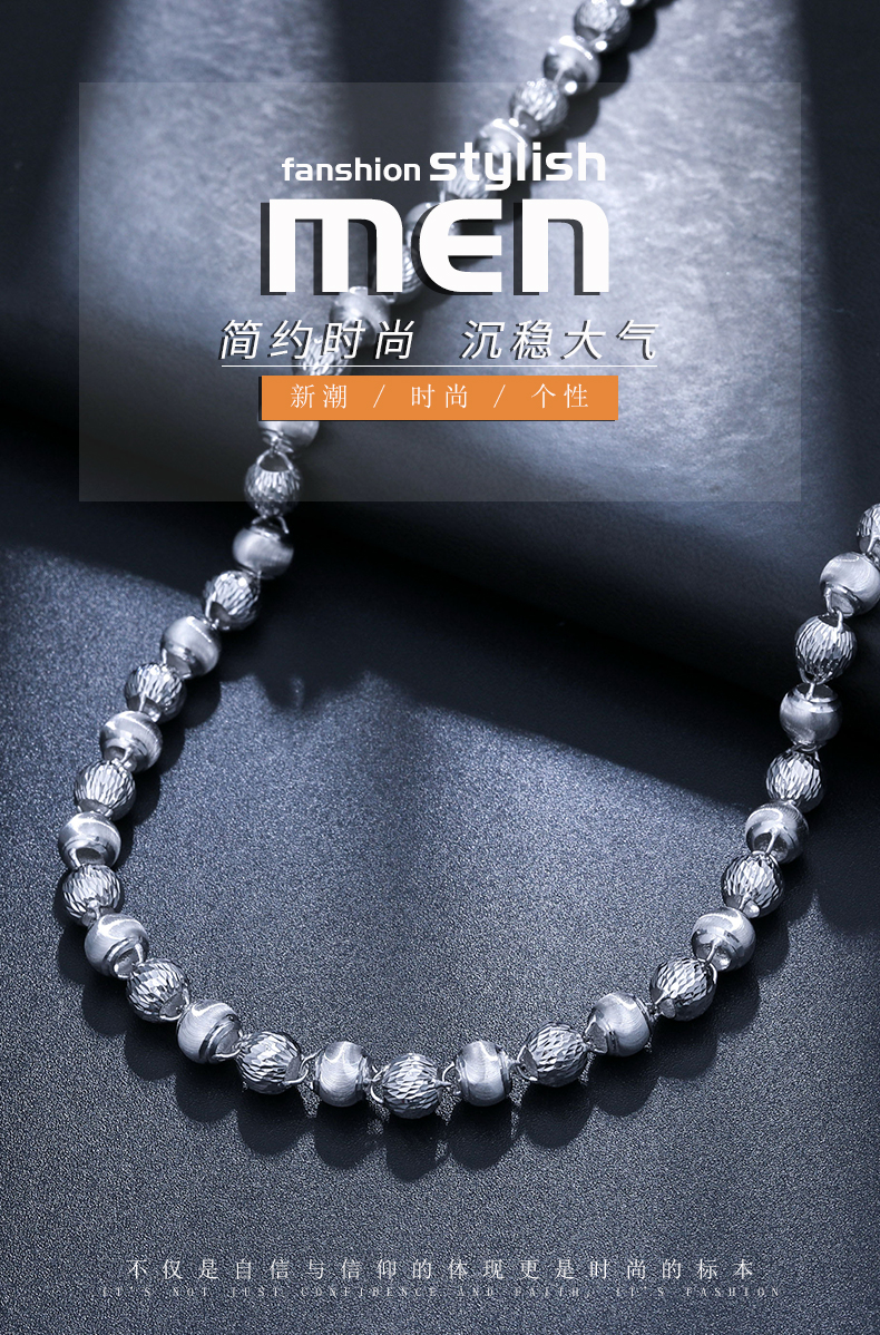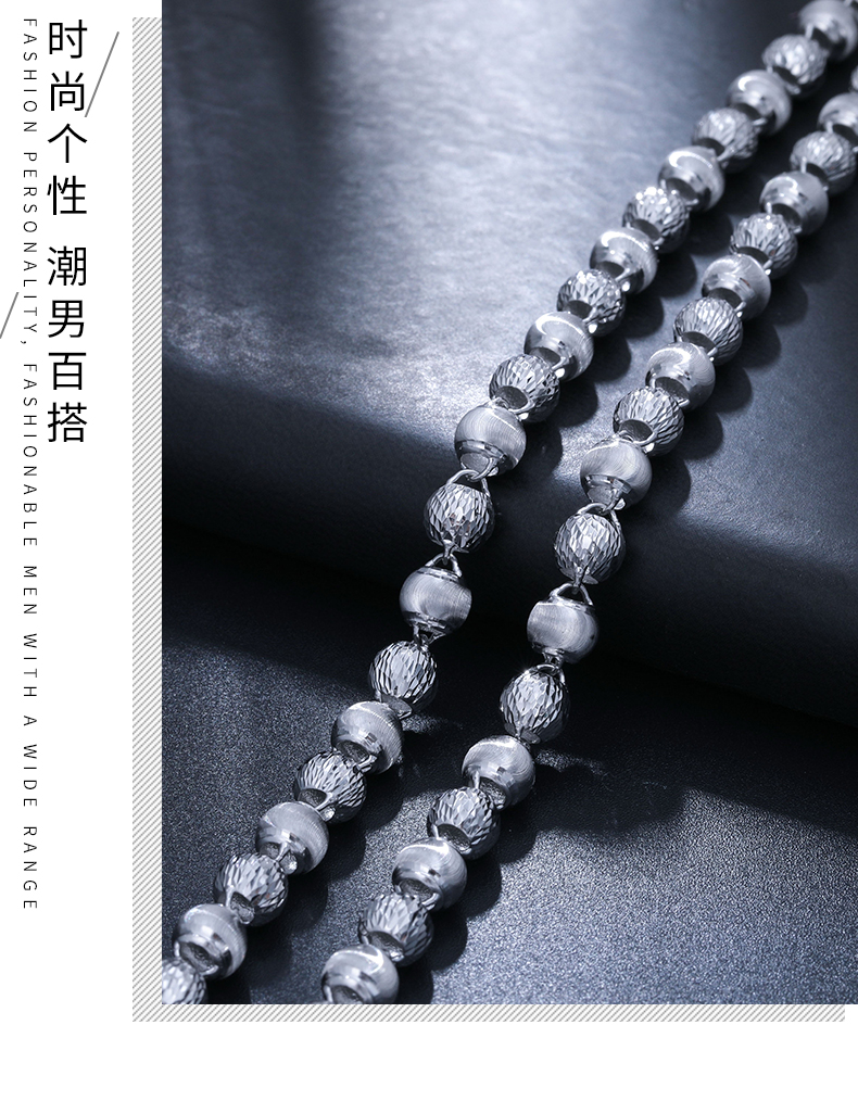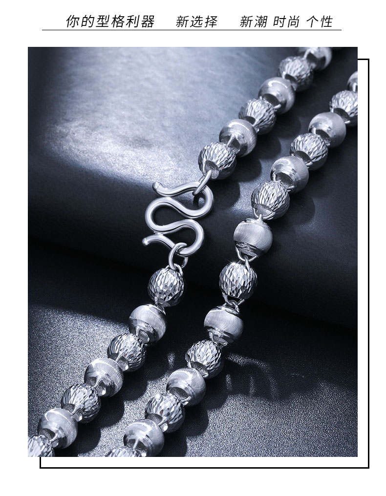 Ruofei men's platinum necklace pt950 fashionable cat eye trendy men's platinum necklace round bead platinum men's chain thick clavicle chain pt950 56-58 cm 38-40 g