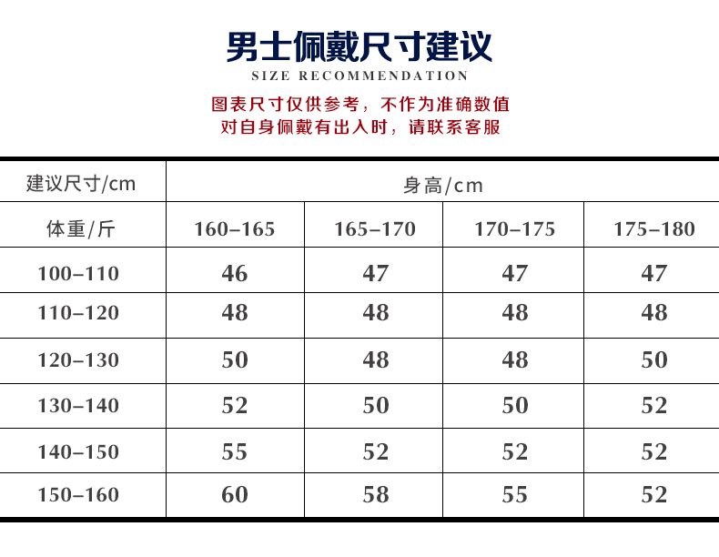 China (cm) 165 / 88-90 170 / 96-98 175 / 108-110 180 / 118-122 185 / 126-130