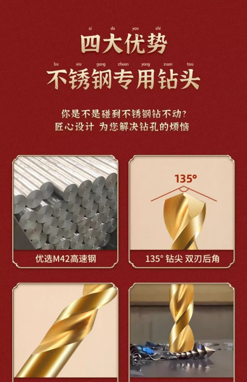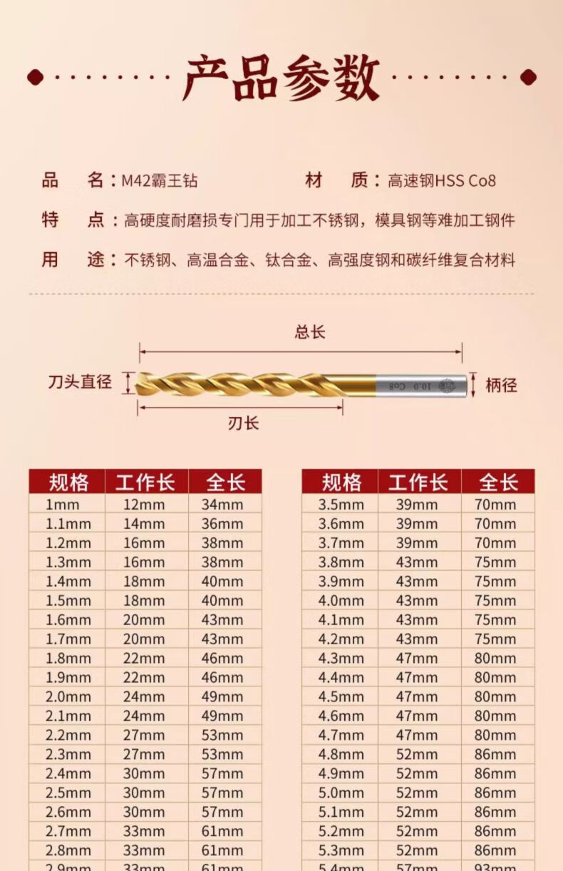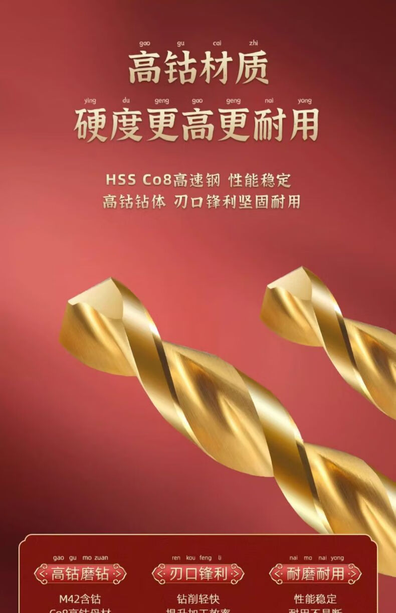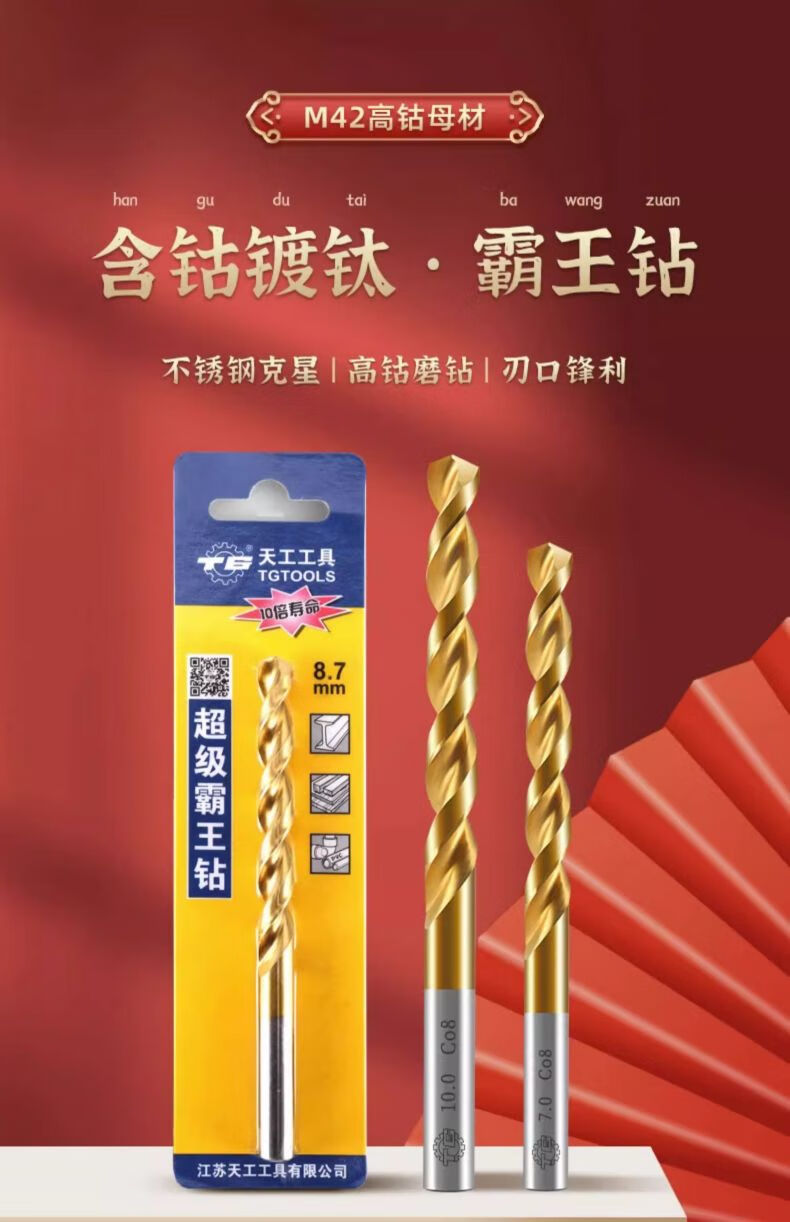 Broca helicoidal que contiene cobalto Tiangong (TIANGONG) M42, broca Overlord que contiene 8% de cobalto, broca de acero inoxidable de 5 mm, paquete de 2