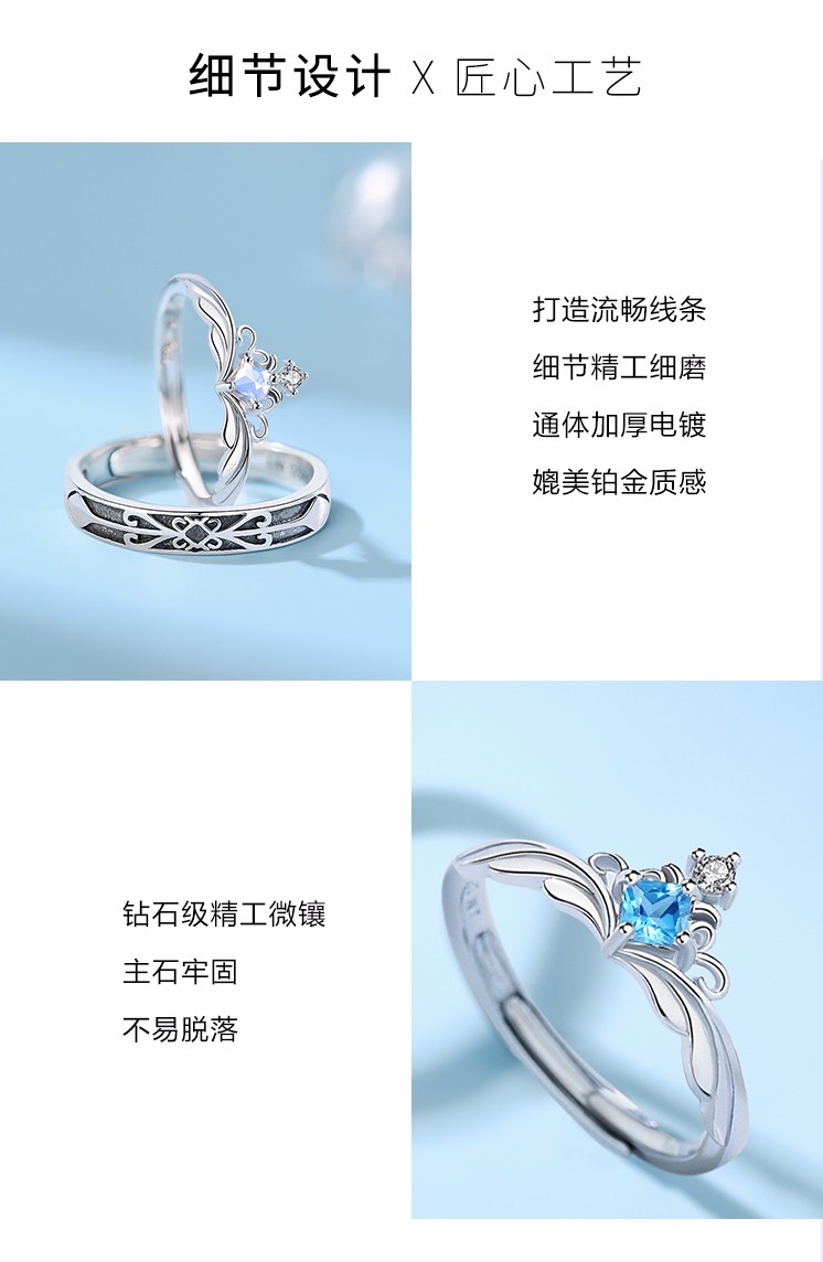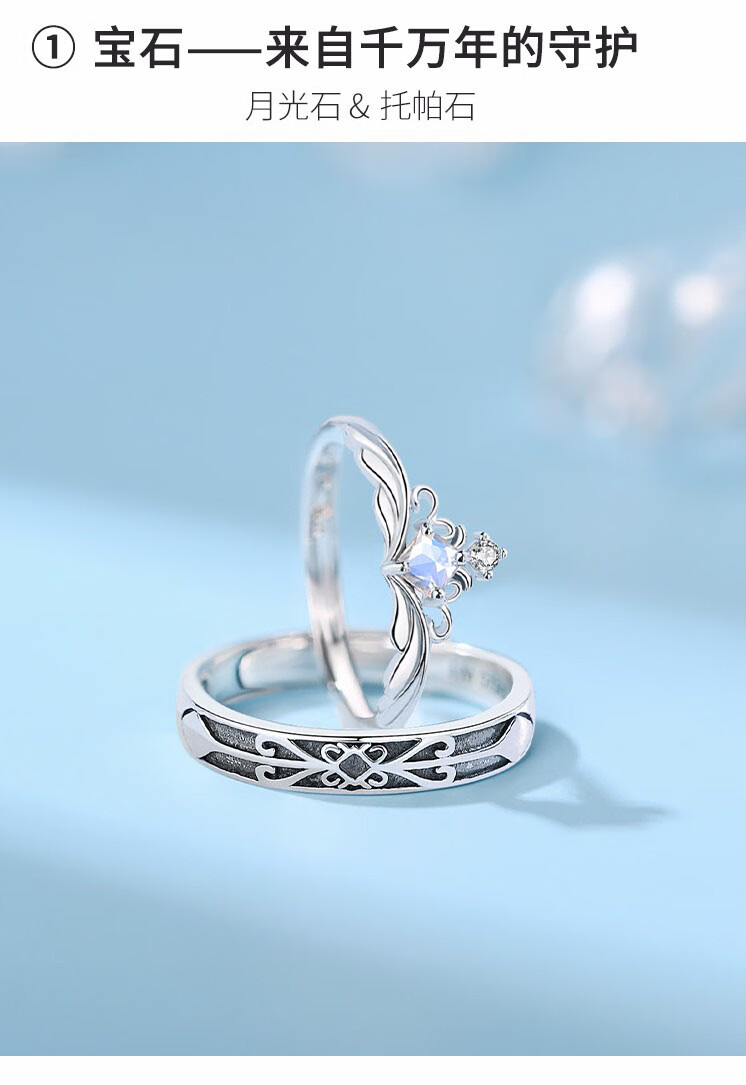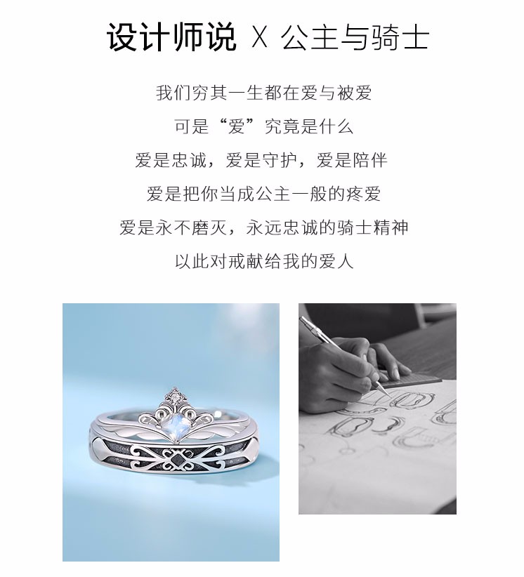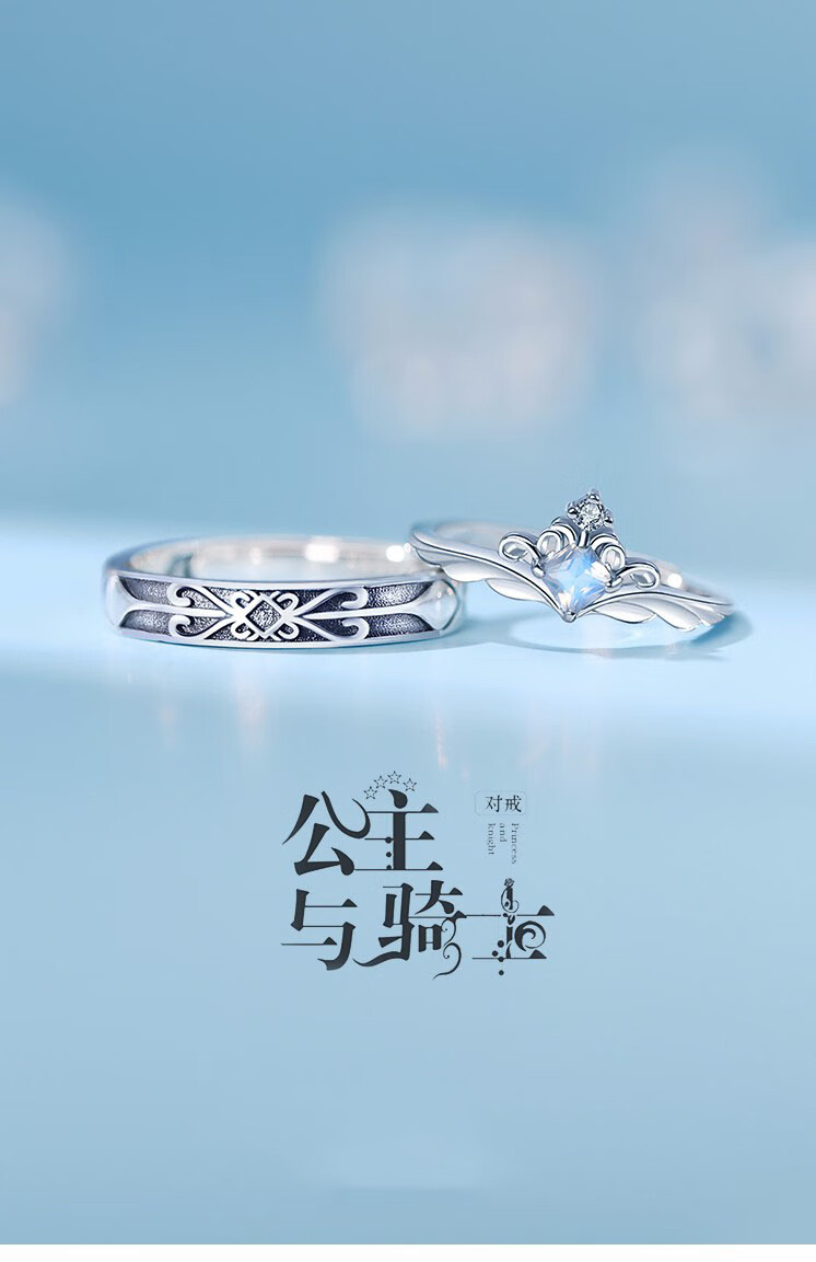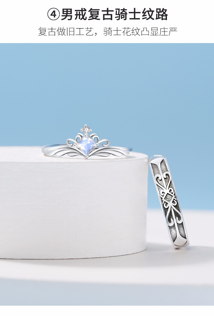 MZMZ Princess and the Knight Couple Ring A pair of men's and women's rings Moonstone fashion jewelry birthday gift for girlfriend The Princess and the Knight Moonstone