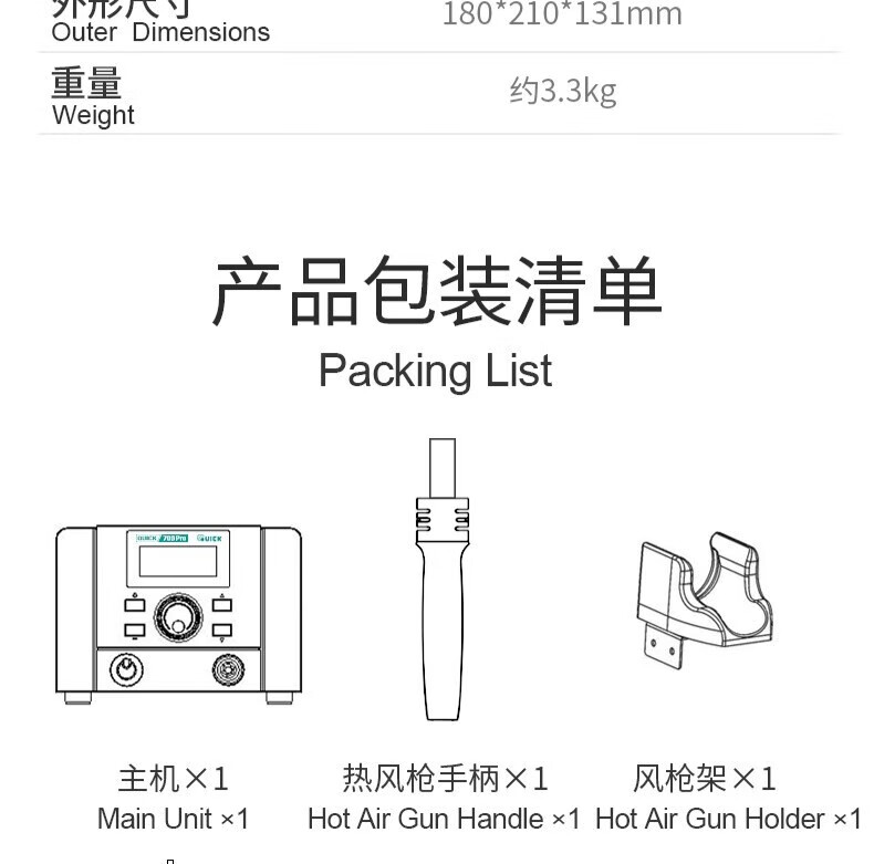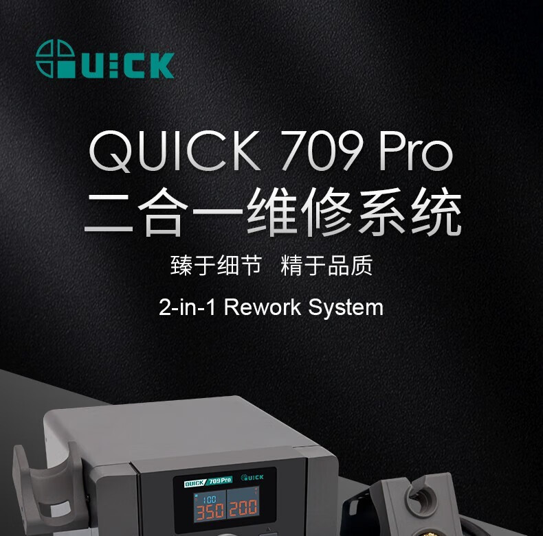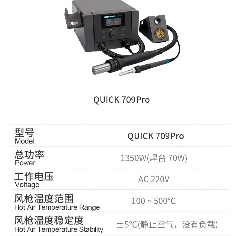 QUICK QUICK709 Pro duplex digital display temperature control hot air desoldering Taiwanese soldering iron two-in-one 1350W