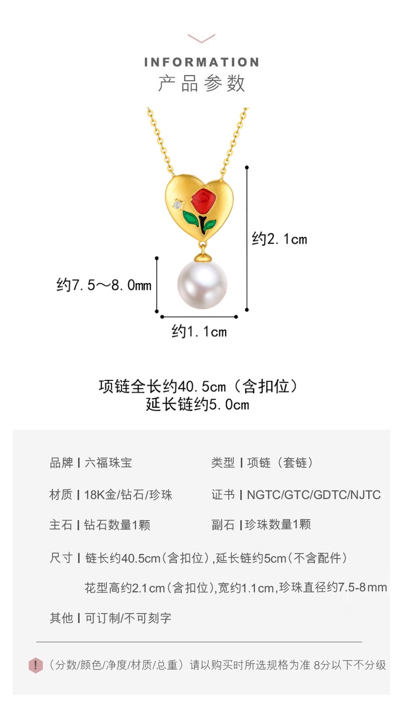 Lukfook Jewelry 18K gold rose diamond freshwater pearl necklace set chain gift G04DSKN0008Y total weight 2.42 grams