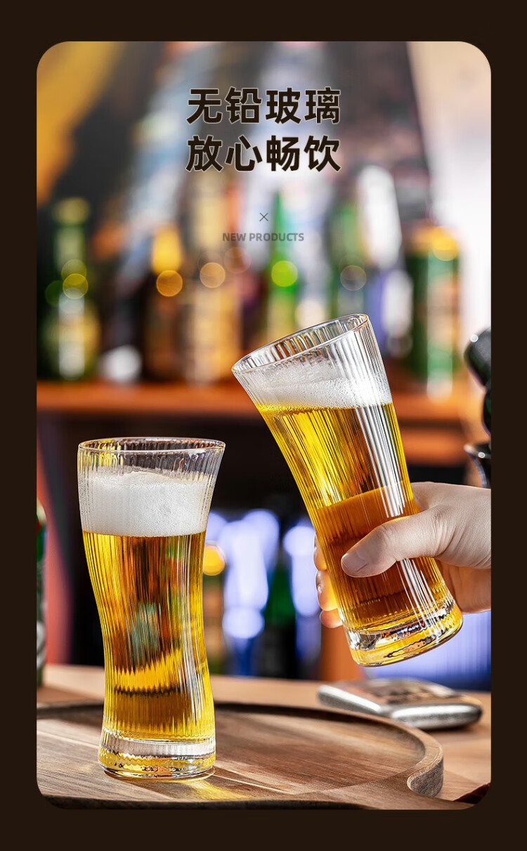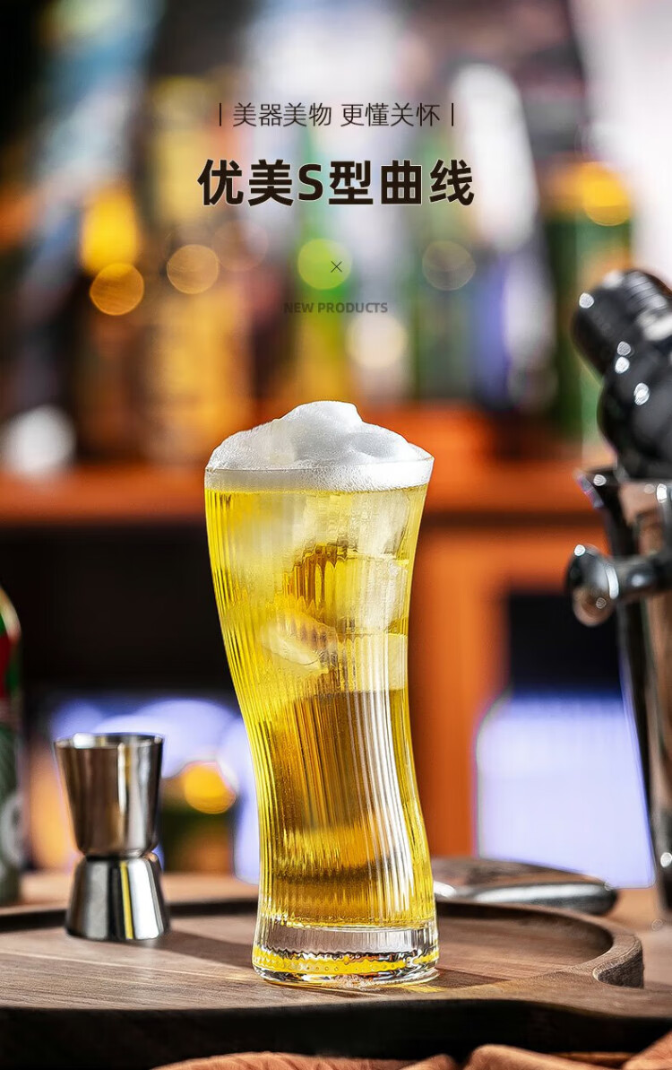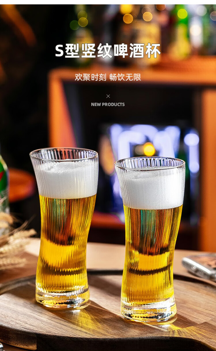 Genas S-shaped creative beer mug, home craft beer mug, commercial bar drinking glass, restaurant juice mug, two