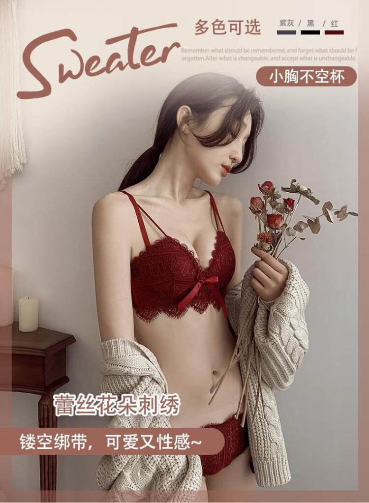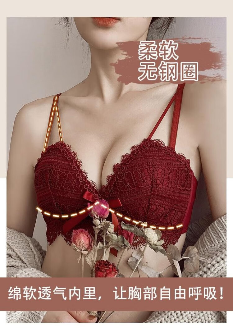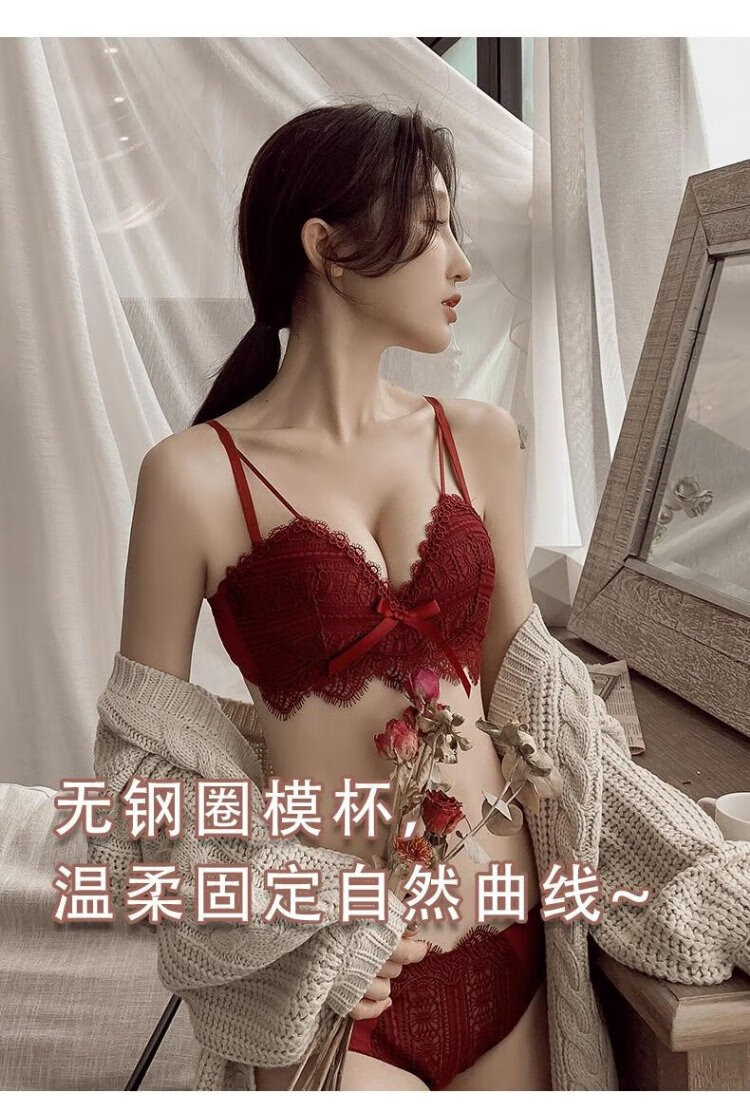 La Chapelle's zodiac year of the horse red sexy lace push-up bra set thin wire-free breast-retracting underwear for women
