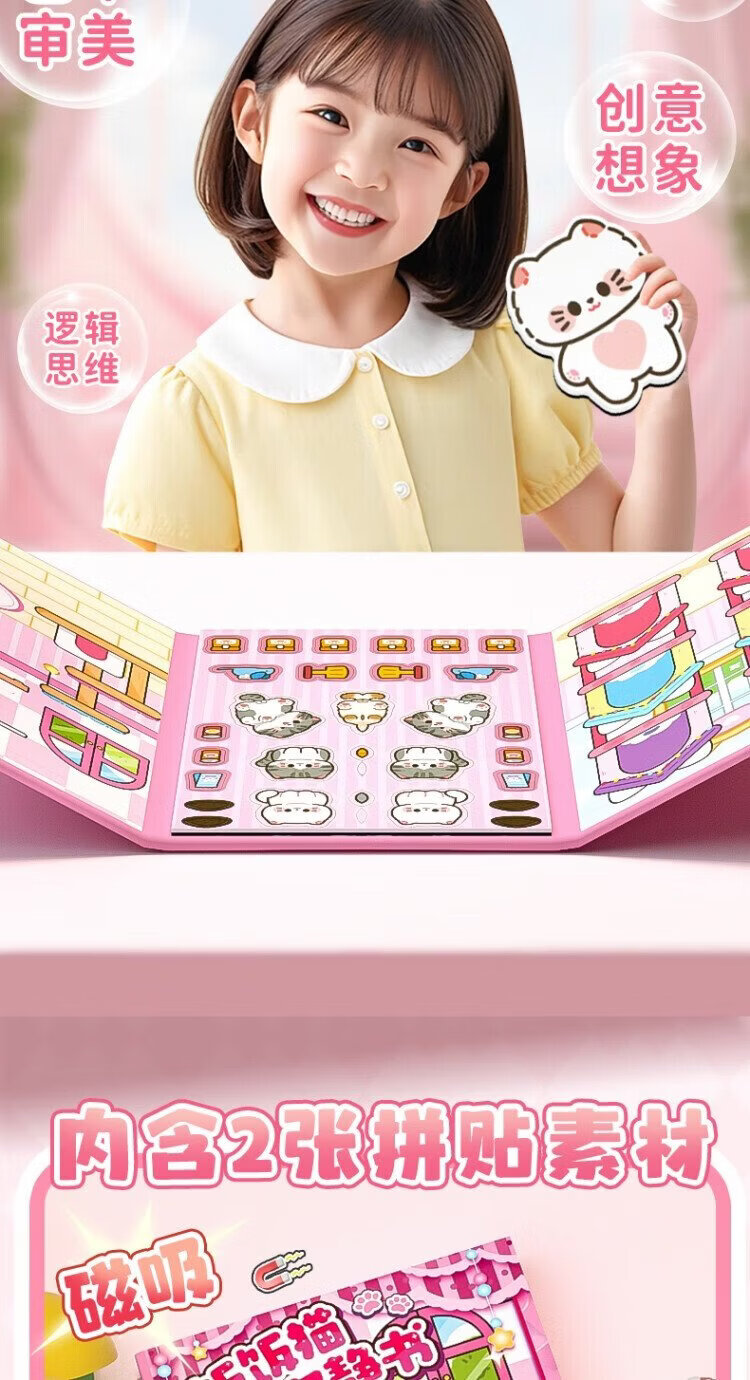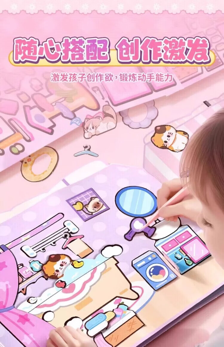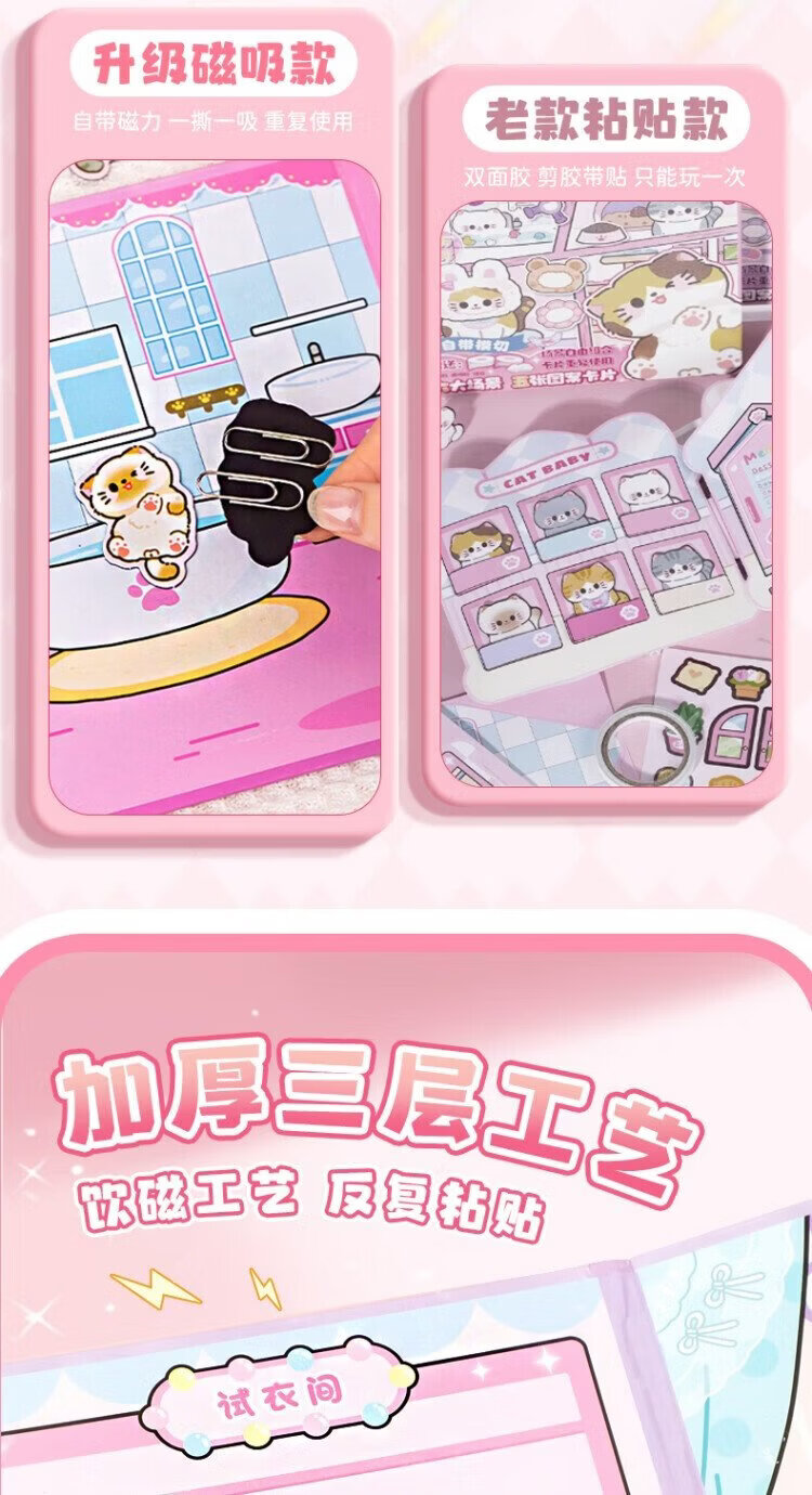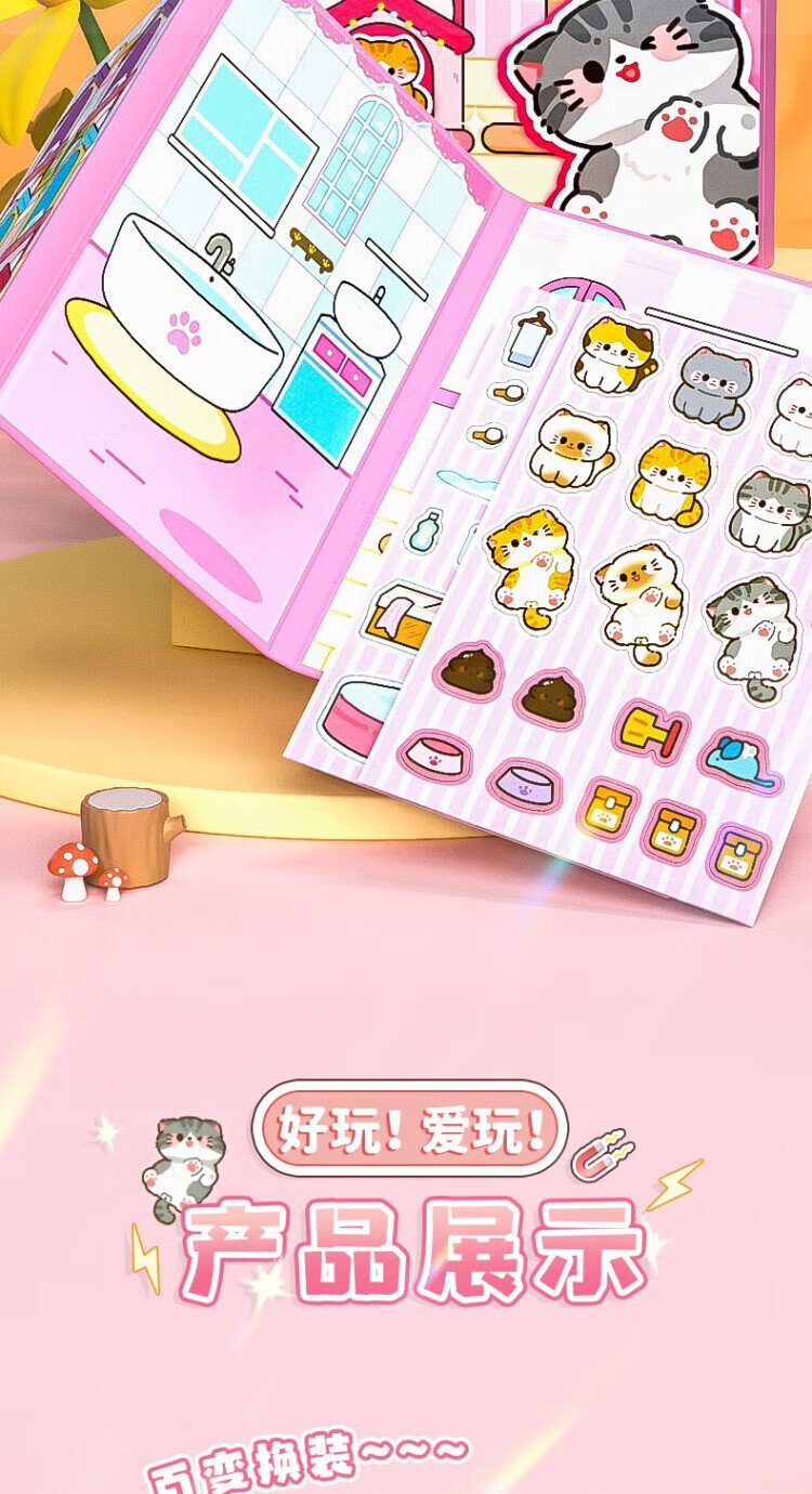 Shangmei Beibei Rice Rice Cat Quiet Book Cartoon Dress Up Sticker Children's Toy Girl Handmade DIY Set 3-6 Years Old New Year's Gift