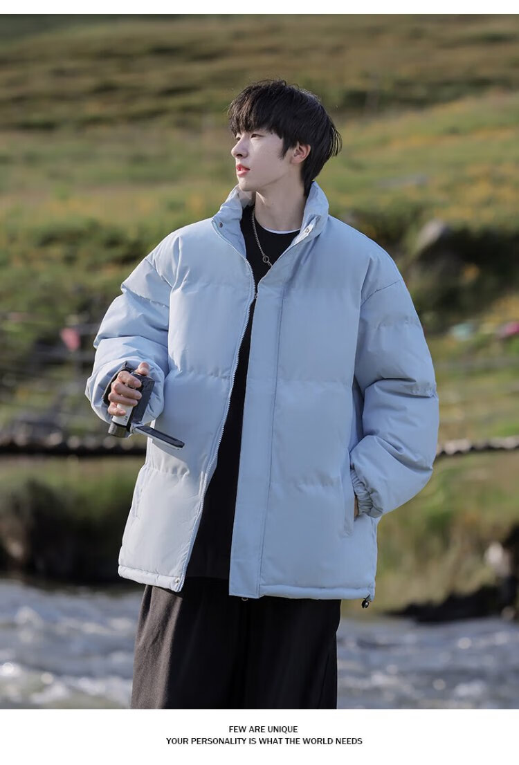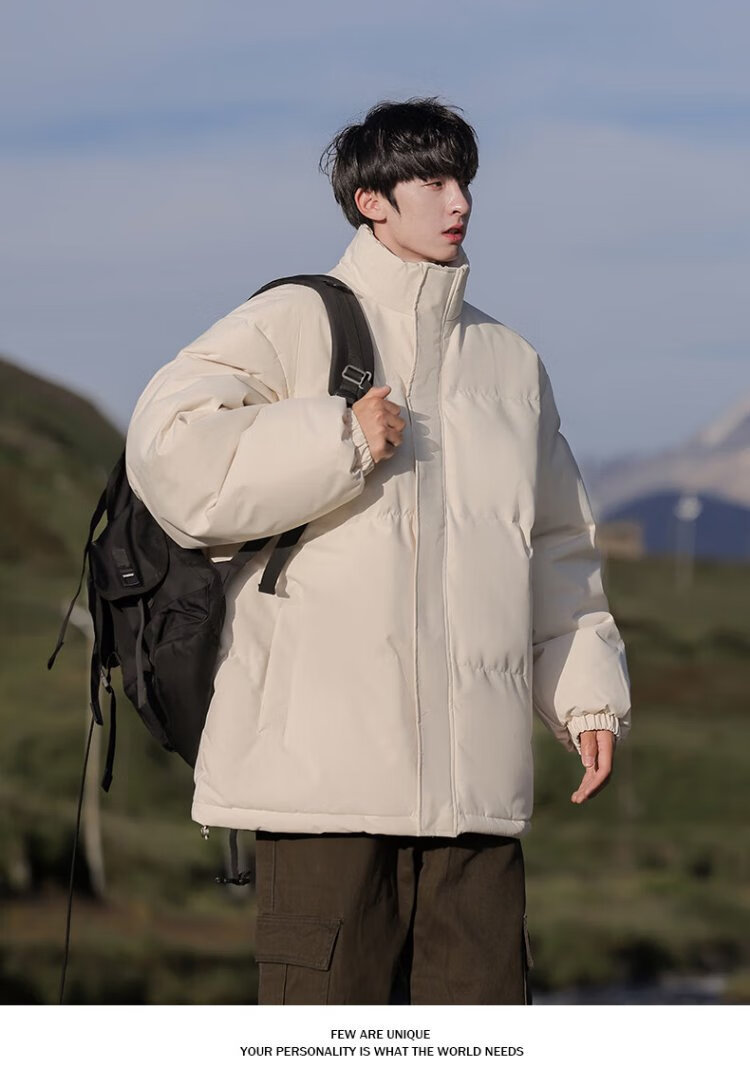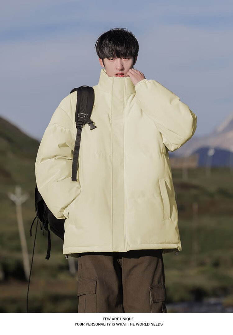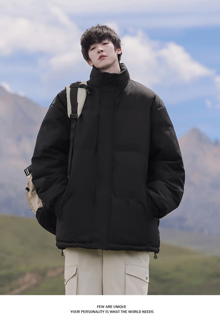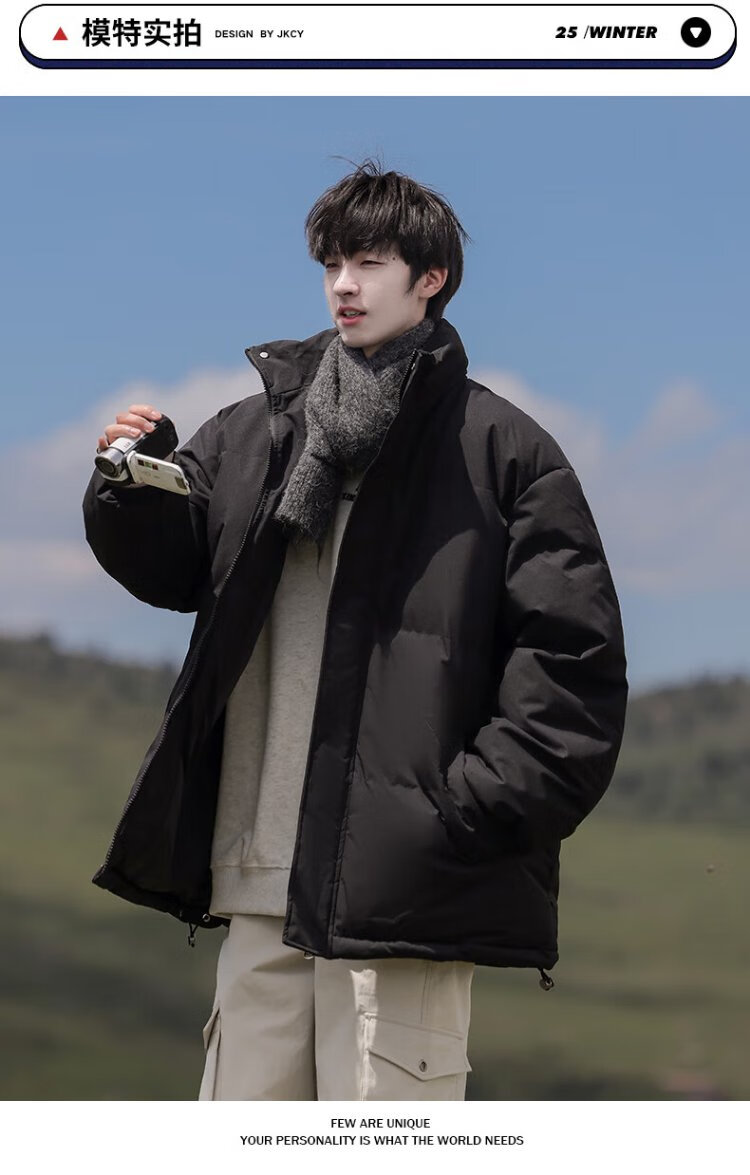VUUG men's cotton coat American style stand collar solid color cold weather clothing versatile new trendy brand cotton coat black S