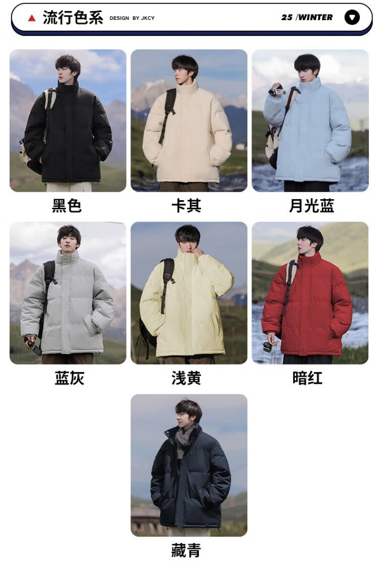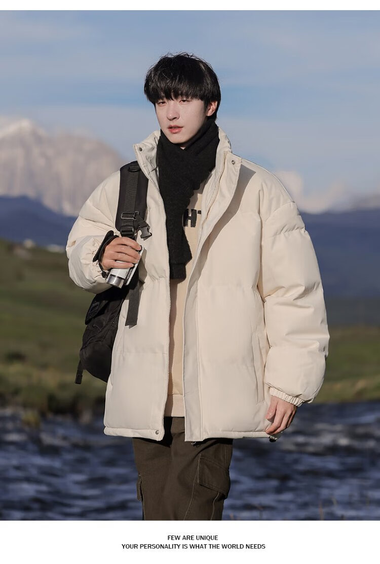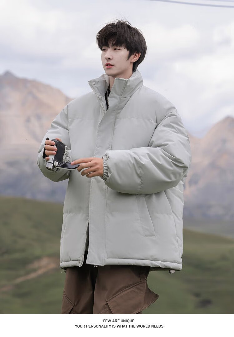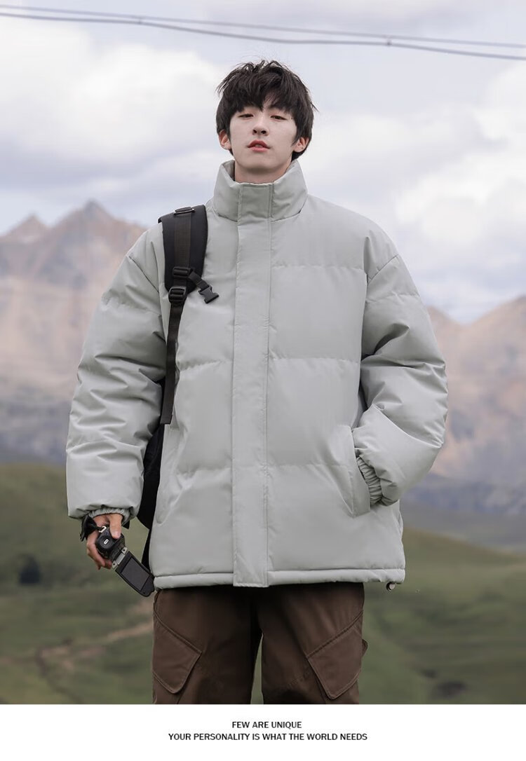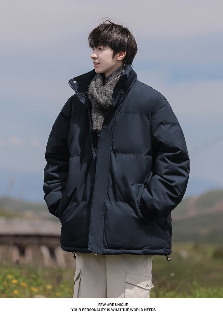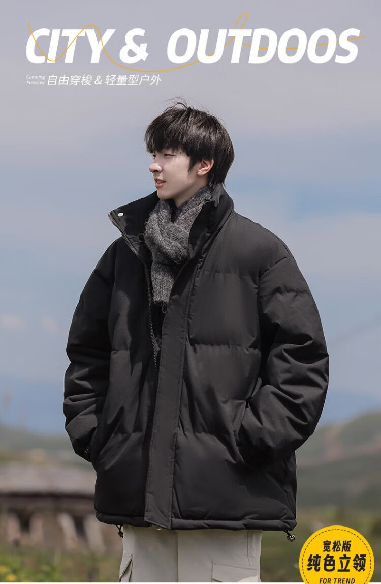 VUUG men's cotton coat American style stand collar solid color cold weather clothing versatile new trendy brand cotton coat black S