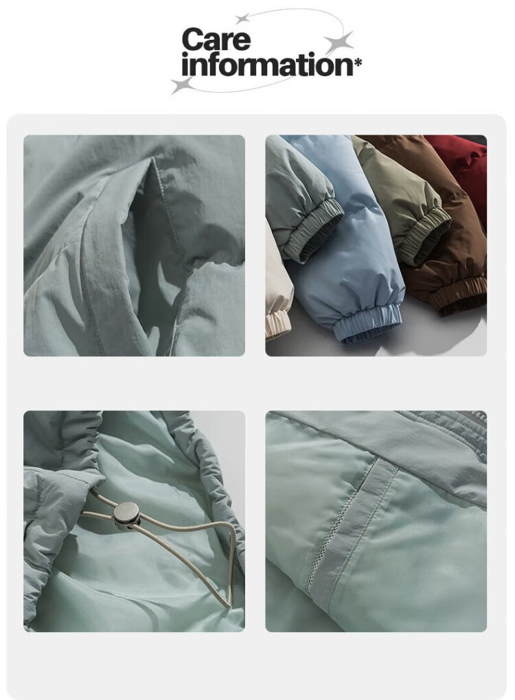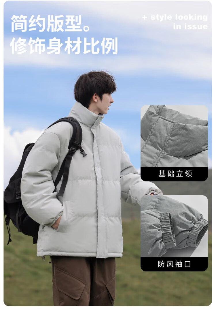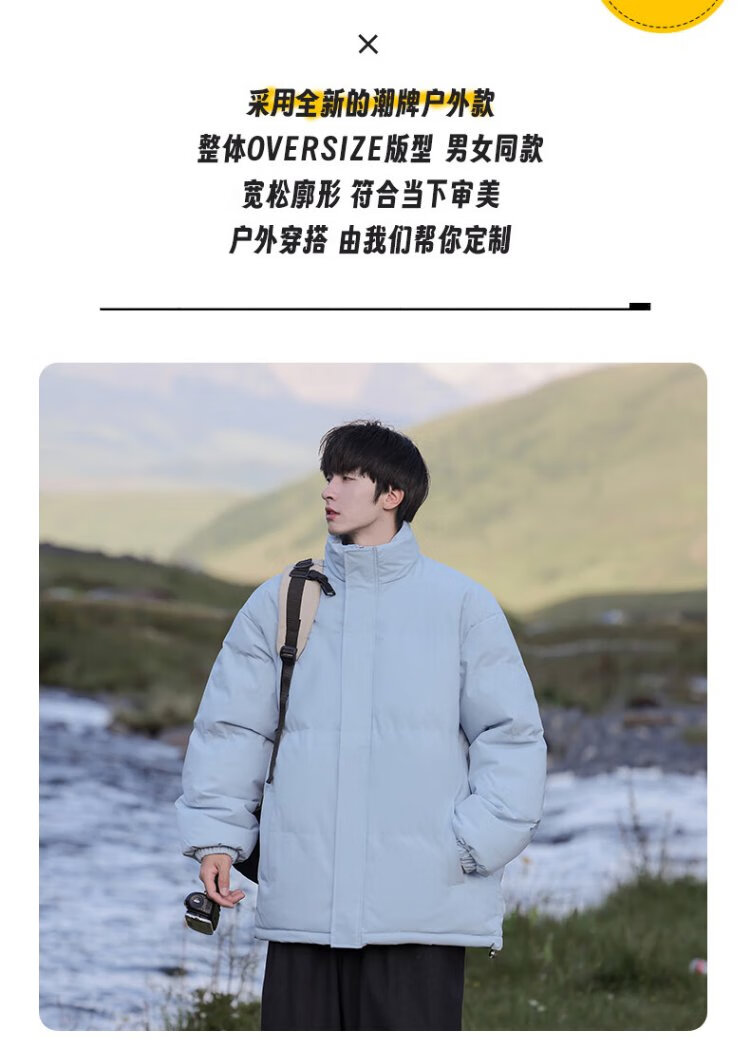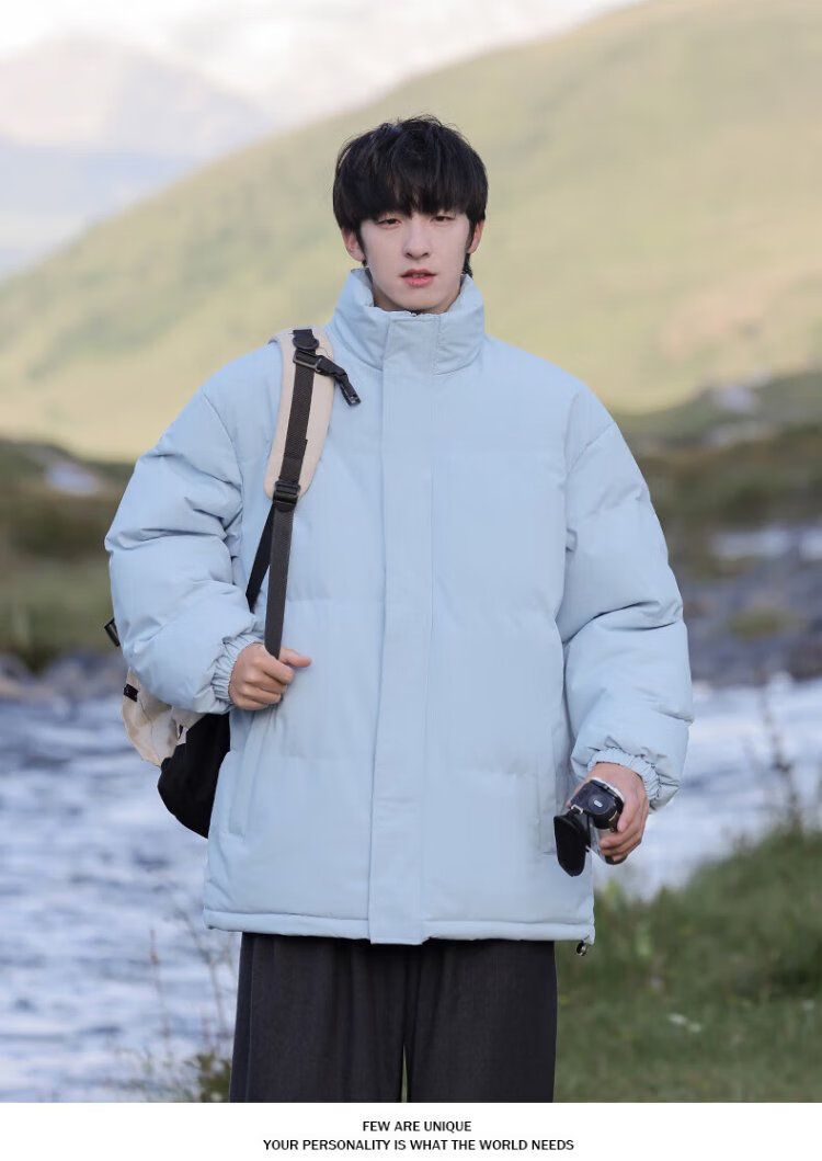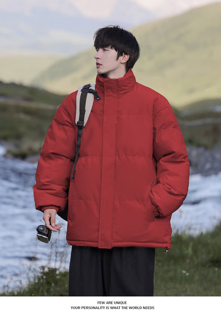 VUUG men's cotton coat American style stand collar solid color cold weather clothing versatile new trendy brand cotton coat black S
