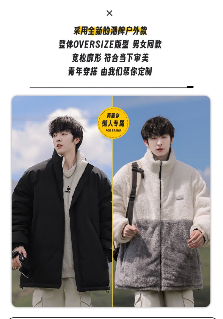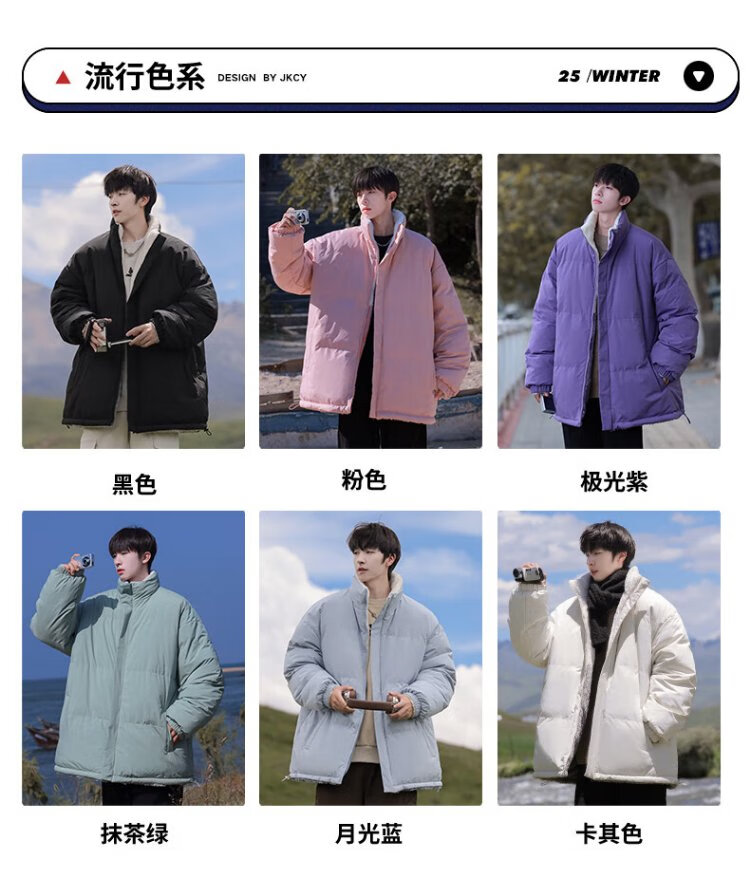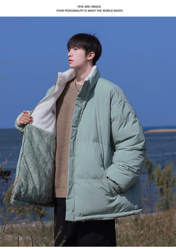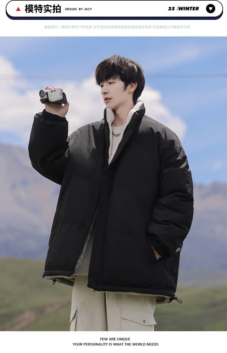 VUUG Outdoor Leisure Sports Stand Collar Winter Cotton Clothes Men's Warm Cotton Clothes Trendy Versatile Jackets Men Black S