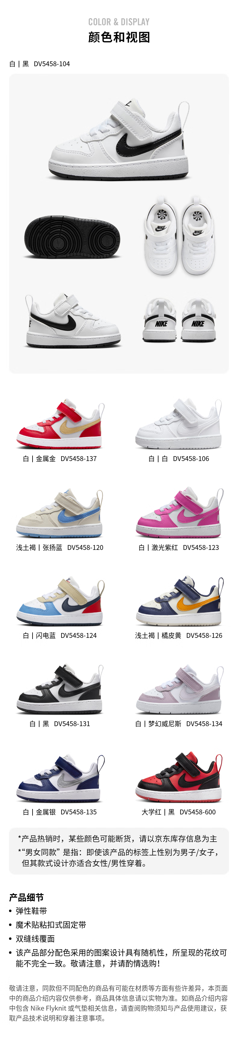 Nike (NIKE) cool pineapple baby Velcro sneakers spring boys and girls sneakers NIKE COURT DV5458