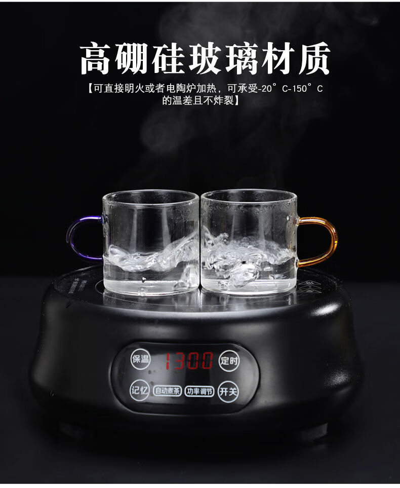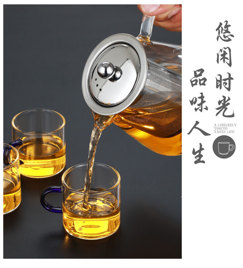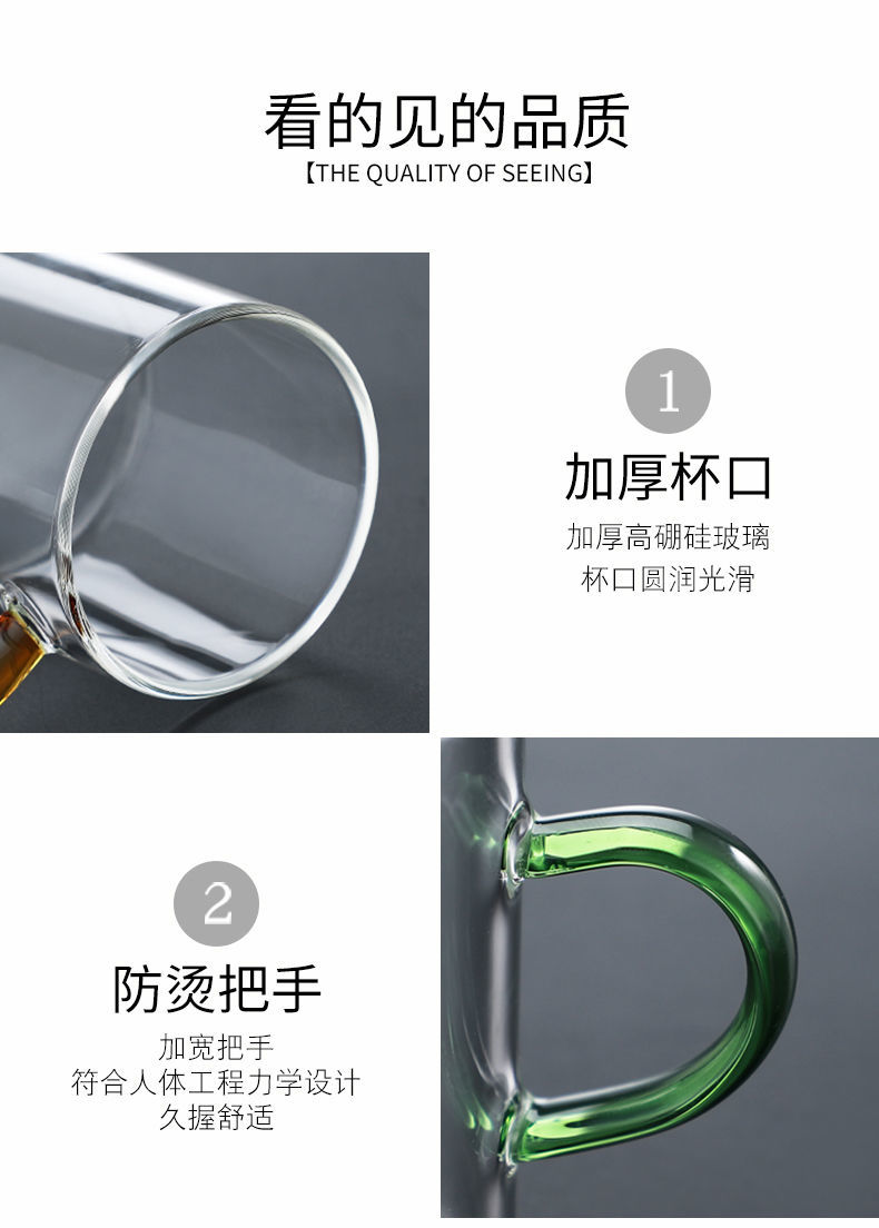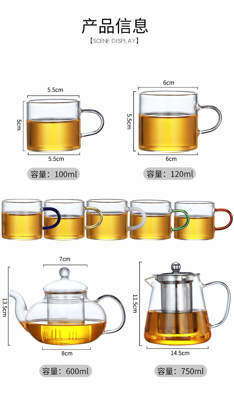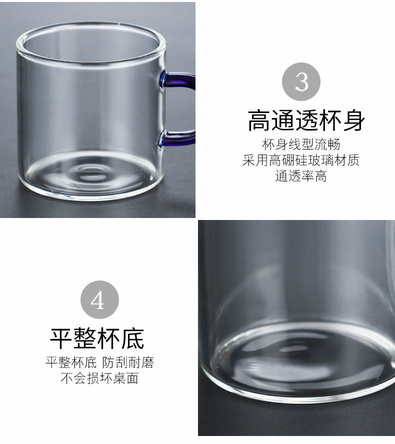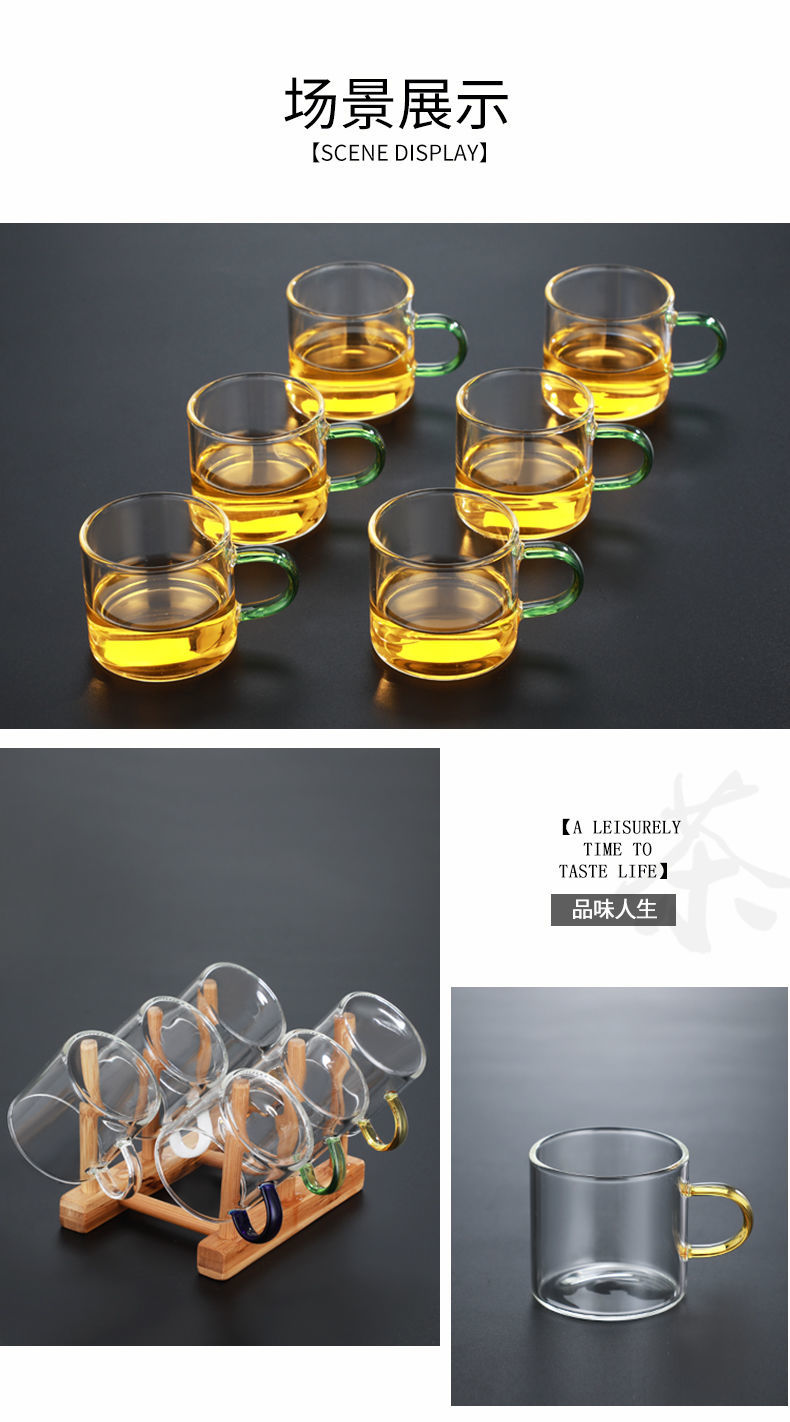 ShouMi glass small teacup Kung Fu tea set heat-resistant thickened household transparent drinking cup 6-piece set tea cup holder six-color cup 100ml + cup holder