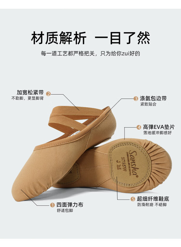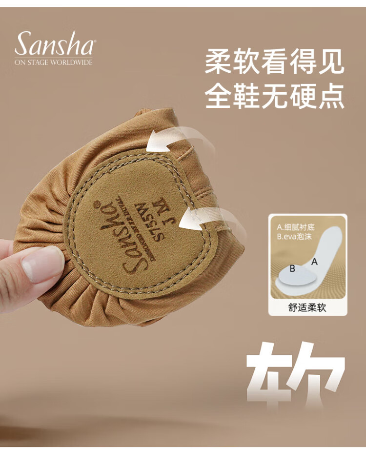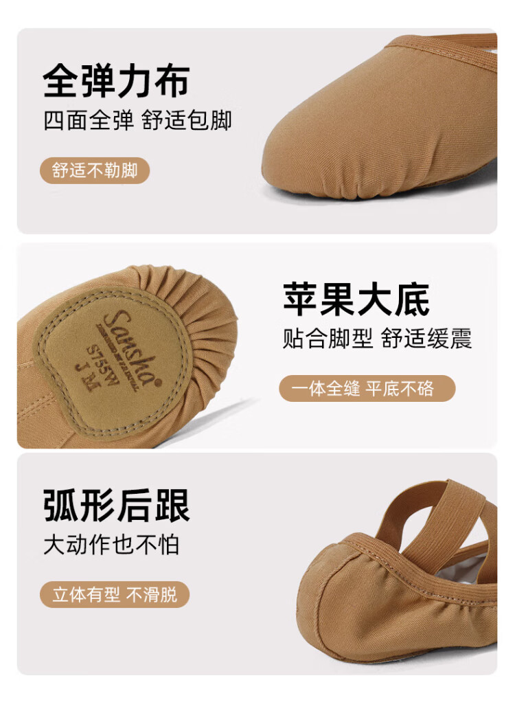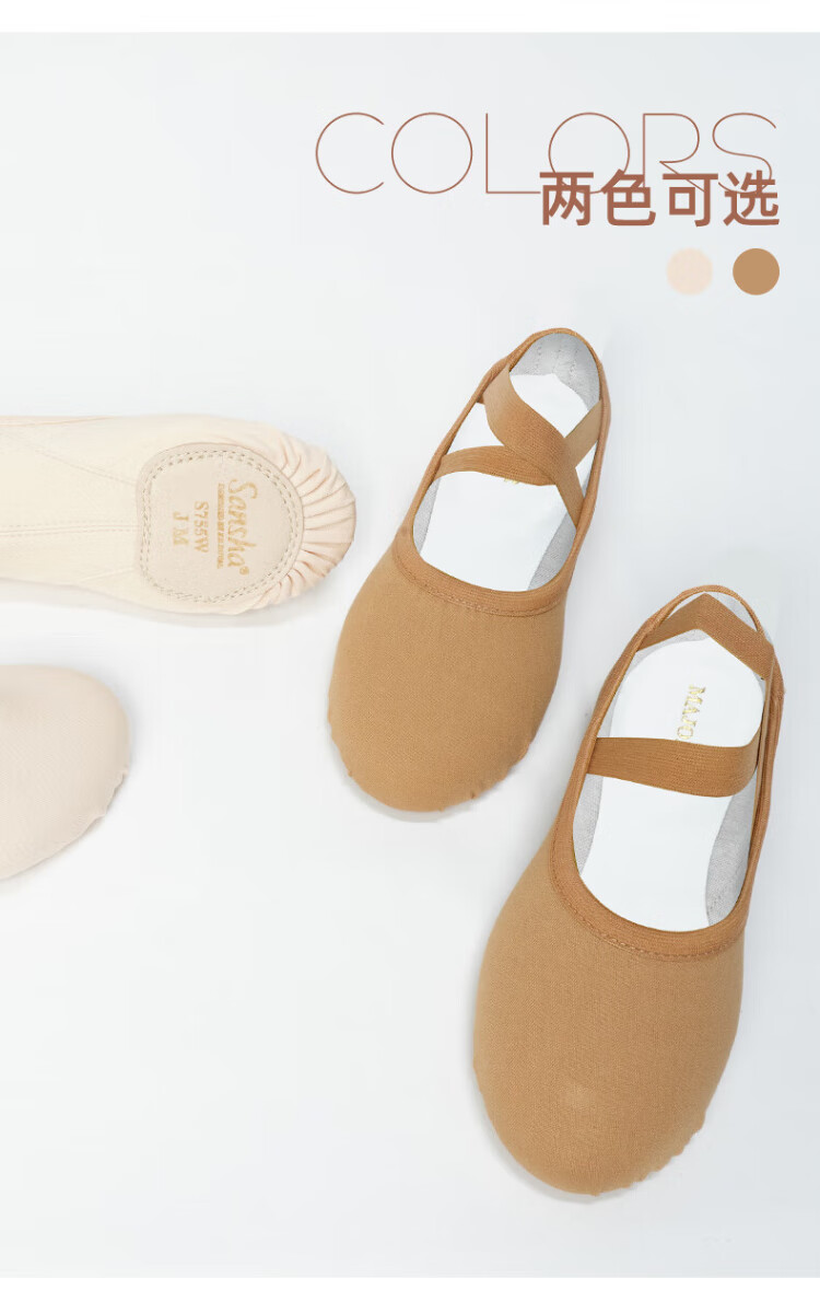 Sansha children's dance soft shoes ballet Chinese dance practice shoes two-soled cat claw shoes S755W camel 36
