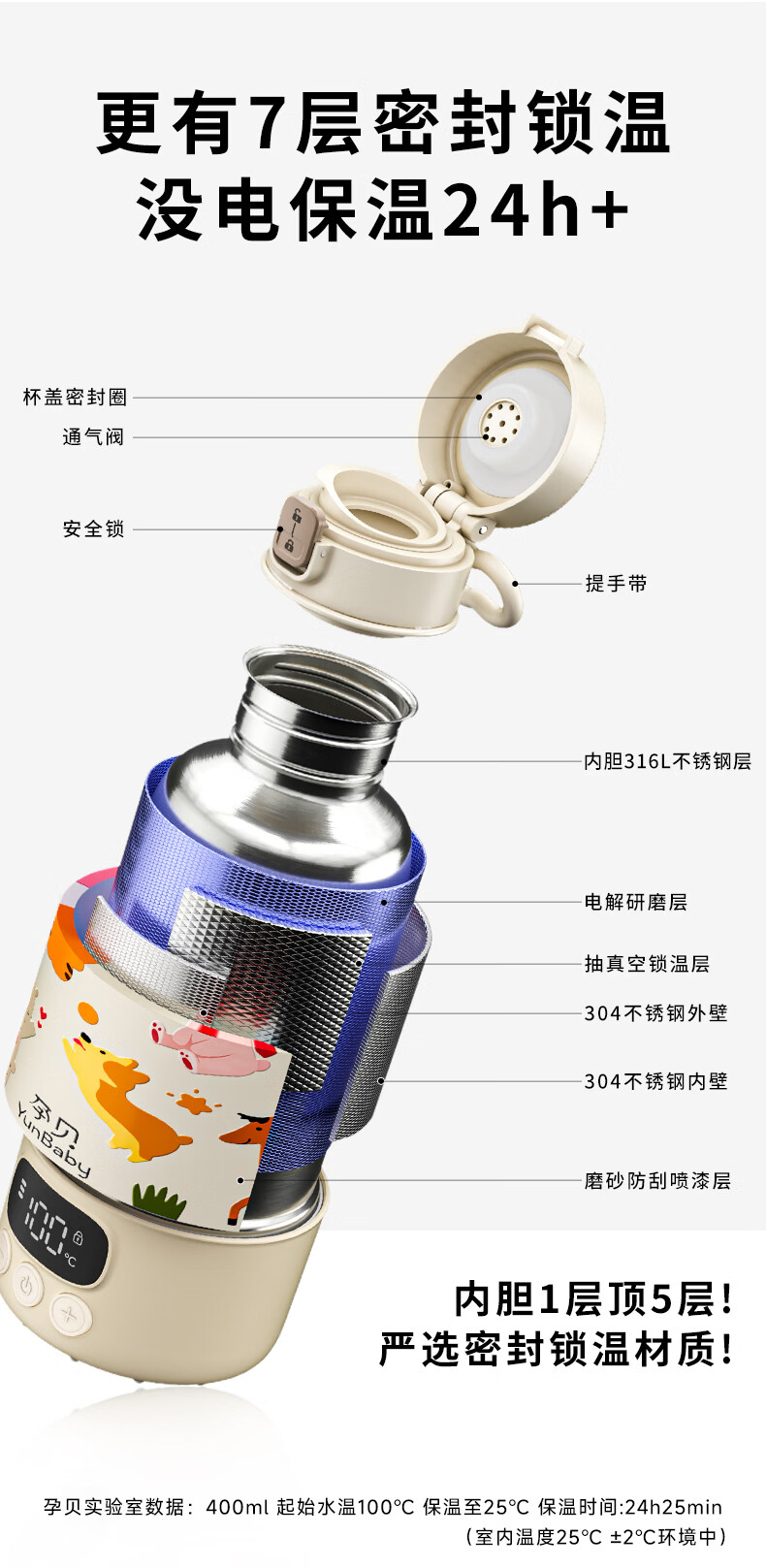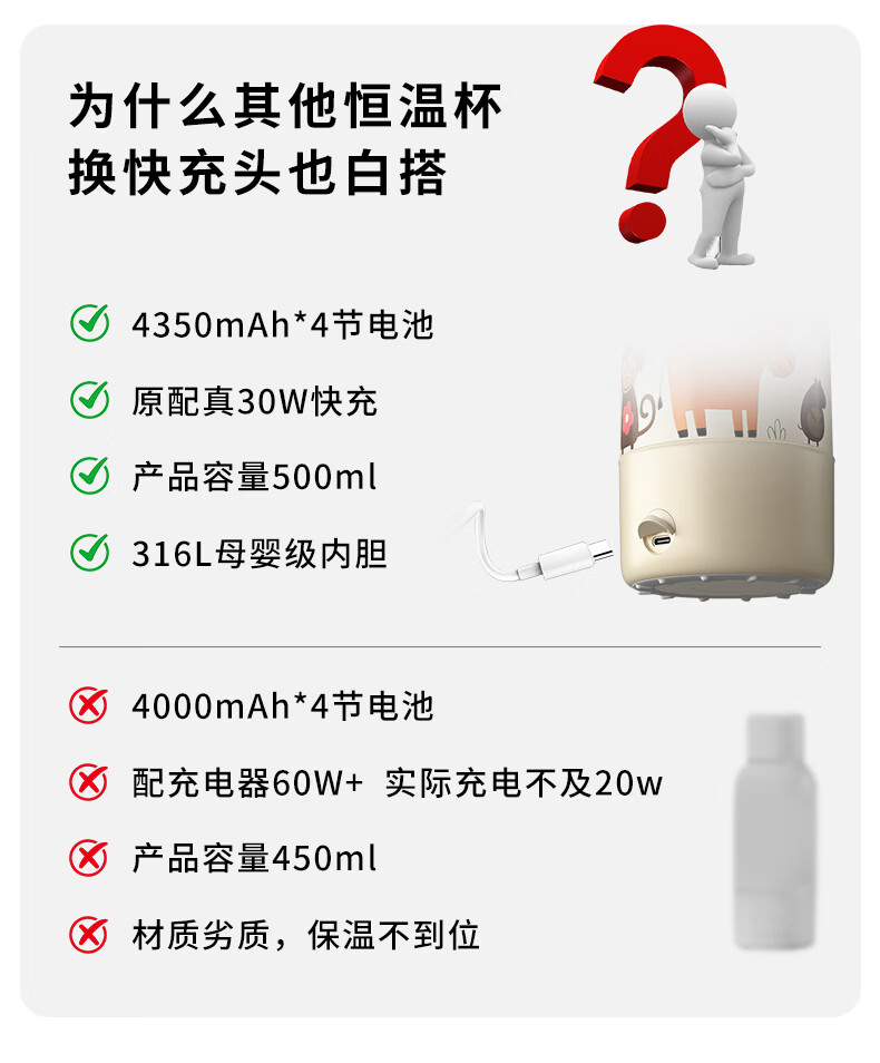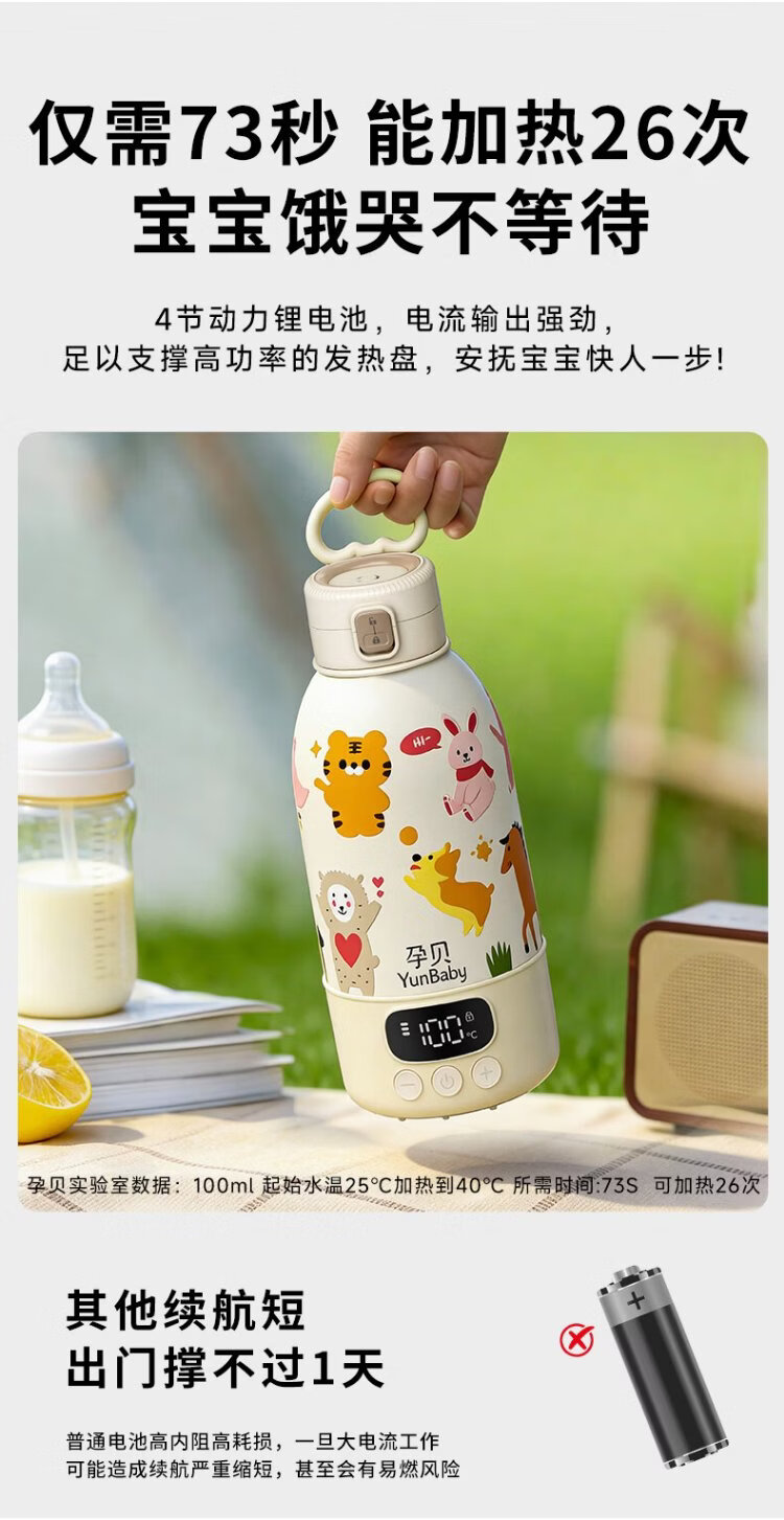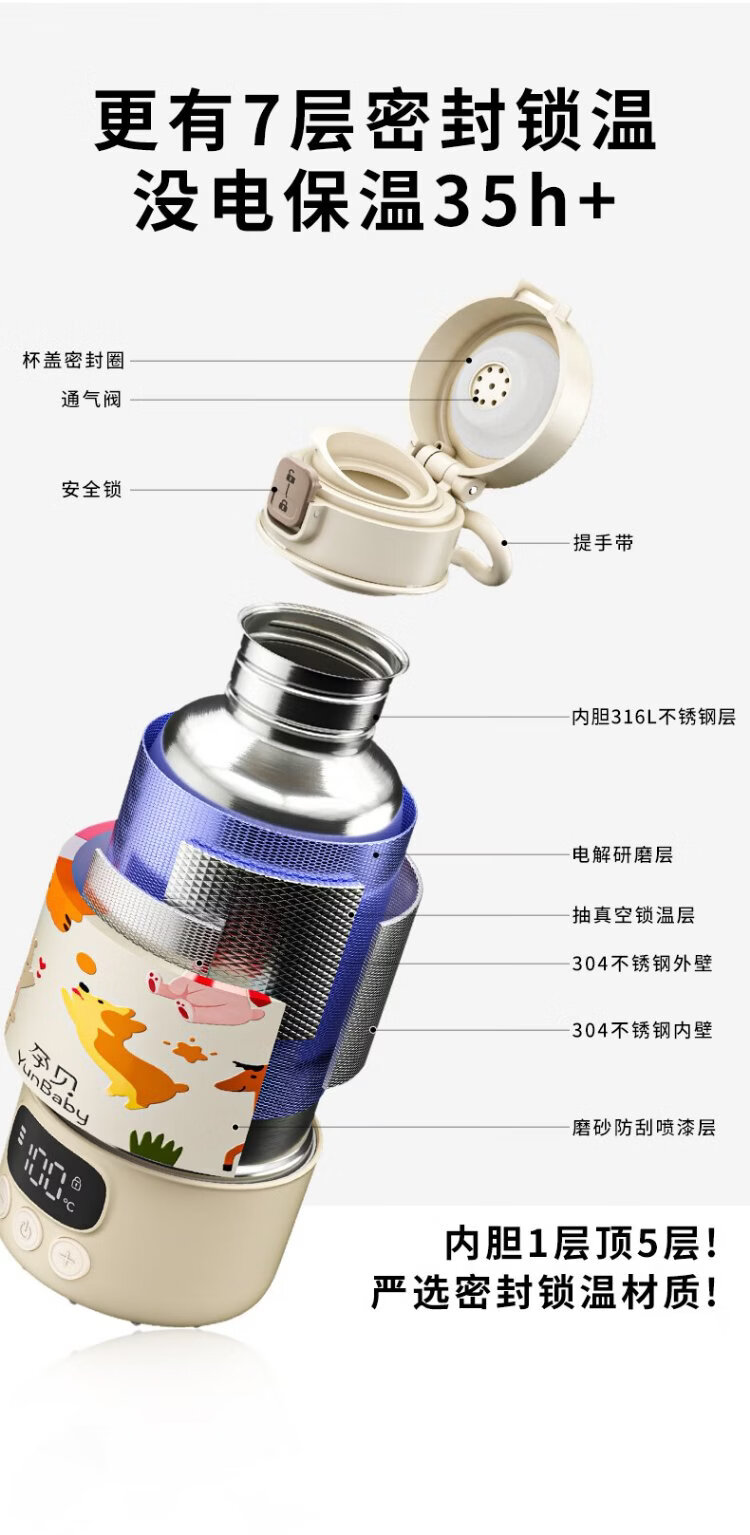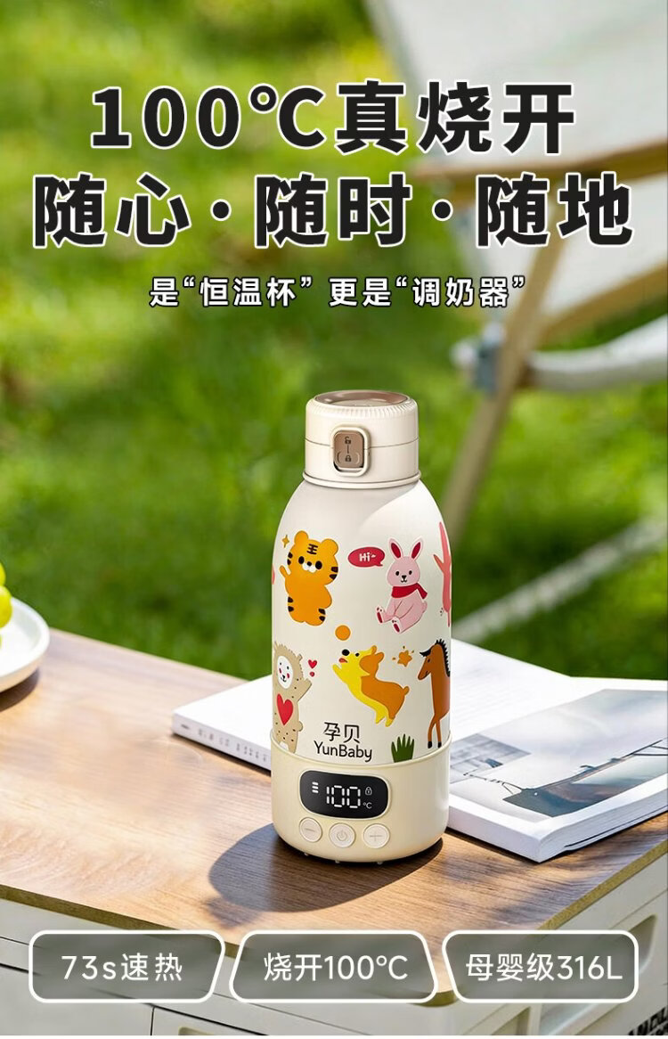Pregnant baby can boil portable thermostatic cup, thermostatic kettle, baby warm milk thermos cup for making milk when going out, wireless water boiling cup