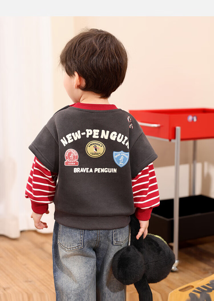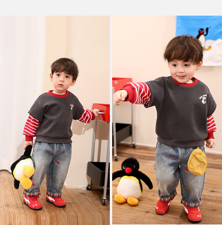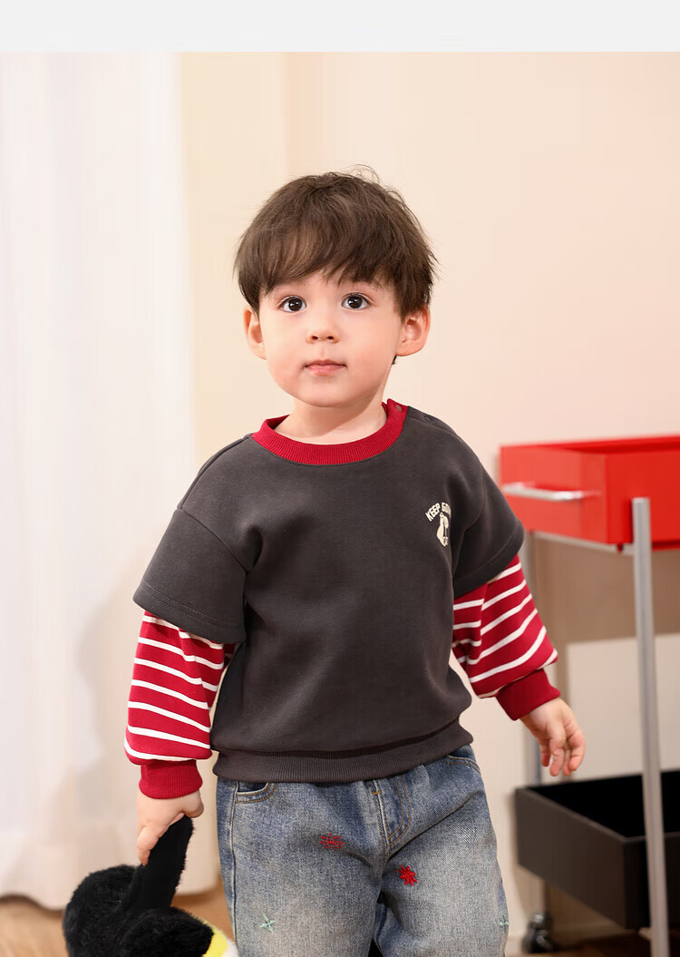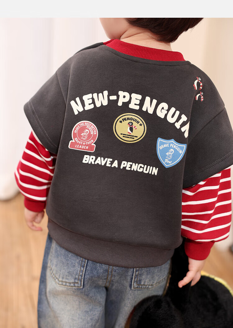 LUSON Little O daddy baby boy baby velvet sweatshirt fake two-piece winter 2025 new baby warm winter top