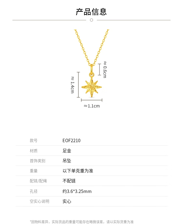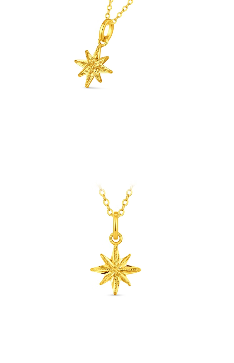 Chow Tai Fook Exploding Crushed Ice Eight-pointed Star Snowflake Gold Pendant (labor cost 180) about 1.3g EOF2210