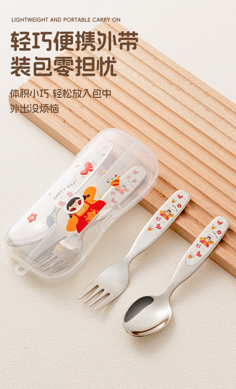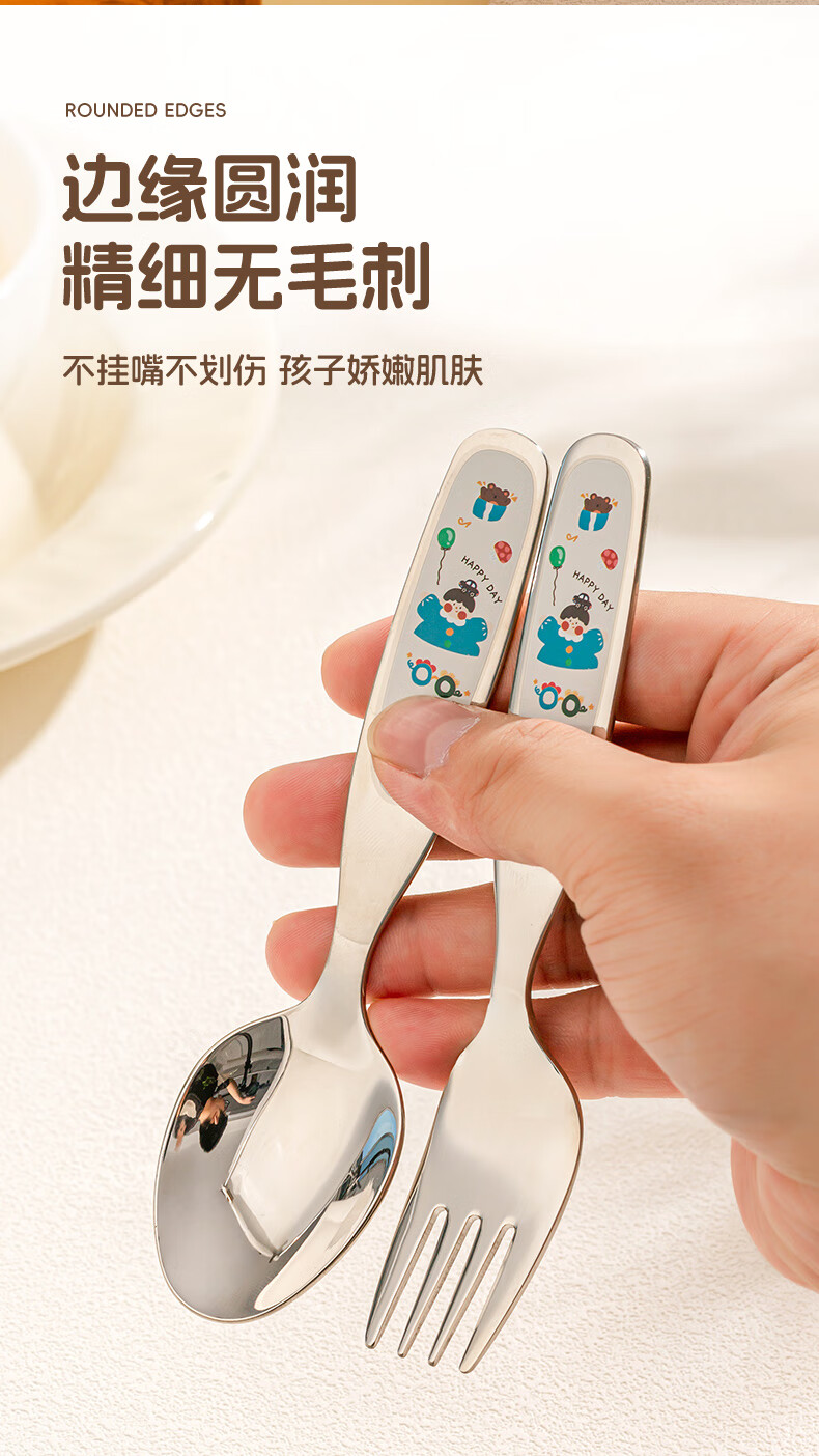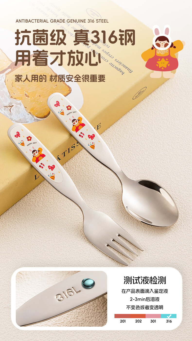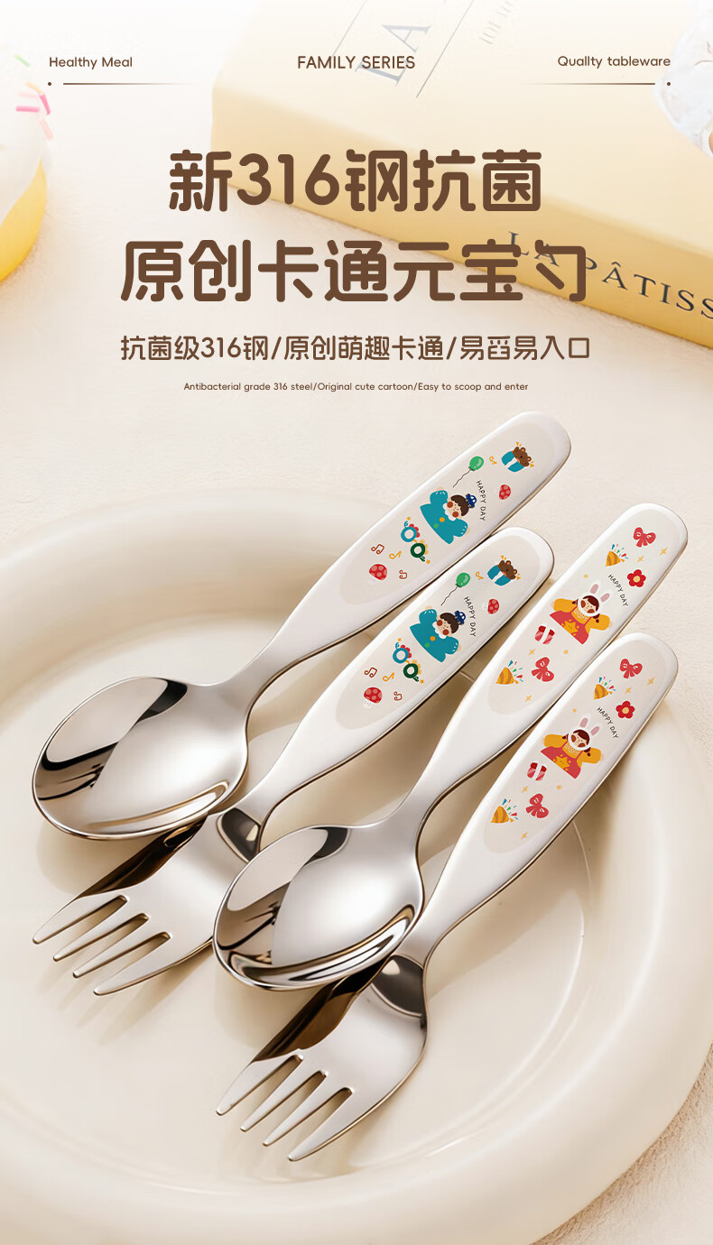 TREEJACK 316 stainless steel children's spoon, personal food-grade baby independent feeding spoon, Yuanbao spoon and fork