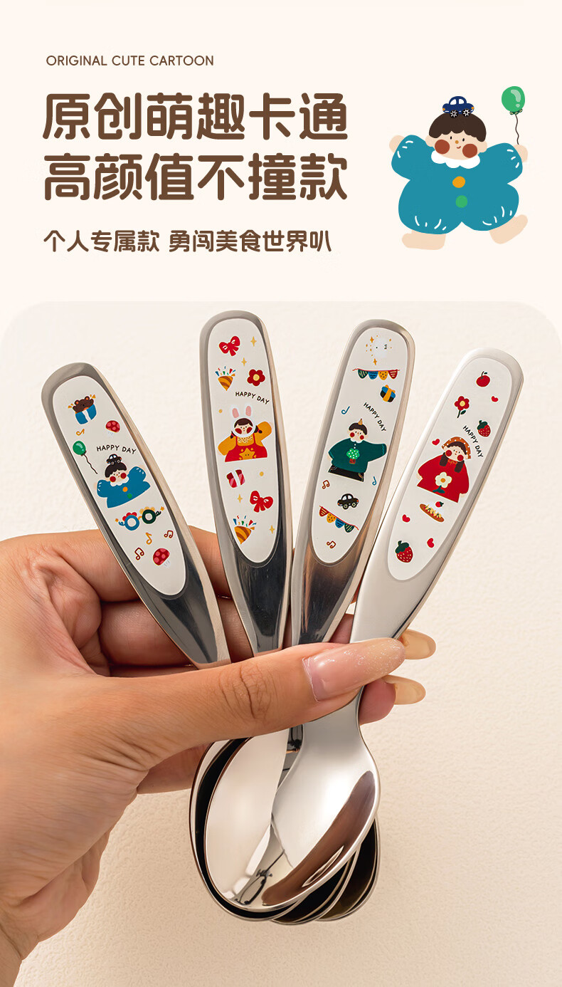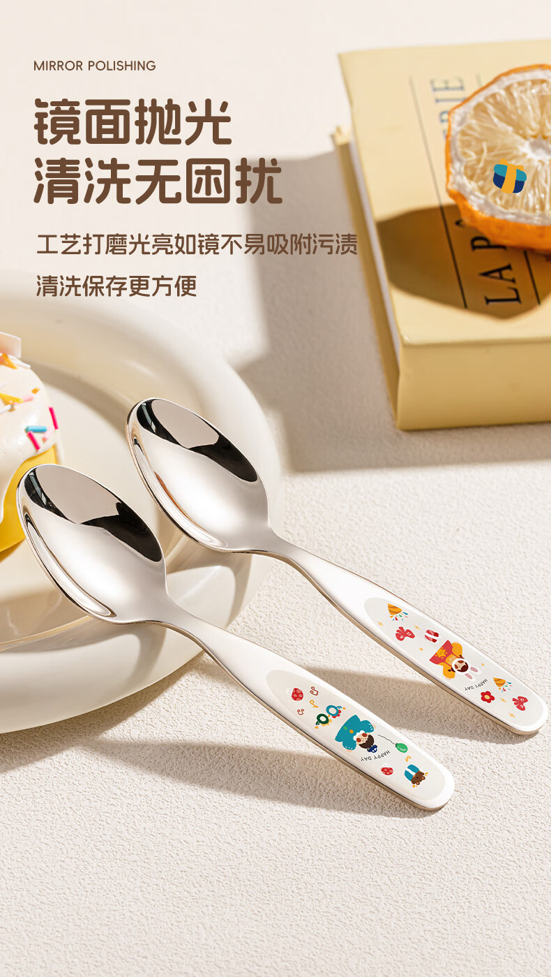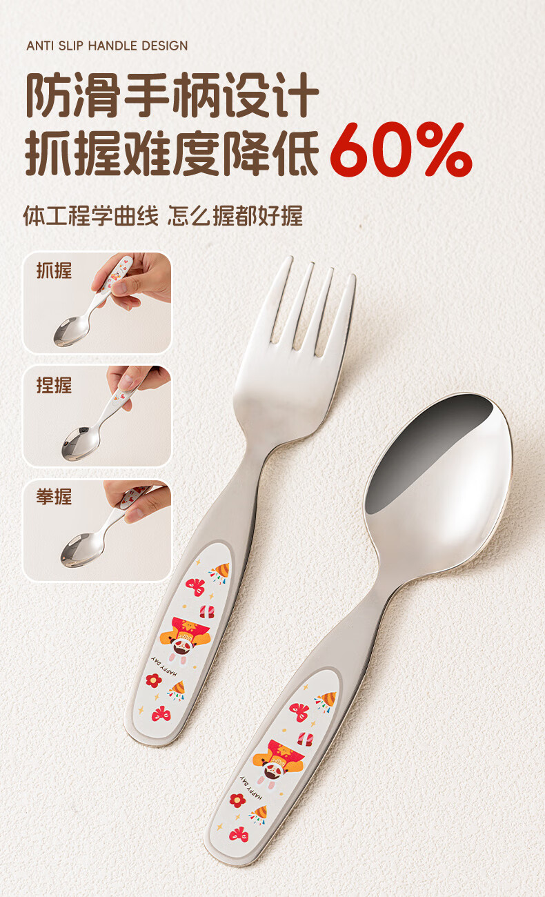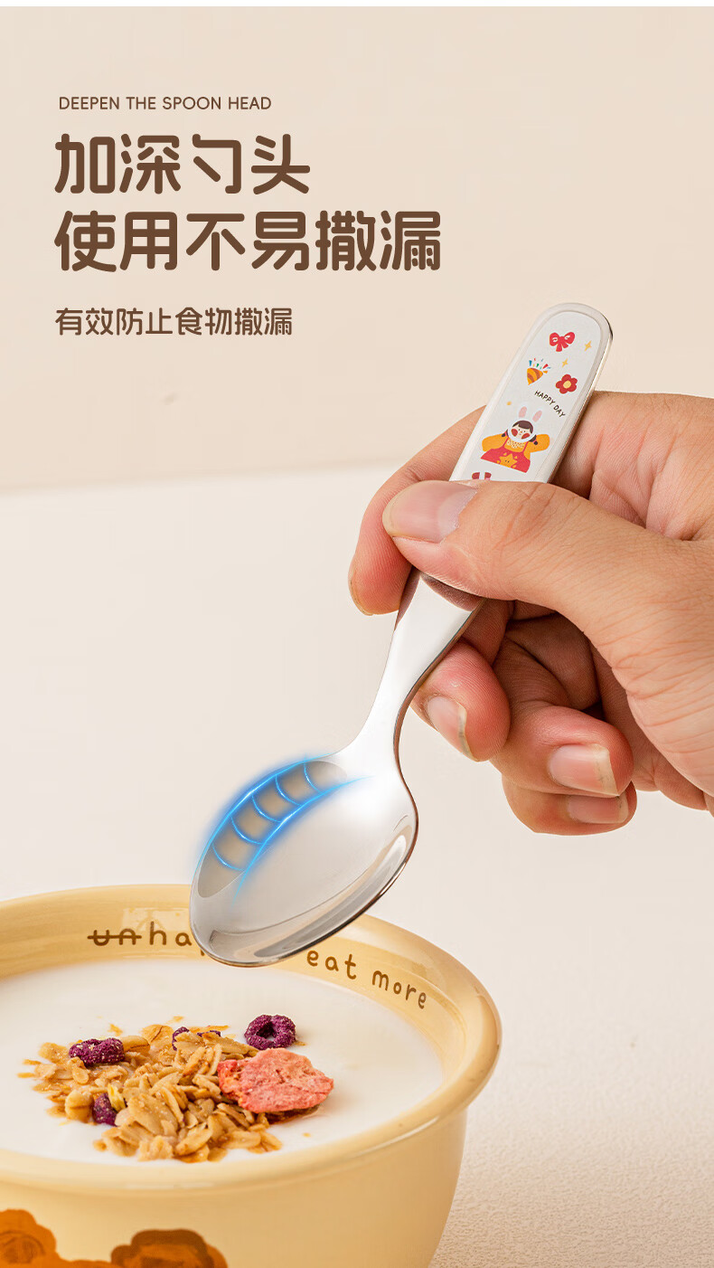 TREEJACK 316 stainless steel children's spoon, personal food-grade baby independent feeding spoon, Yuanbao spoon and fork