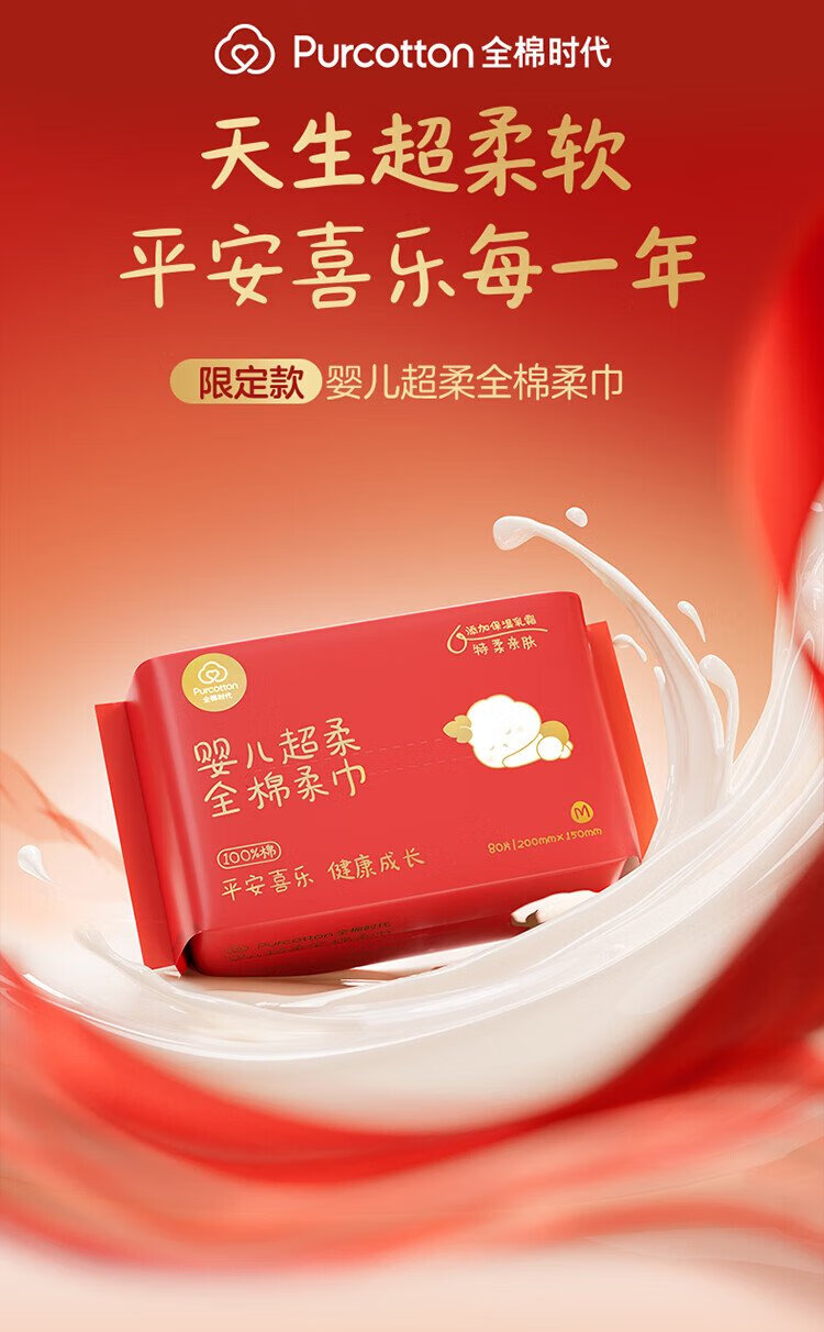 In the era of pure cotton, Sun Yingsha's same model, baby pure cotton soft towel, super soft cream face wash towel, available for adults, 80 puffs * 6 packs