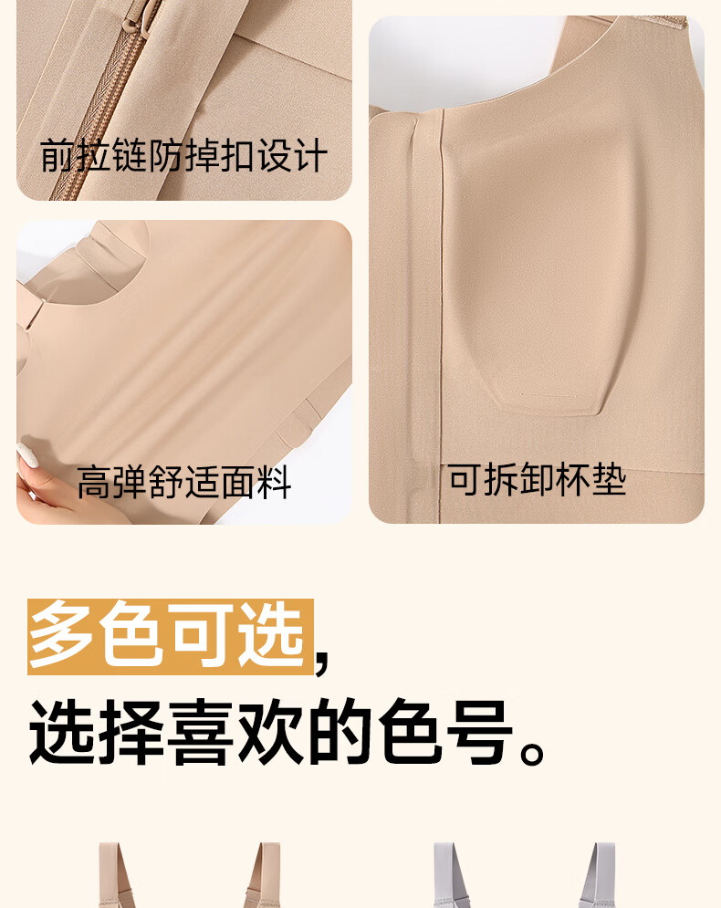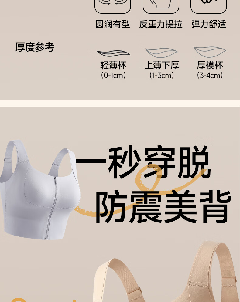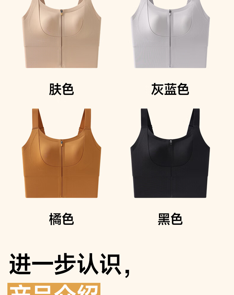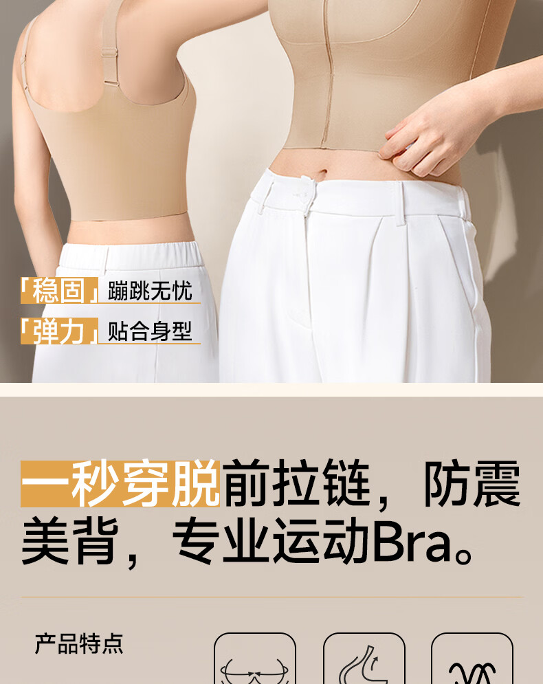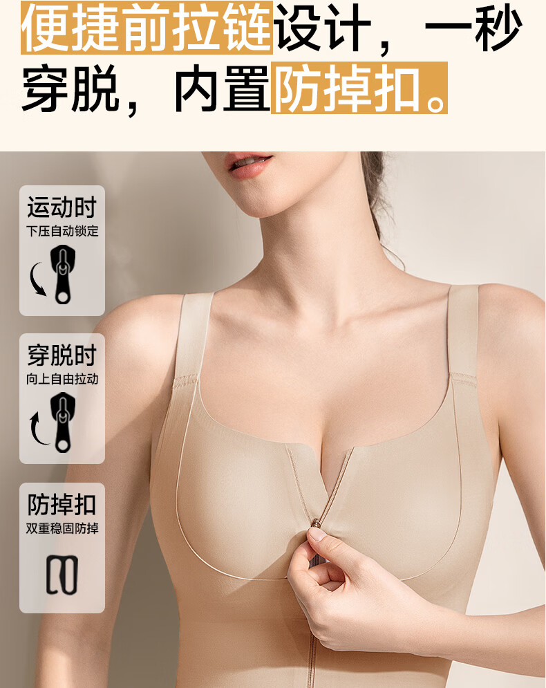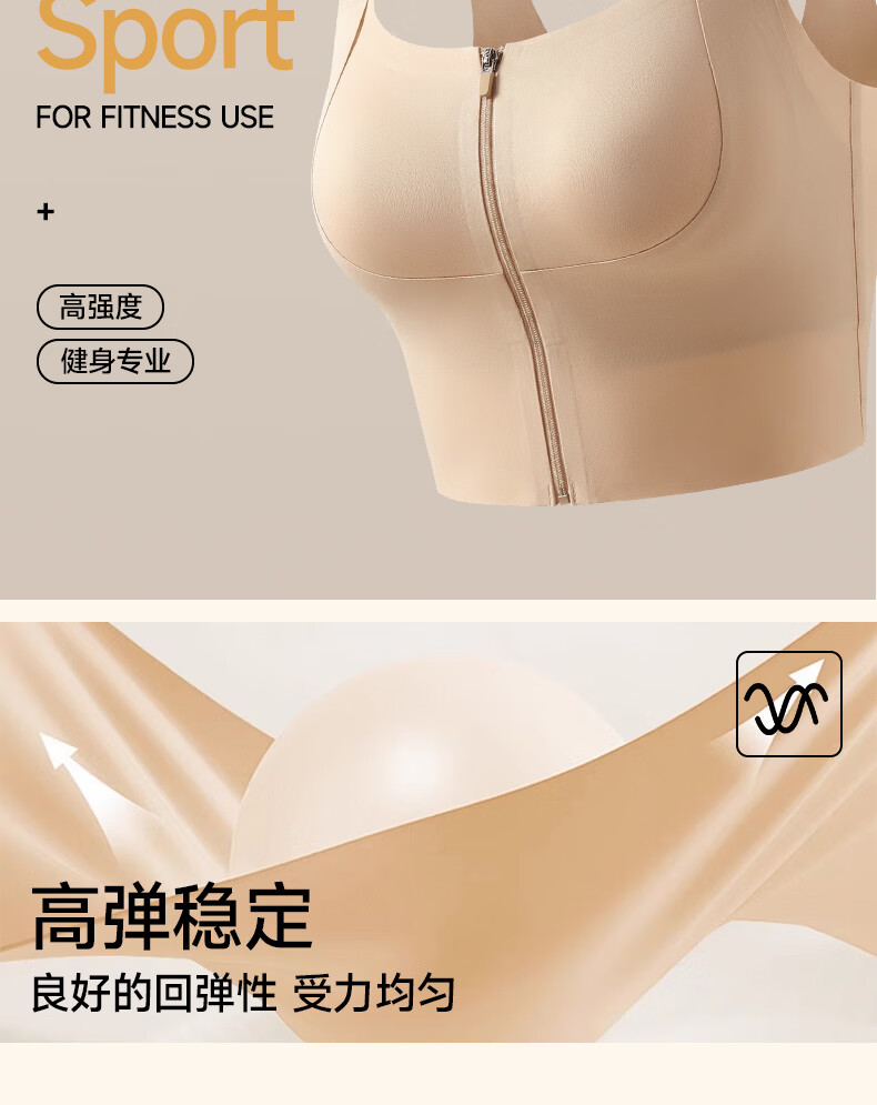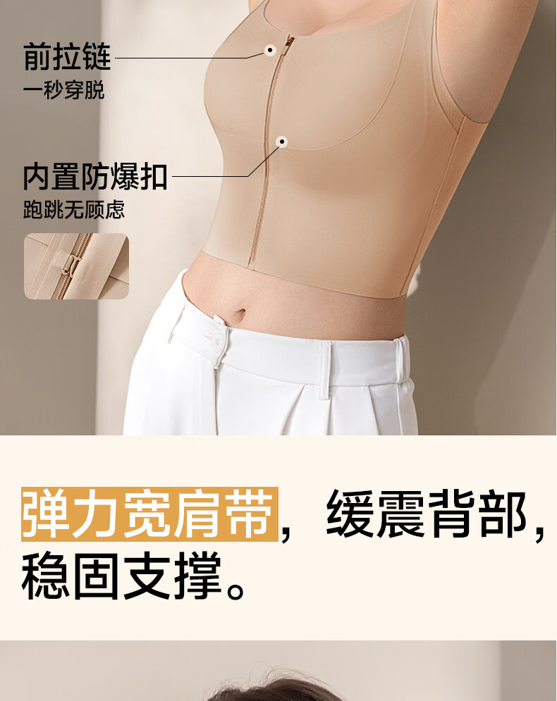 婷美运动内衣女前开拉链健身跑步防震瑜伽美背心式文胸聚拢防下垂 肤L