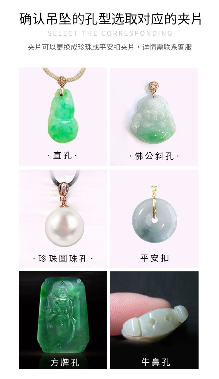 Huiyoulan 18K gold pendant buckle pattern inlaid with jade beeswax pendant rose gold clip buckle white gold melon seed buckle accessories Chinese Valentine's Day gift Christmas gift 18K white