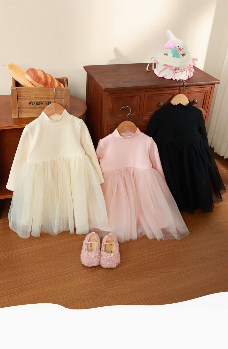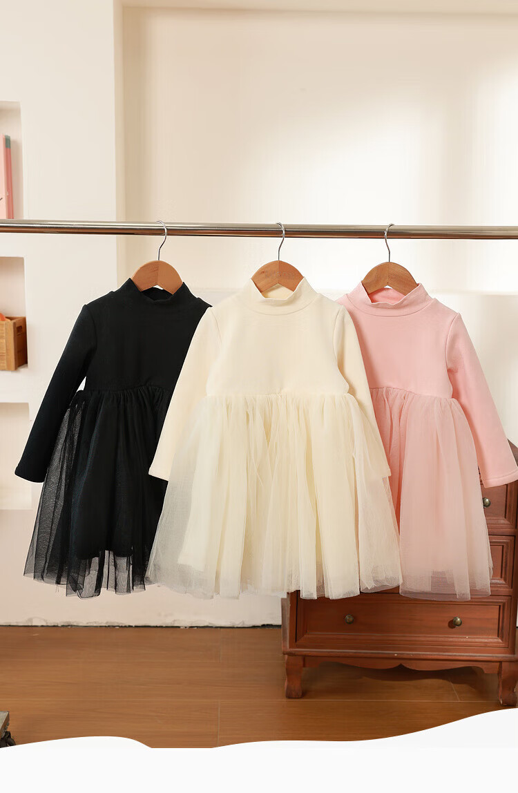 LUSON Little O Bao Children's Clothing Baby Mesh Dress Women's Velvet Half Turtle Collar 2025 Winter Girls Puffy Princess Dress