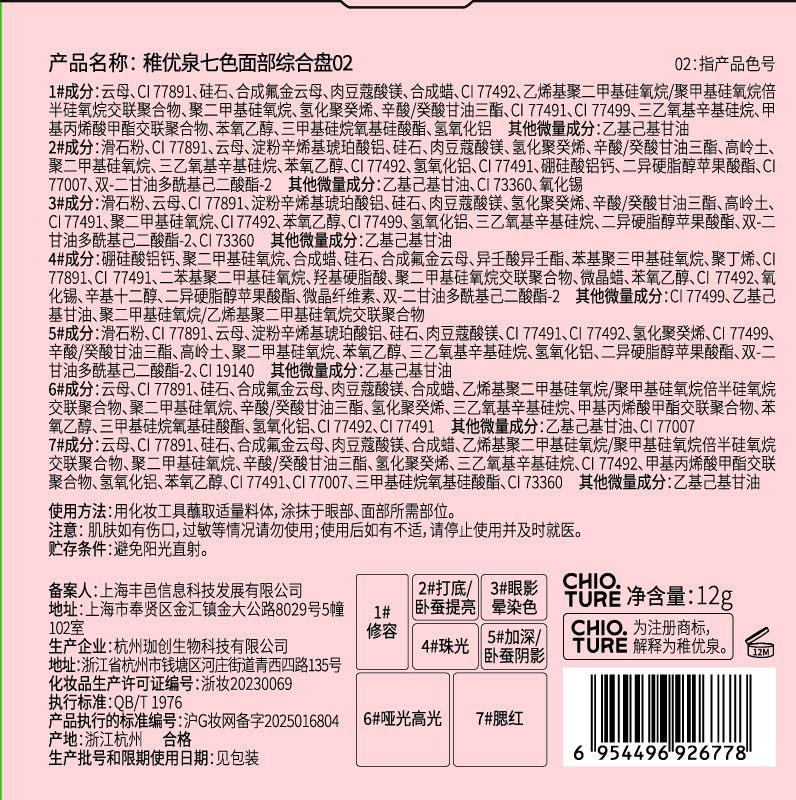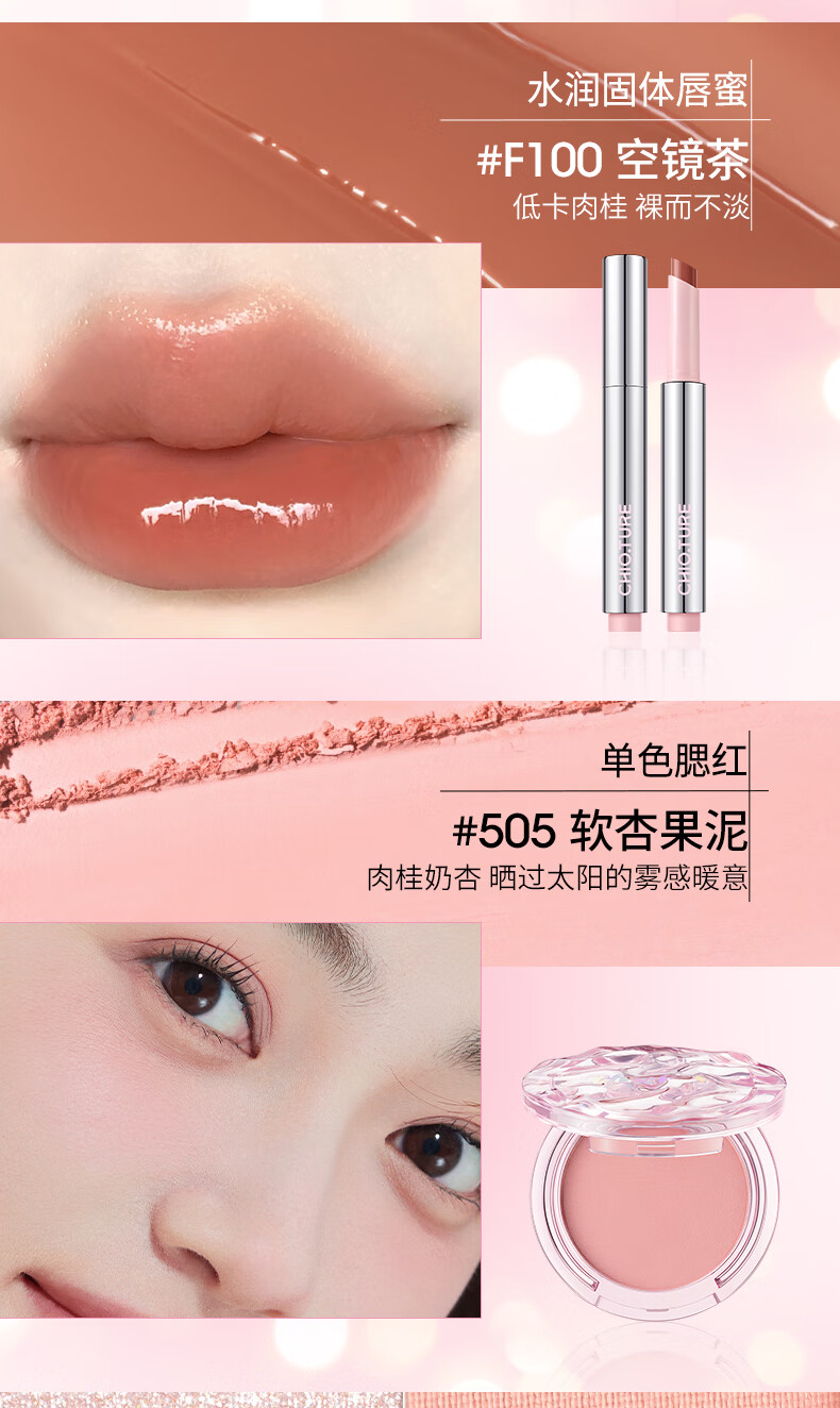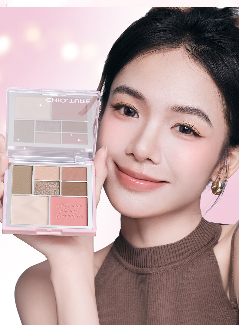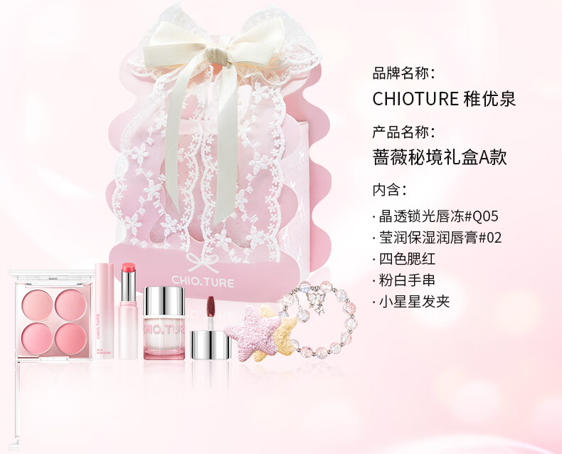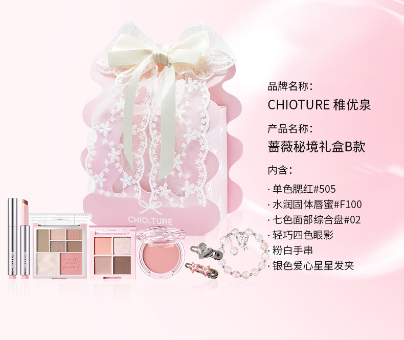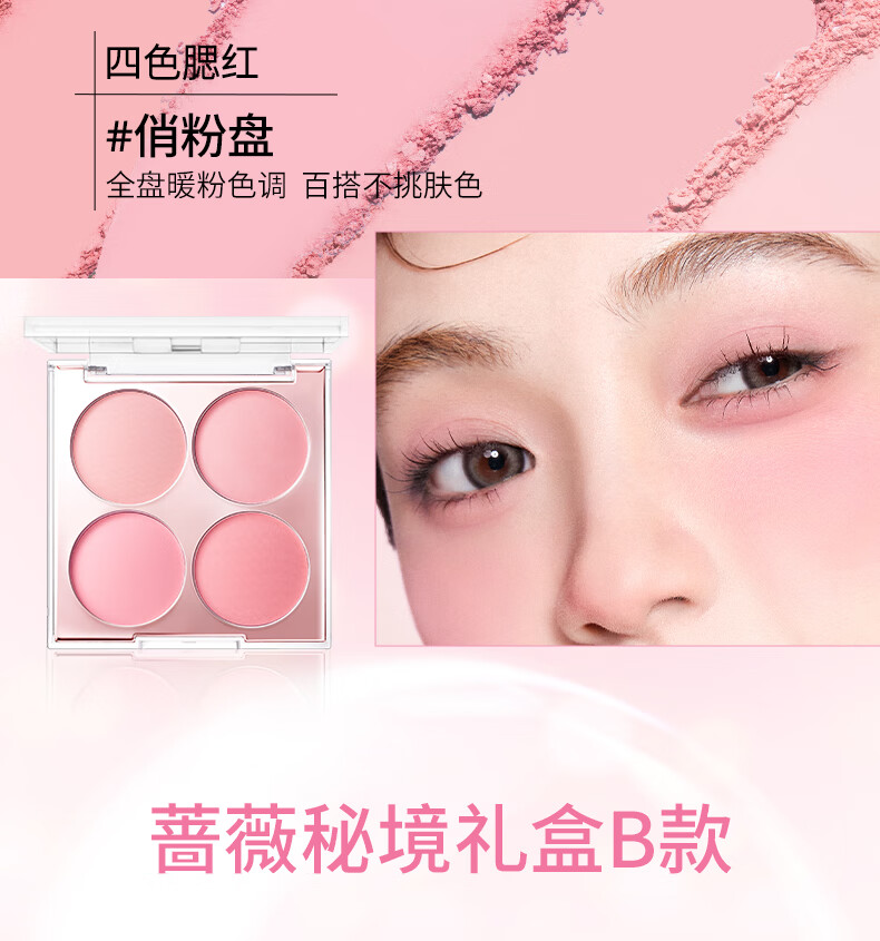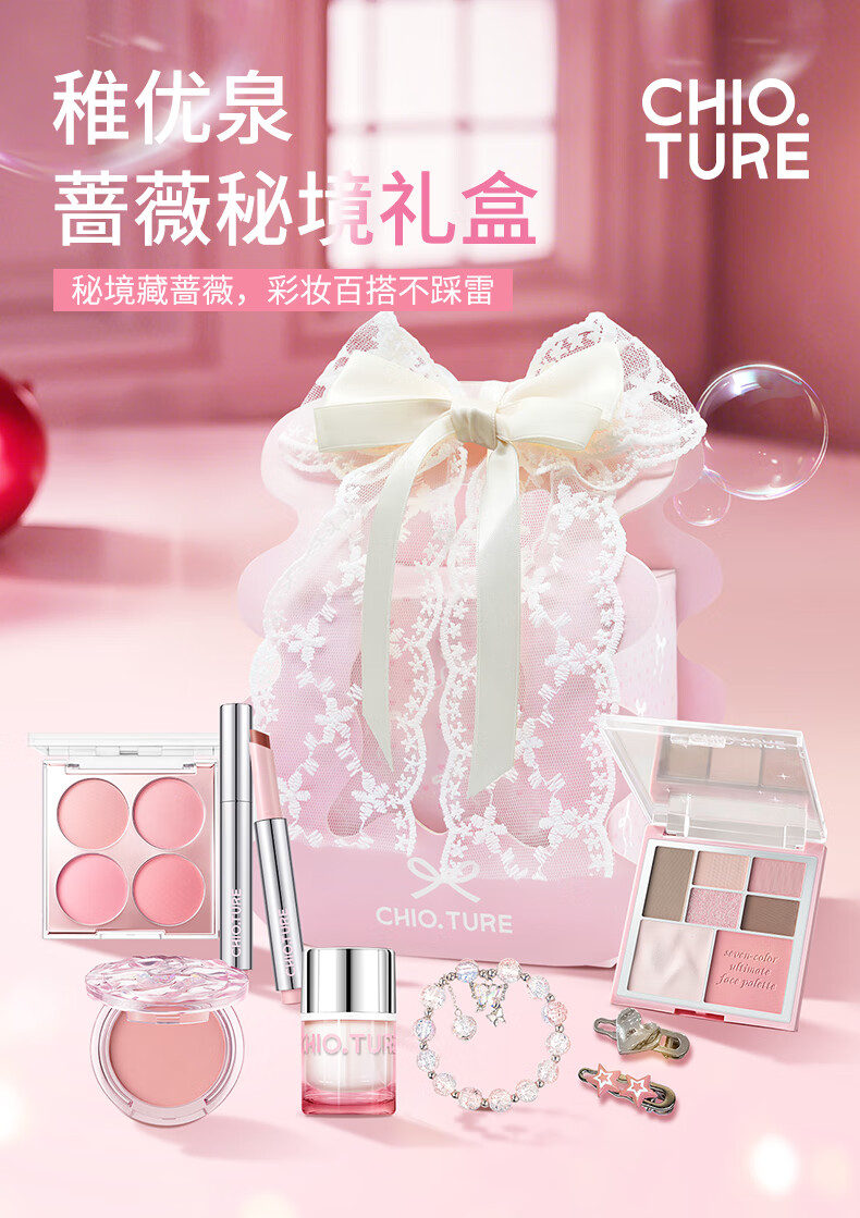 Zhiyouquan Rose Secret Gift Box Type B Blush + Moisturizing Solid Lip Gloss + Seven-Color Facial Comprehensive Palette New Year's Gift
