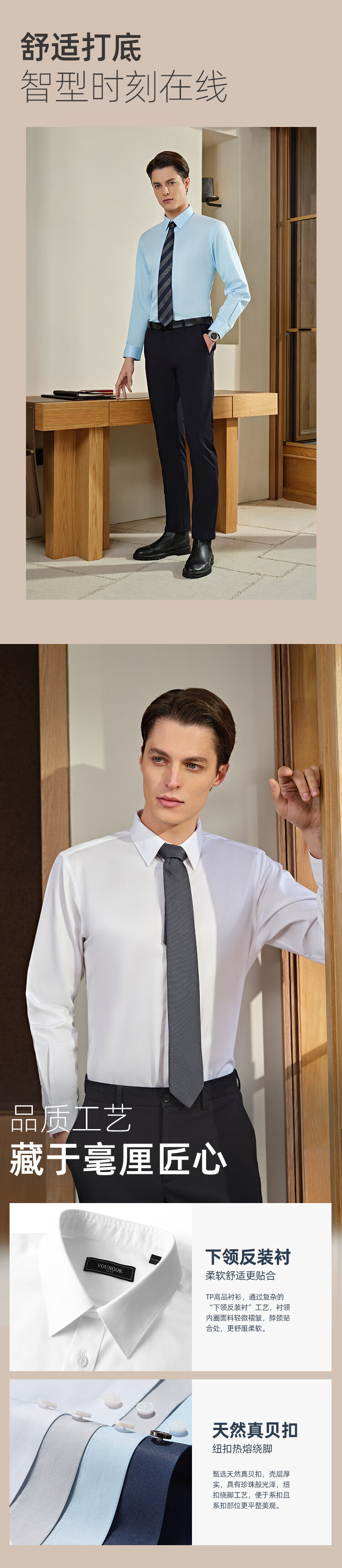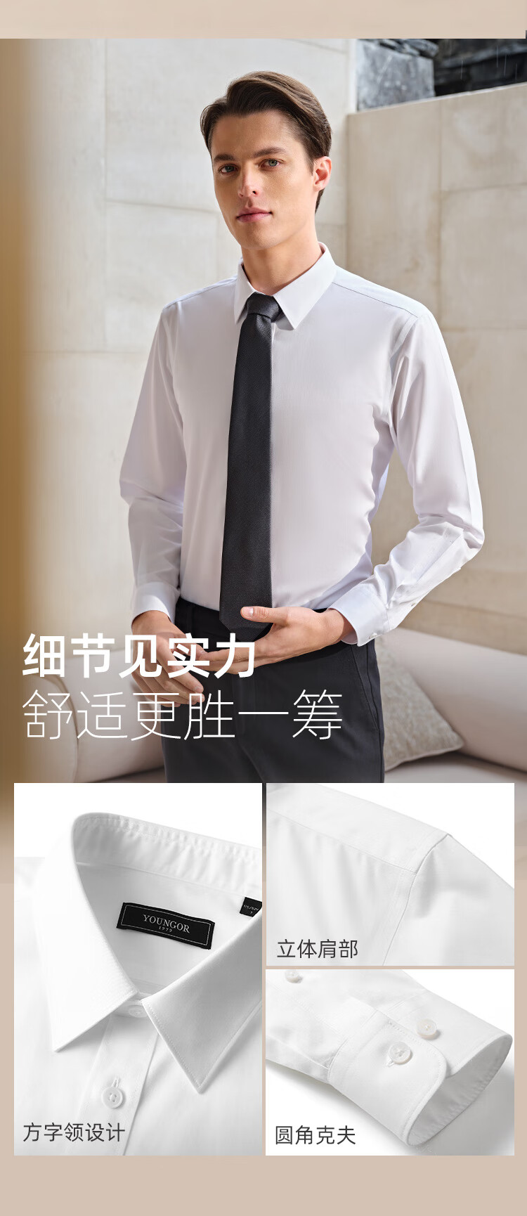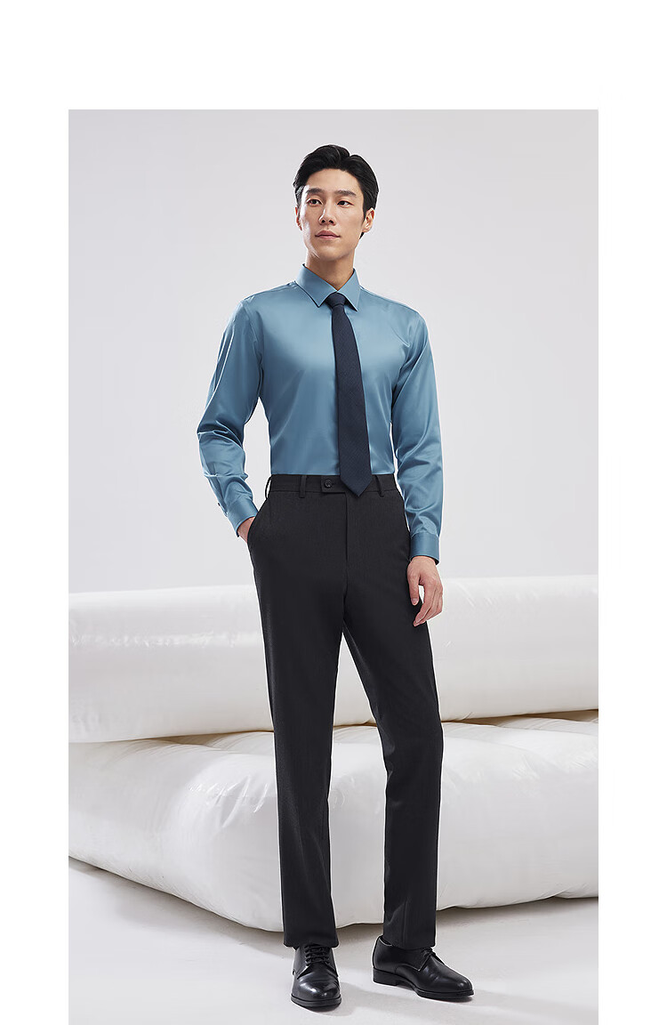 YOUNGOR long-sleeved shirt men's no-iron shirt cotton fabric comfortable breathable anti-wrinkle easy care shirt VLTP129811BFY white 42