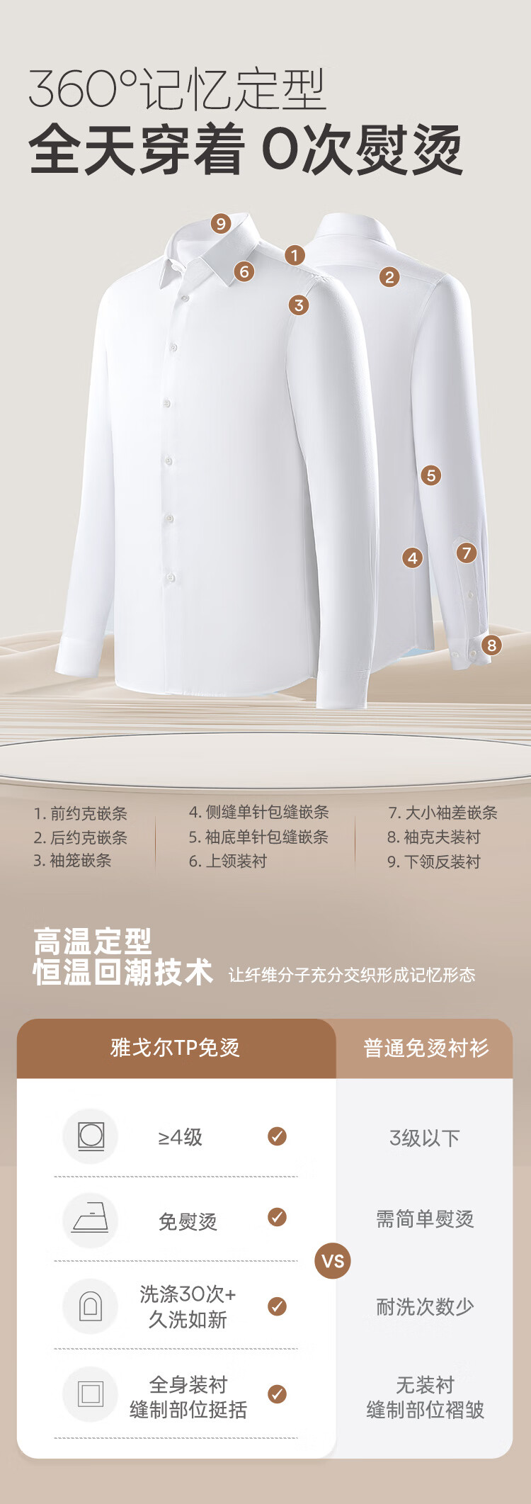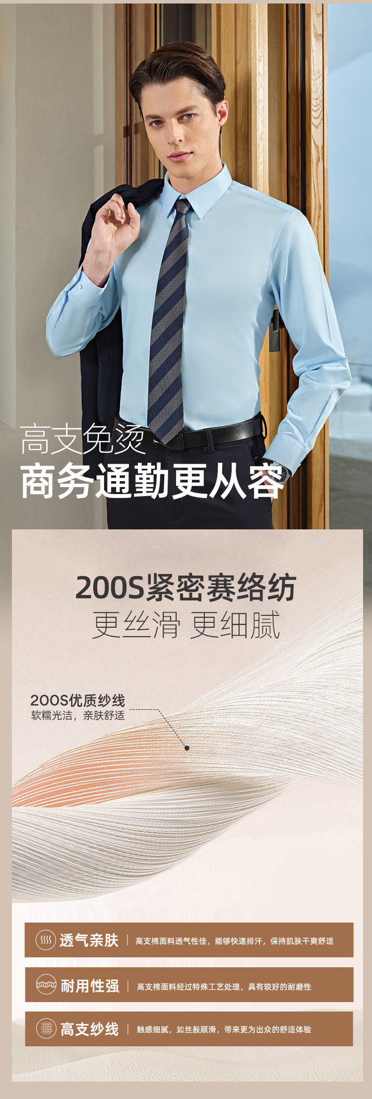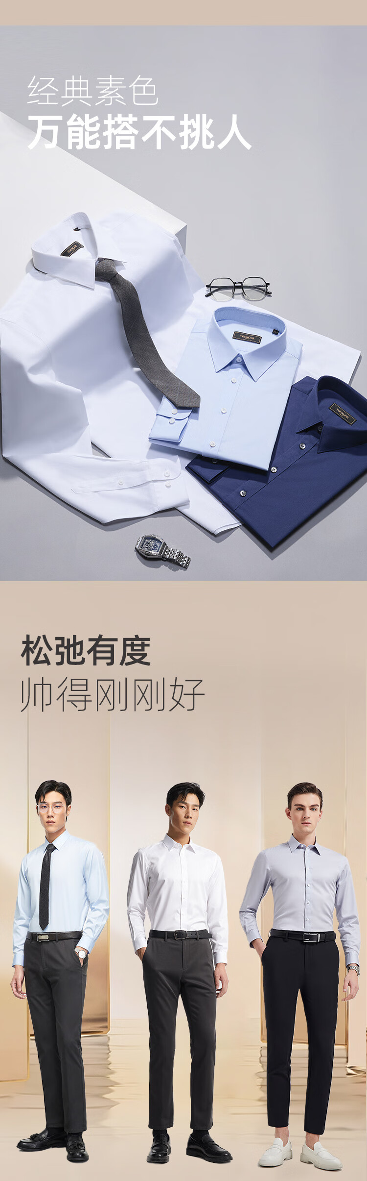 YOUNGOR long-sleeved shirt men's no-iron shirt cotton fabric comfortable breathable anti-wrinkle easy care shirt VLTP129811BFY white 42