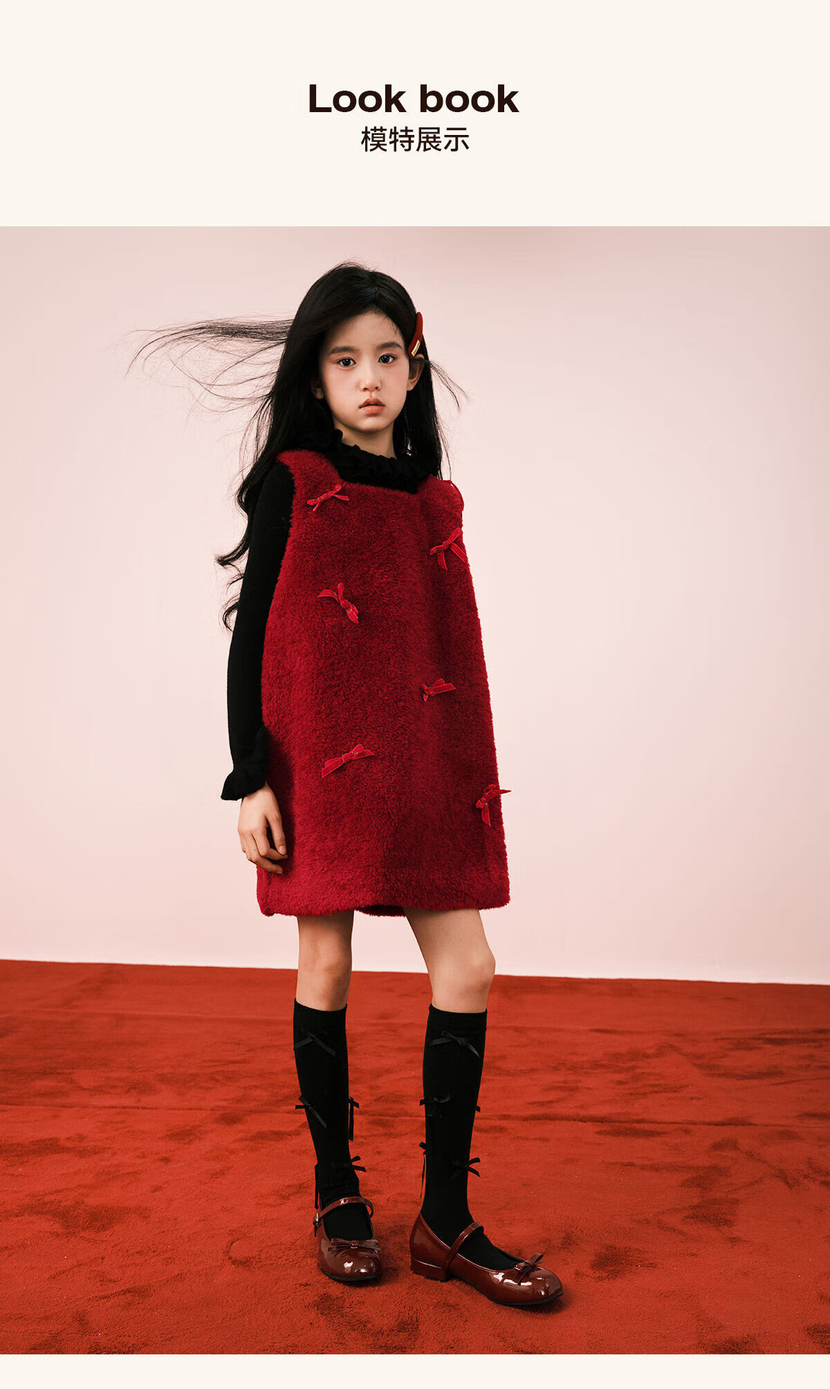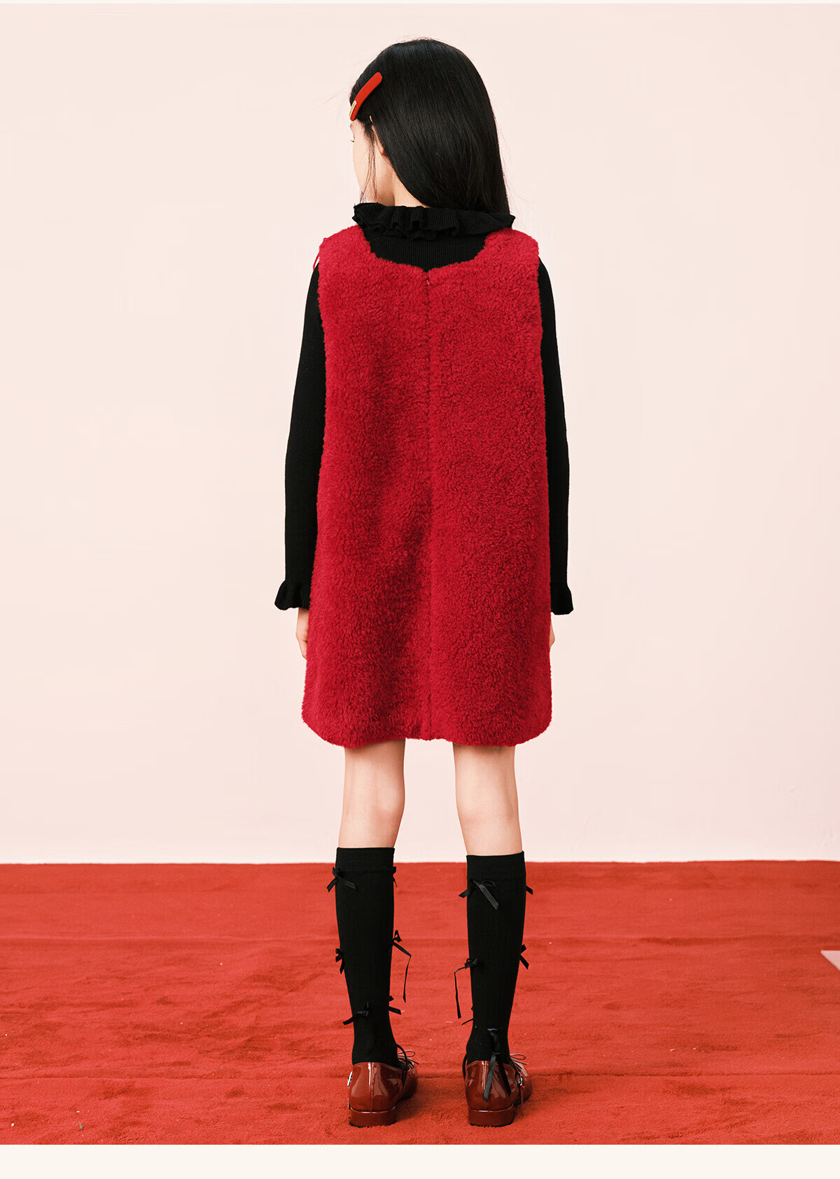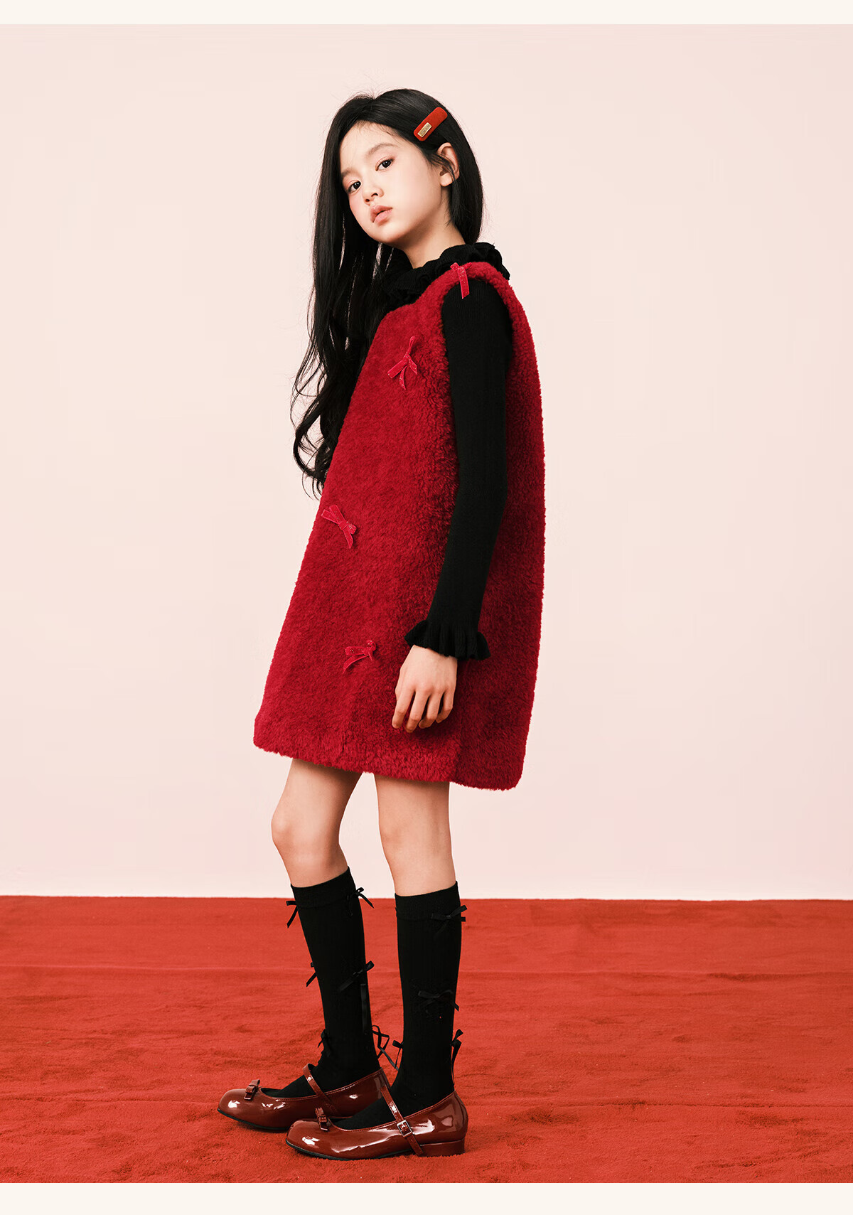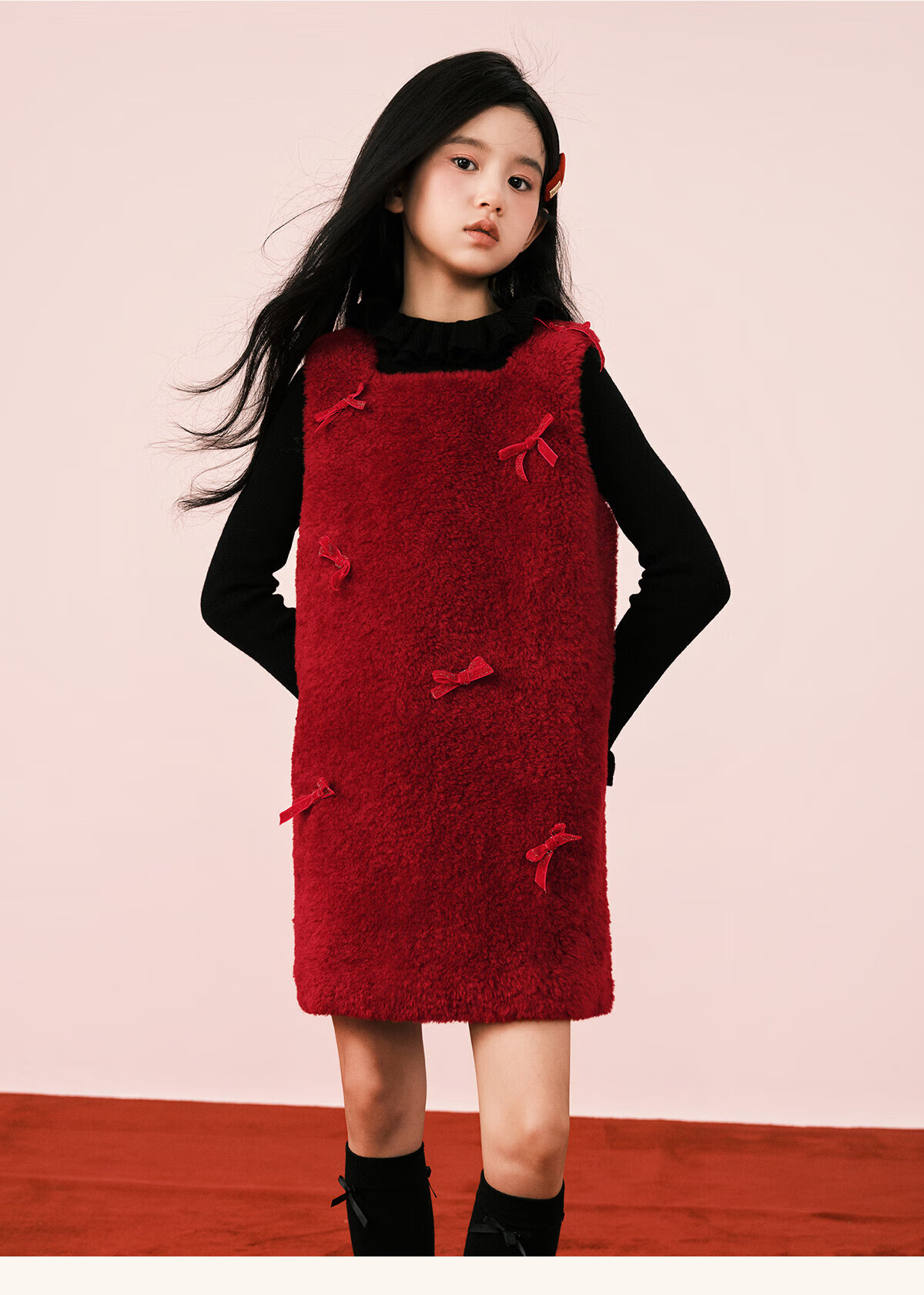 Taoding New Year Girls Dress Spring and Autumn Style Western Girl Thickened Warm Bow Fur Skirt Small Tank Top