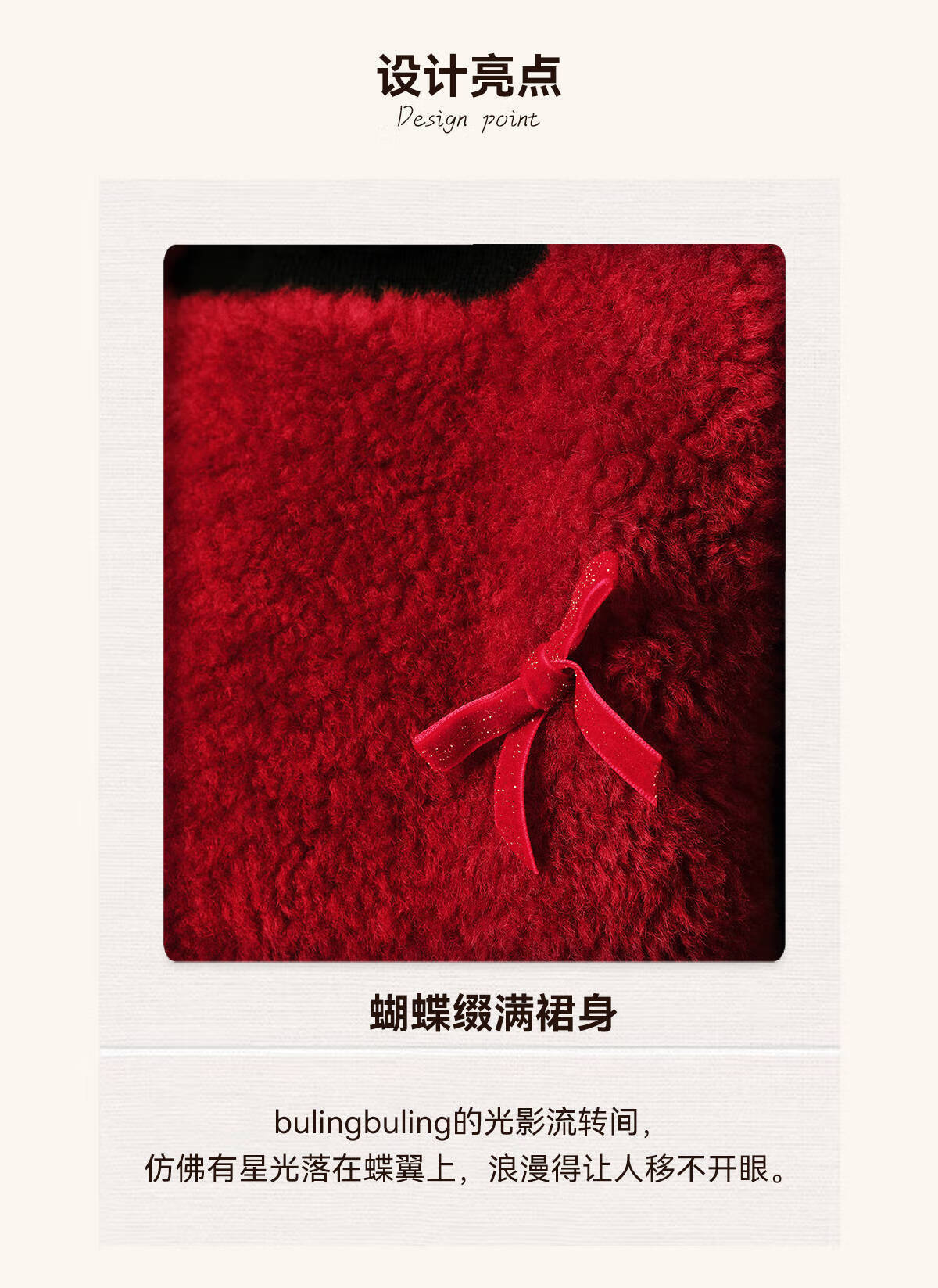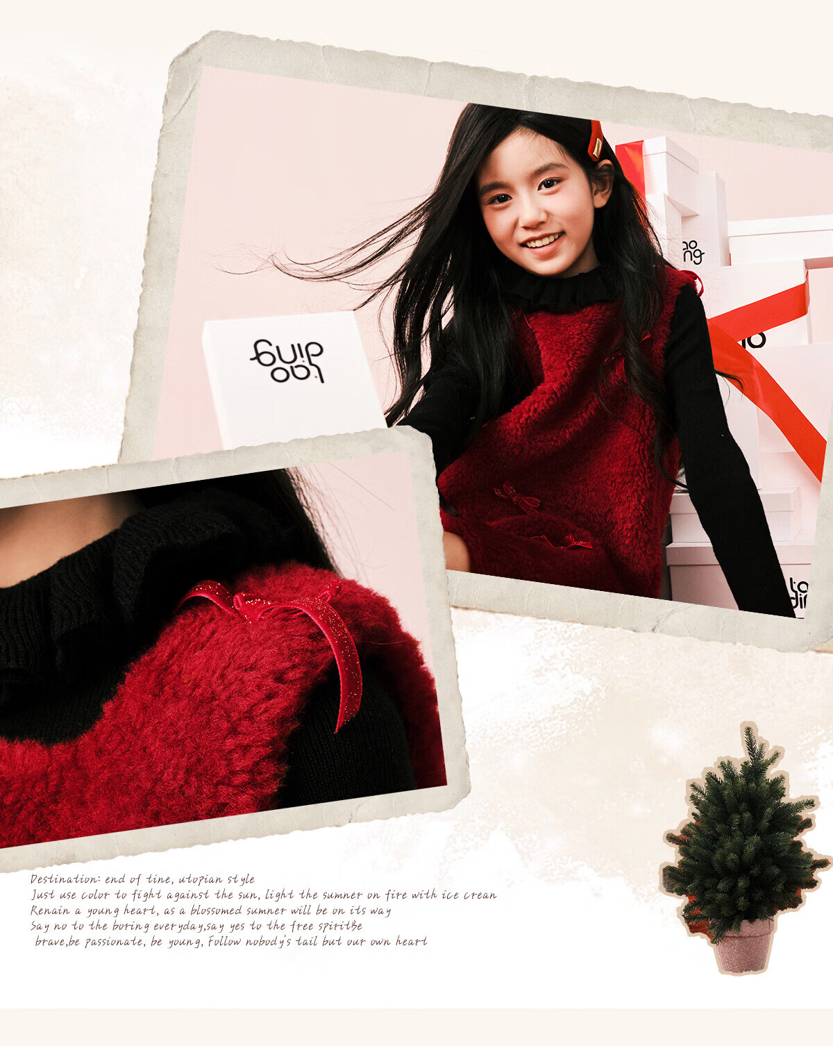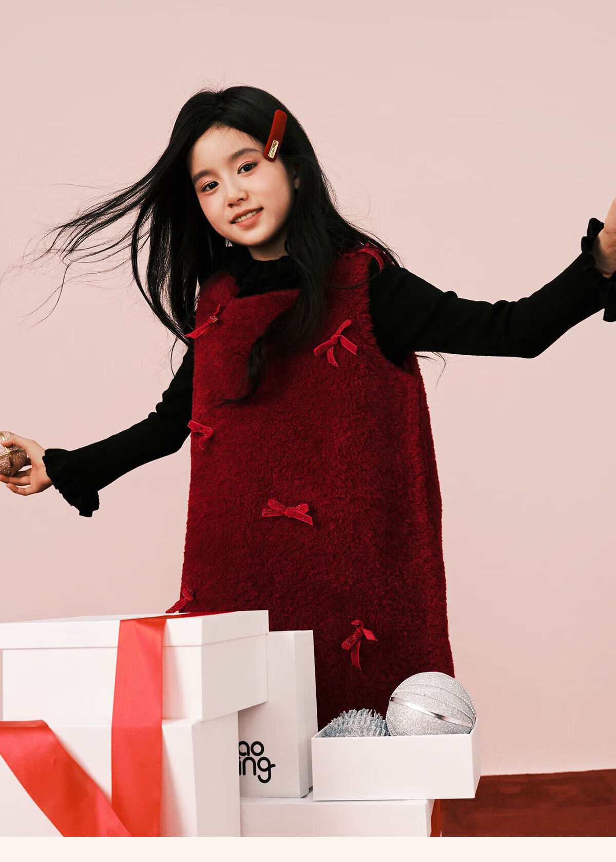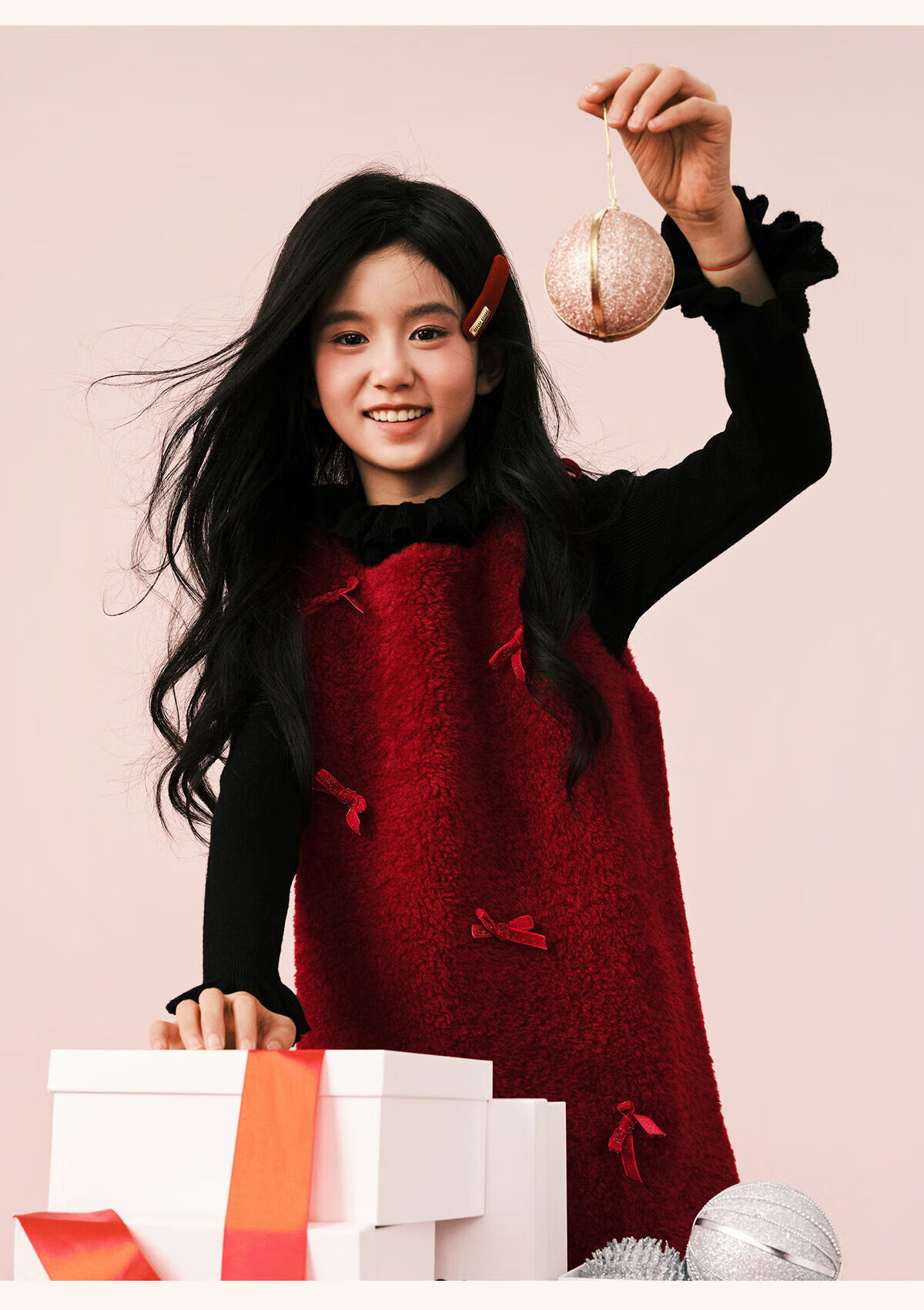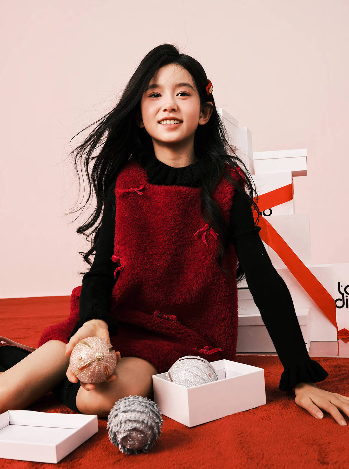 Taoding New Year Girls Dress Spring and Autumn Style Western Girl Thickened Warm Bow Fur Skirt Small Tank Top