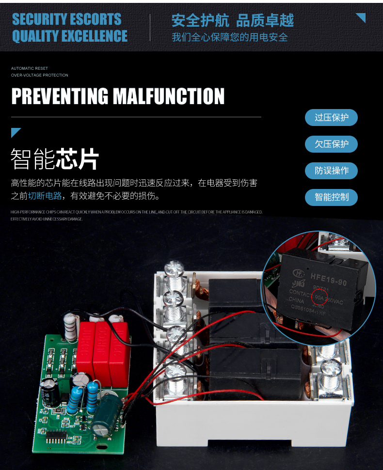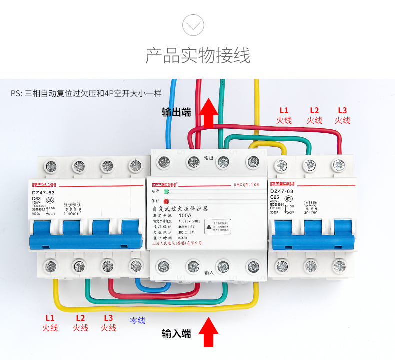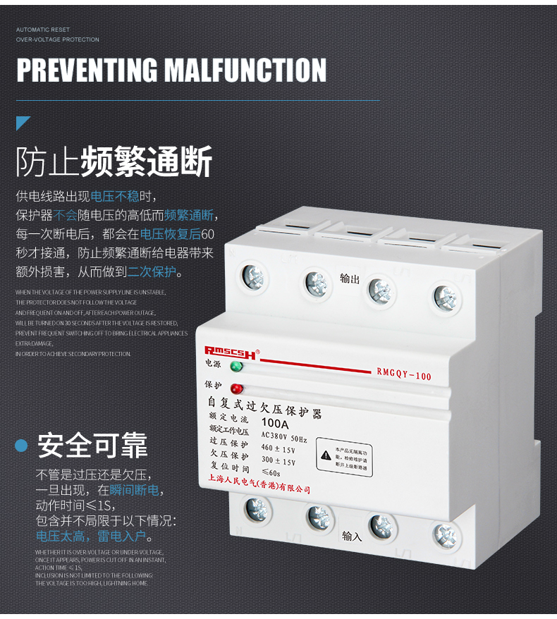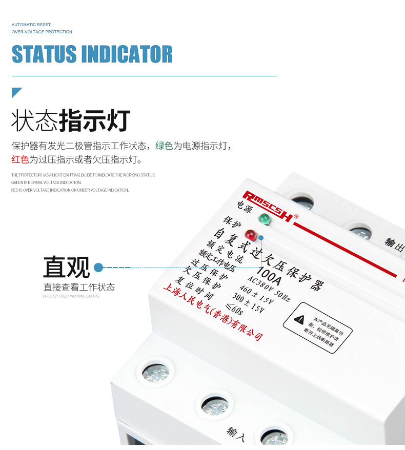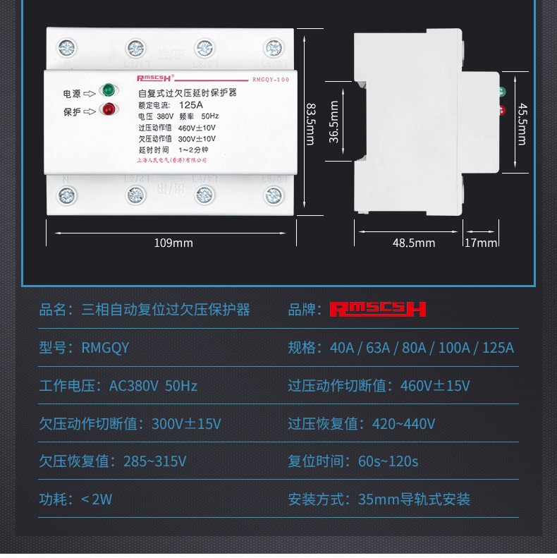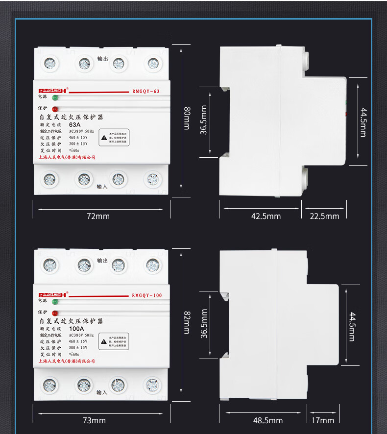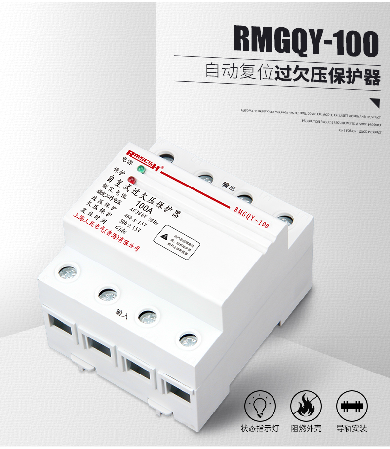 Self-restoring overvoltage and undervoltage protector phase loss overvoltage three-phase four-wire 380V photovoltaic automatic reset switch 80A 4p