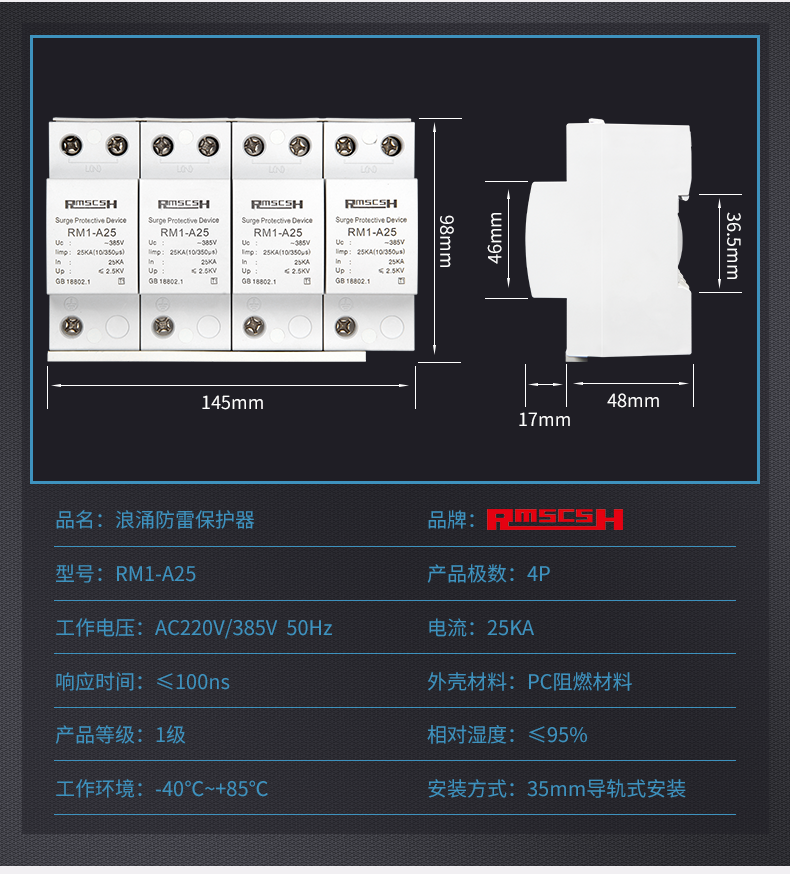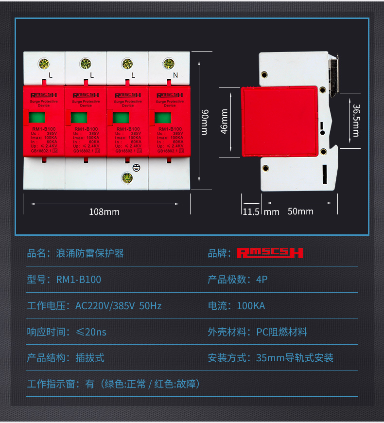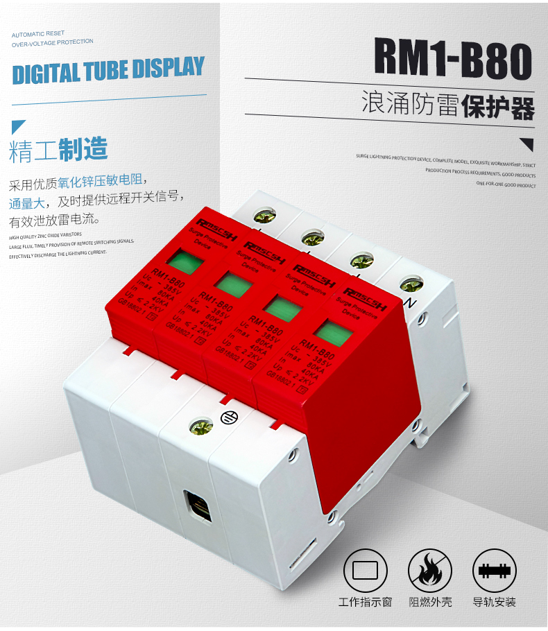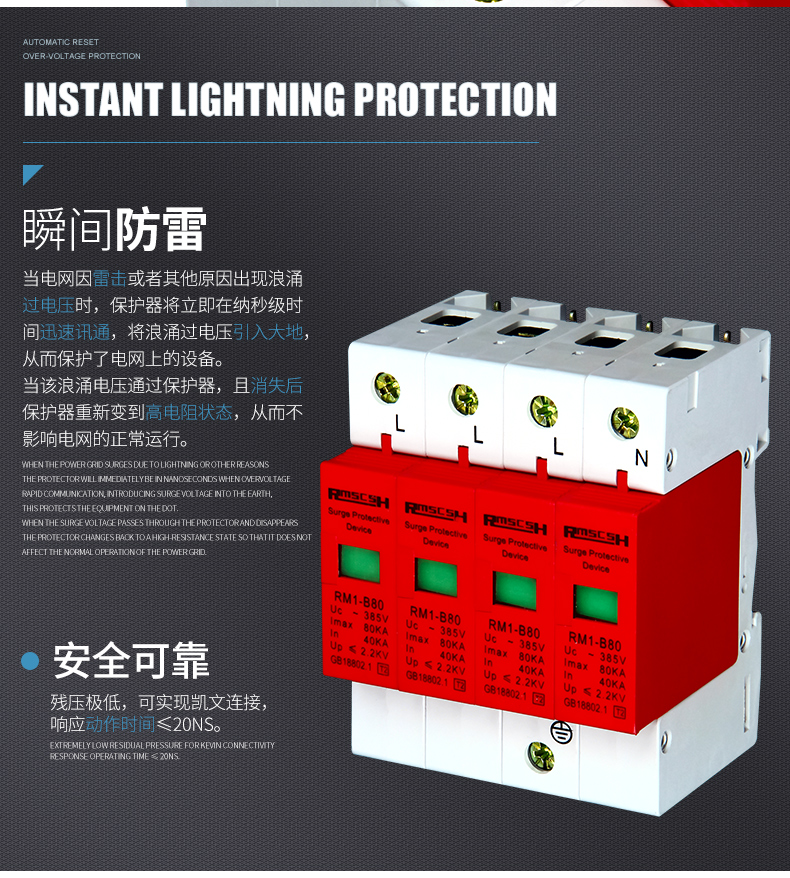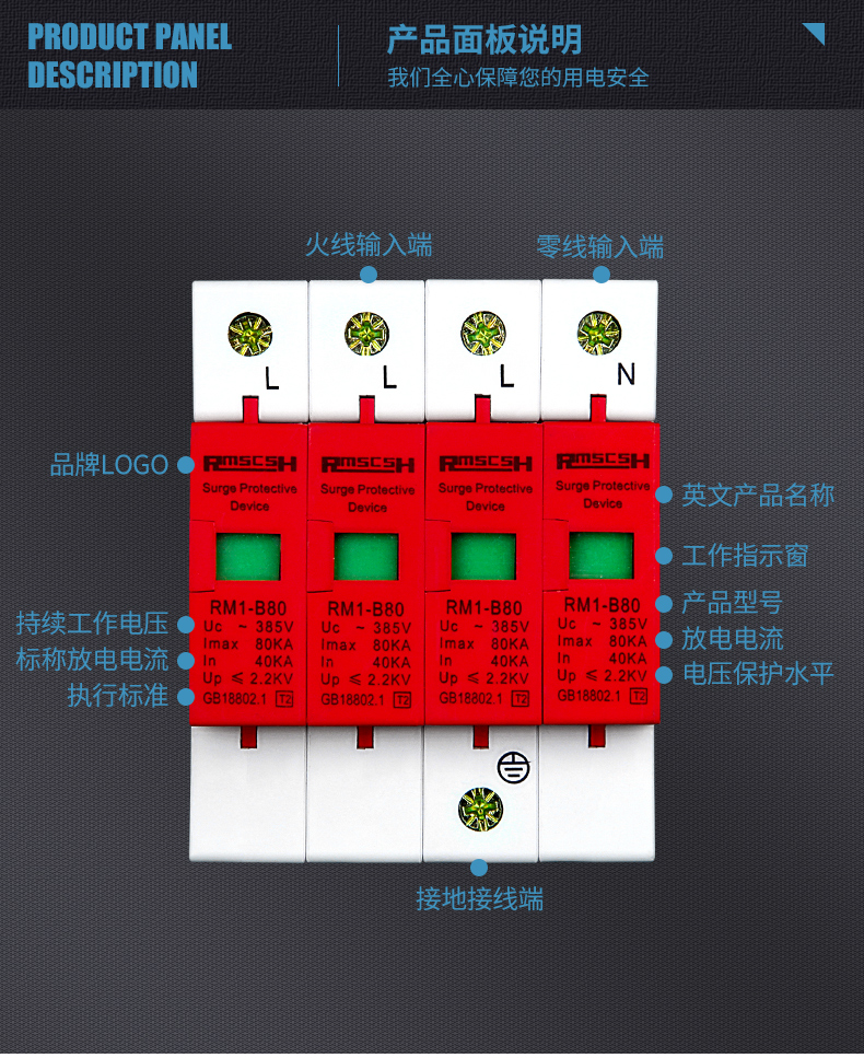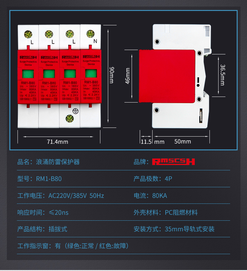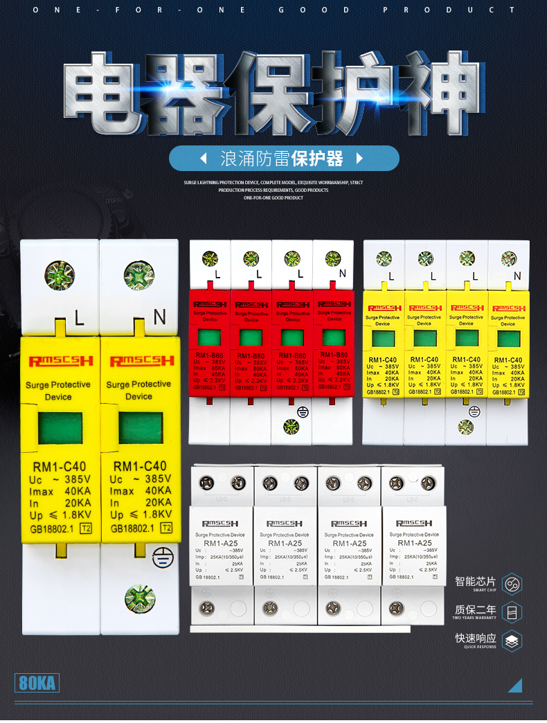 Shanghai People's 2P/4P first-level surge protector 220/380V lightning arrester lightning switch surge protector anti-lightning single-phase-2P-80KA