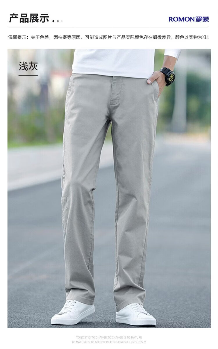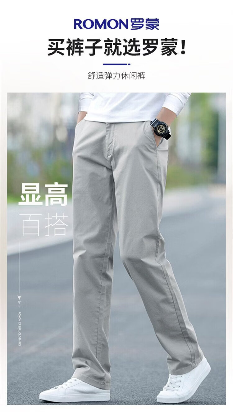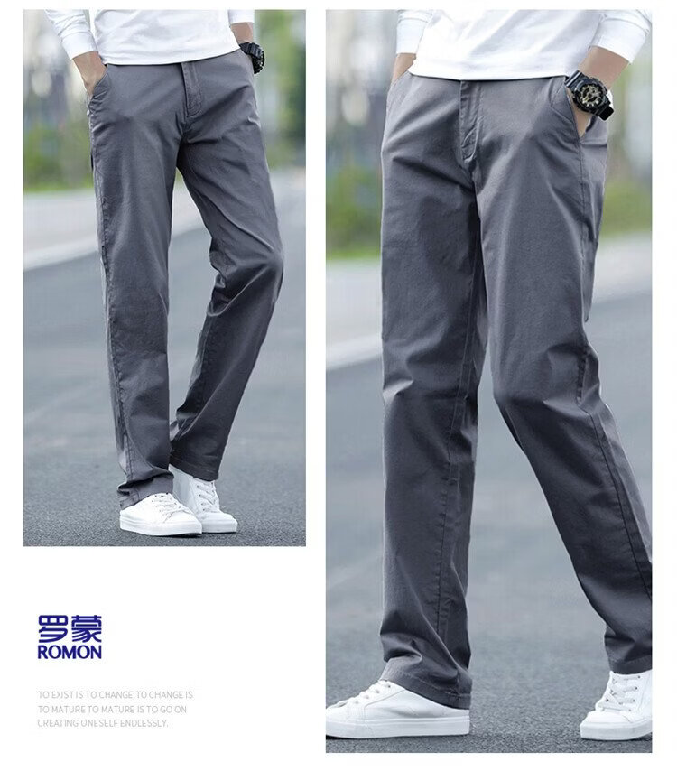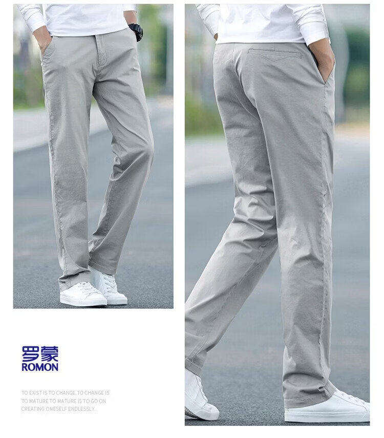 ROMON casual pants men's 2026 spring new business pants men's loose straight trousers light gray 32