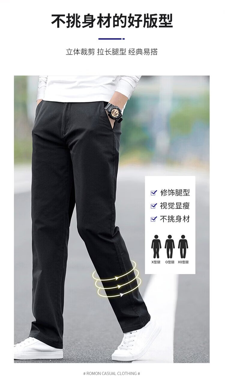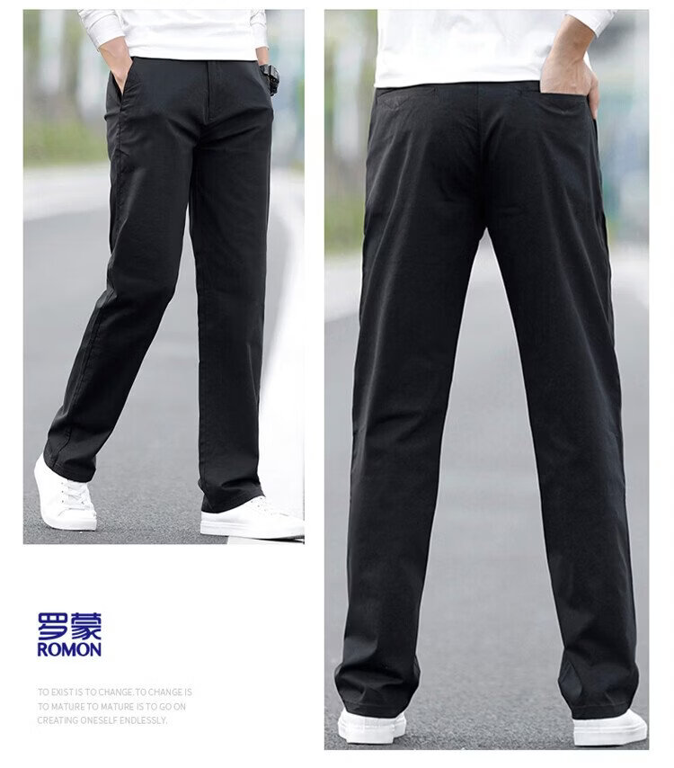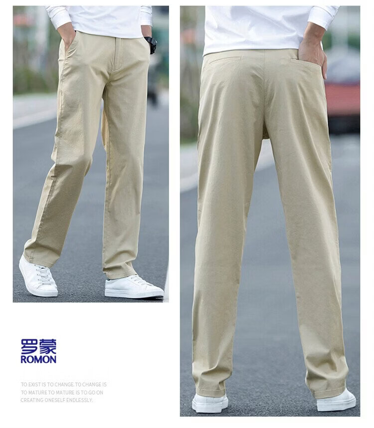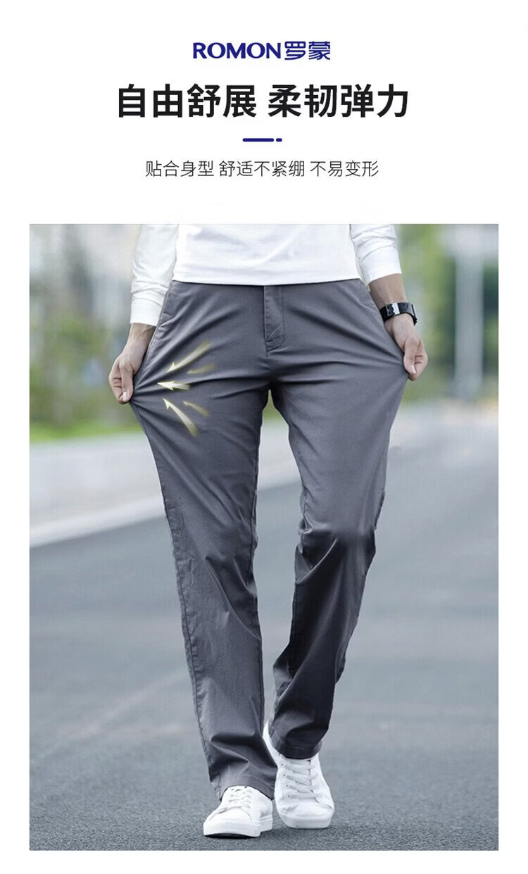 ROMON casual pants men's 2026 spring new business pants men's loose straight trousers light gray 32