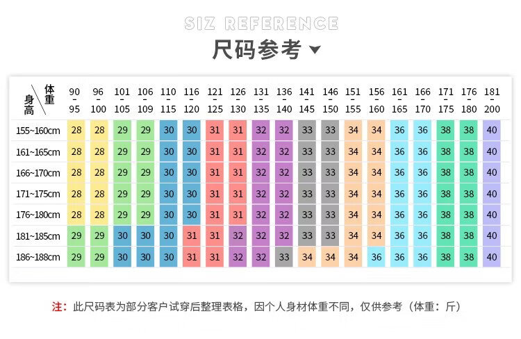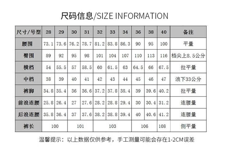 USA(inch) 28-30 30-32 32-34 34-38 38-42