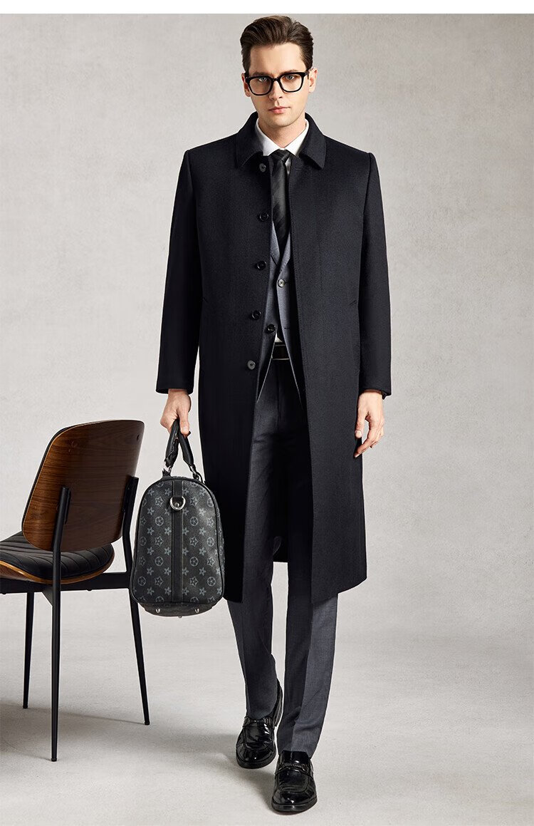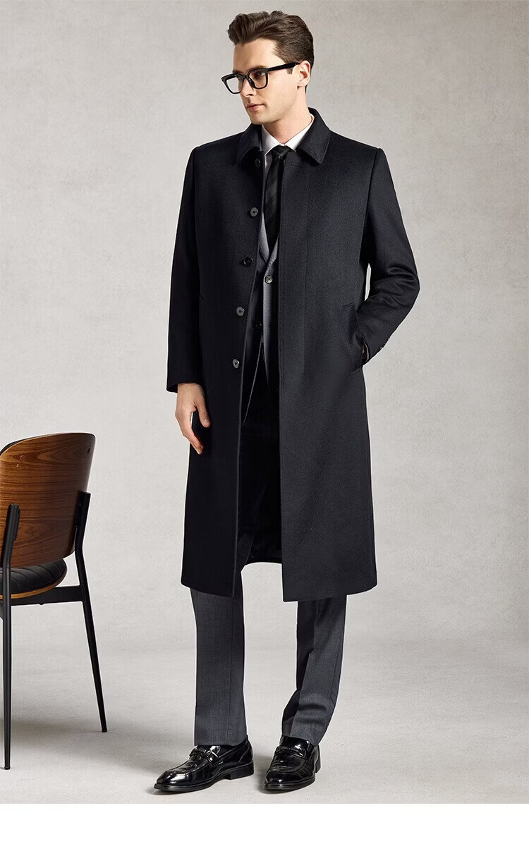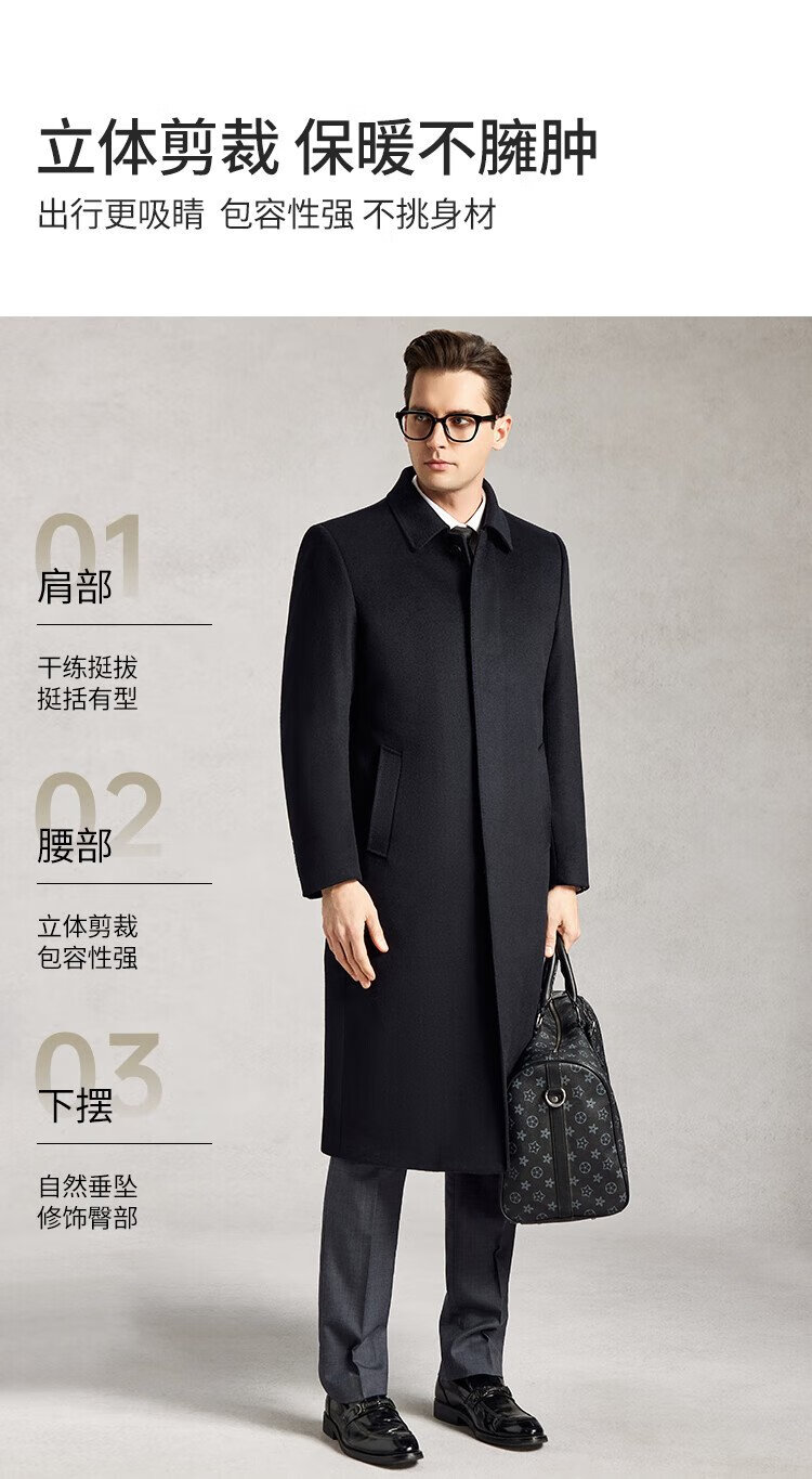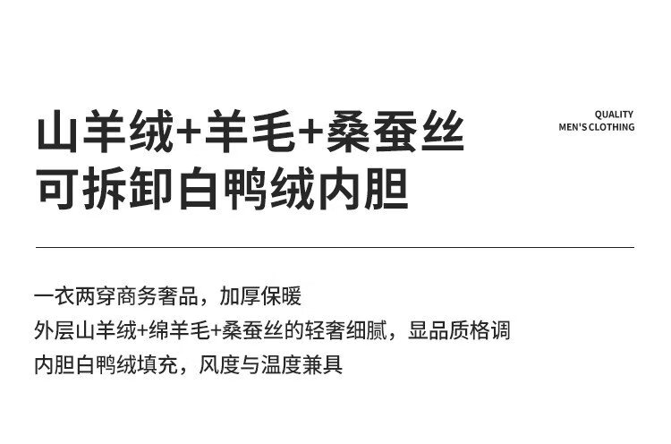 Lozi 80% wool & 10% cashmere & 10% mulberry silk long woolen coat high-end white duck down jacket for men