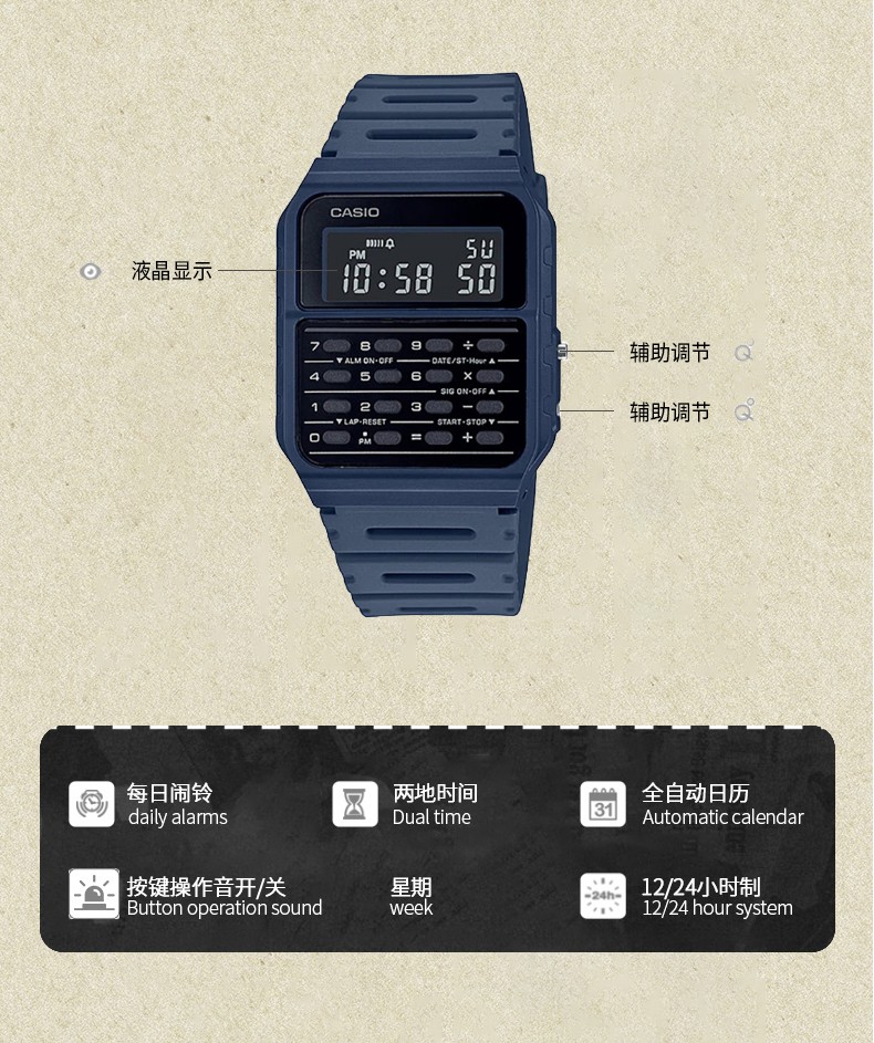 Casio (CASIO) watch, the same model as Breaking Bad's old white, retro small square calculator electronic watch, fashionable and trendy unisex watch CA-53WF-1B, recommended by the store manager
