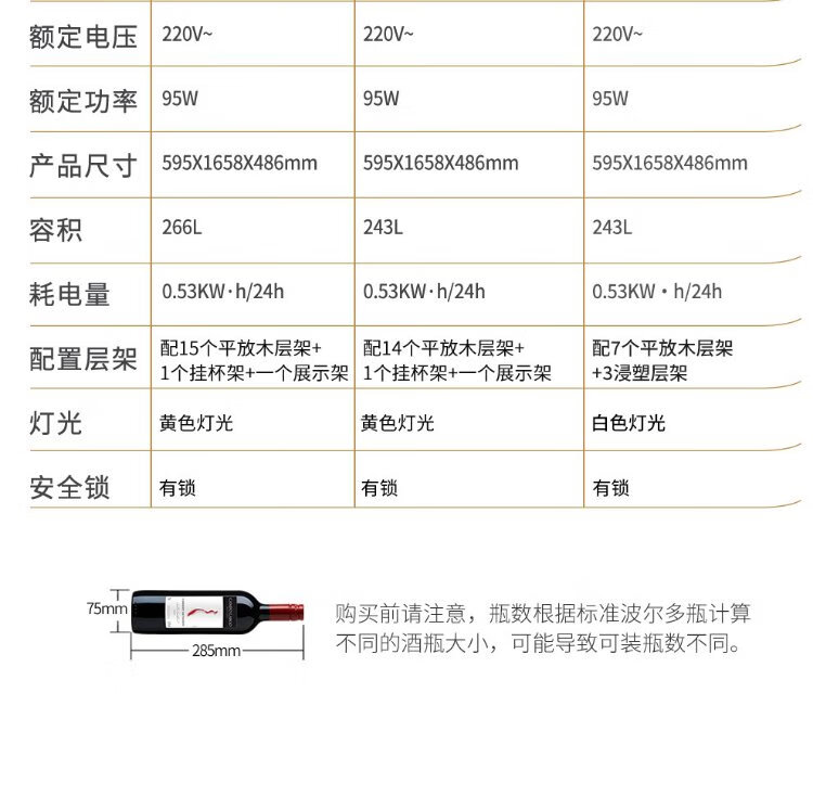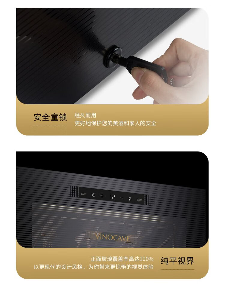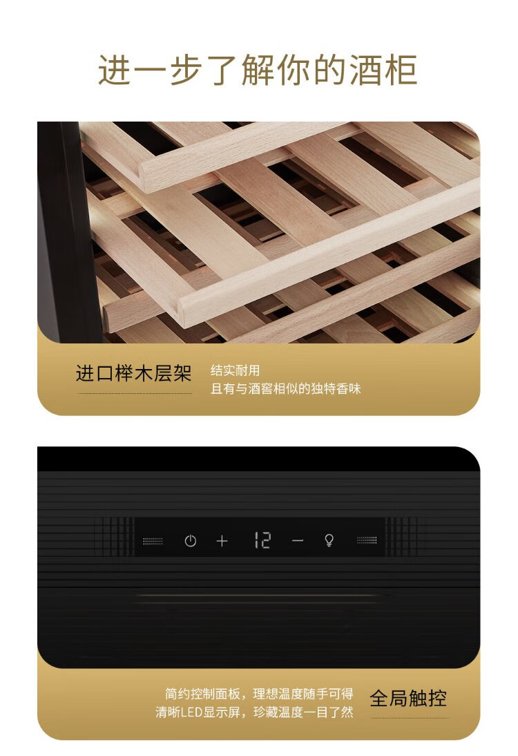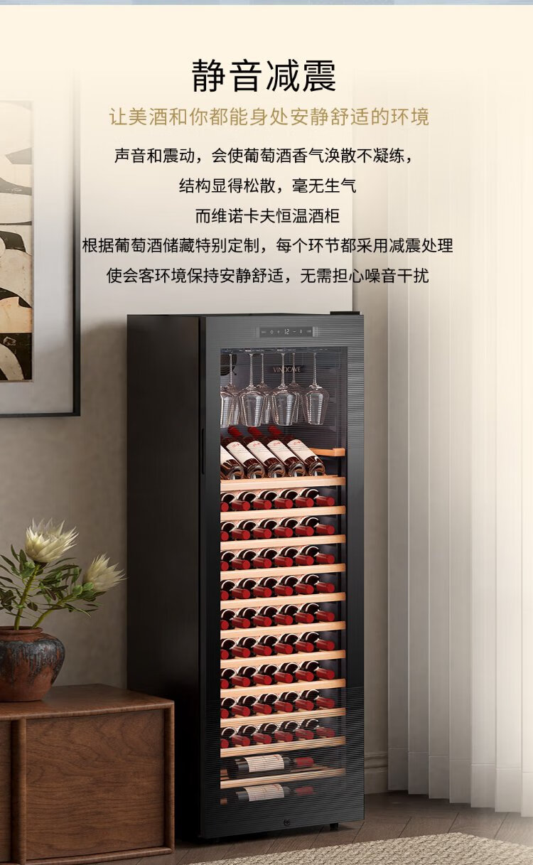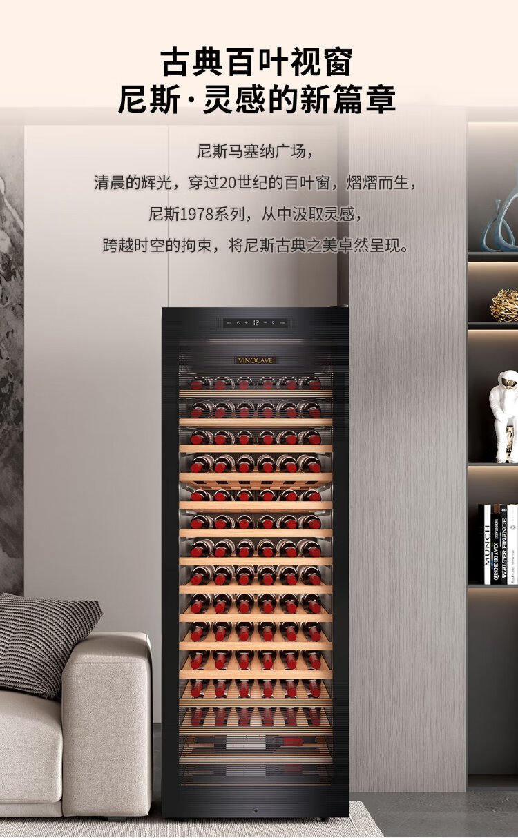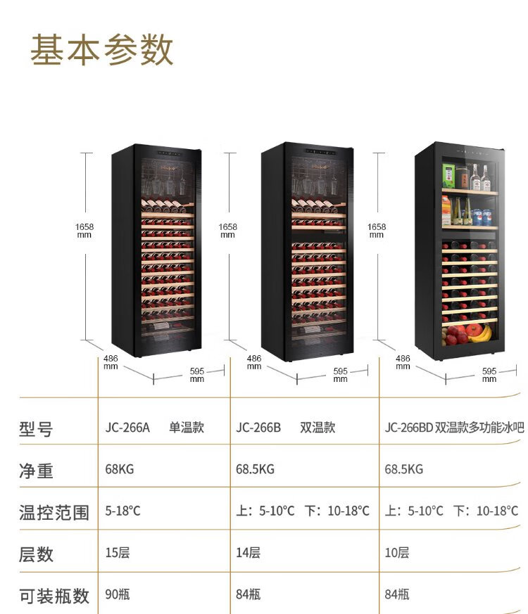 Vinocave red wine cabinet constant temperature compressor air-cooled ultra-thin refrigerator independent white wine grape display cabinet glass storage refrigerator JC-266A constant temperature air-cooled-single temperature model-90 bottles