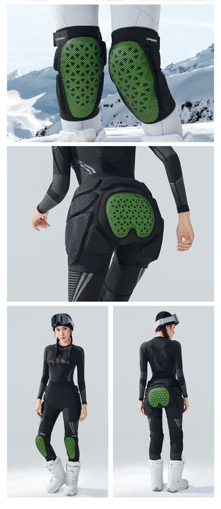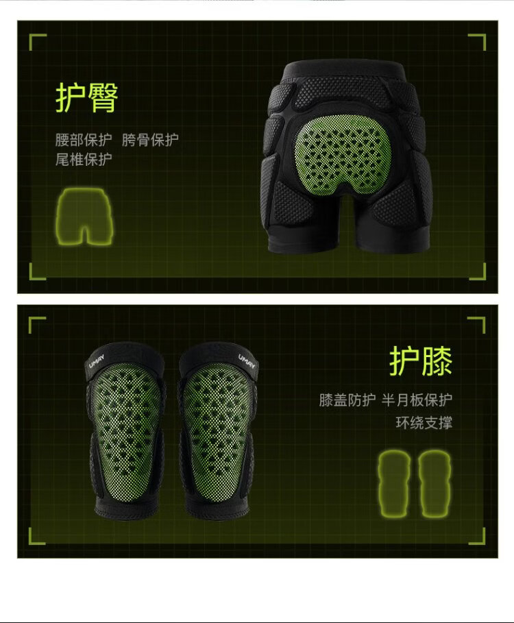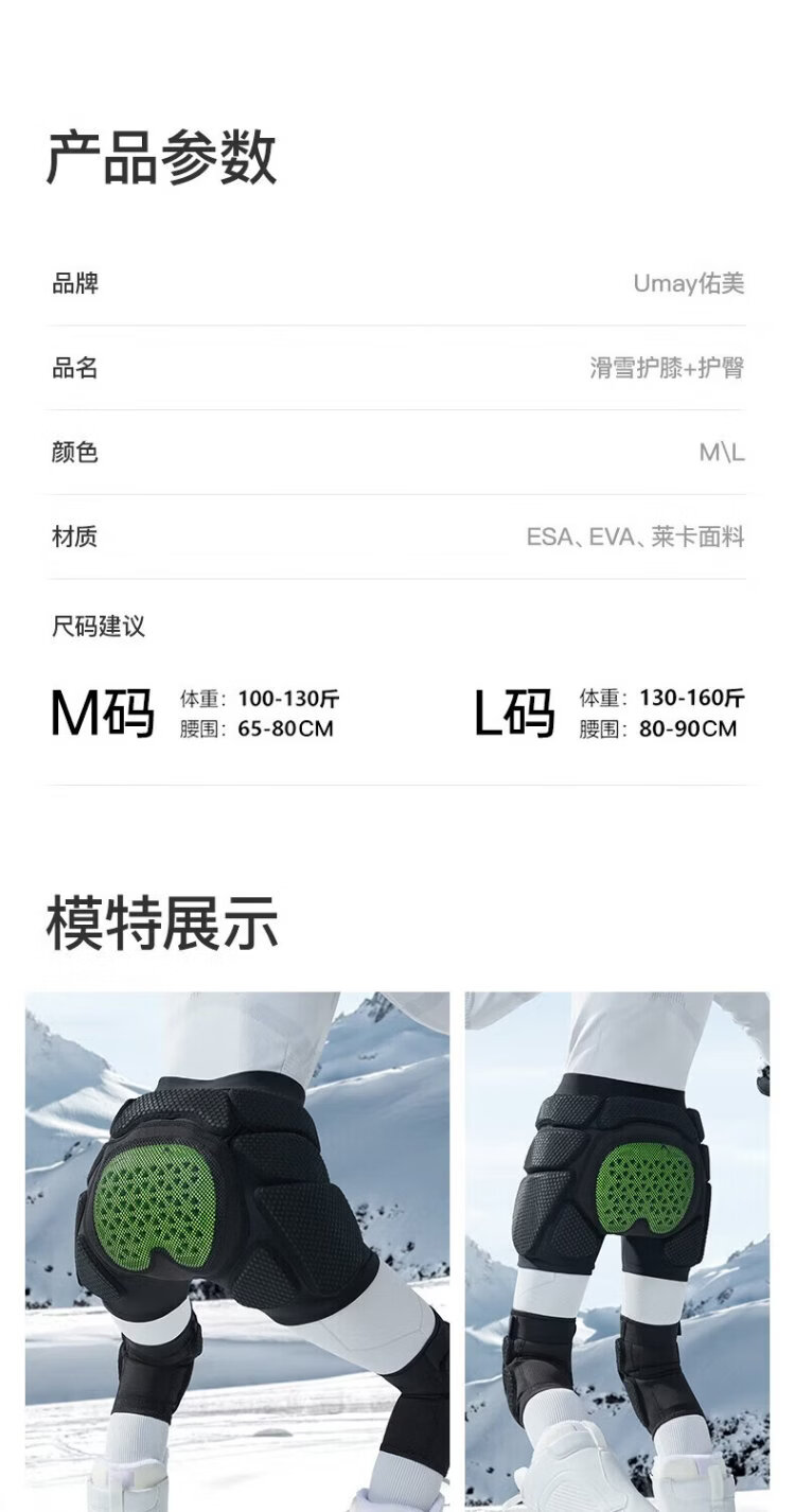 Youmei ski hip pads + ski knee pads M size ESA reinforced cushioning ski protective gear set L size