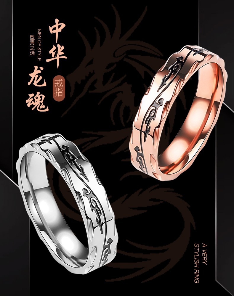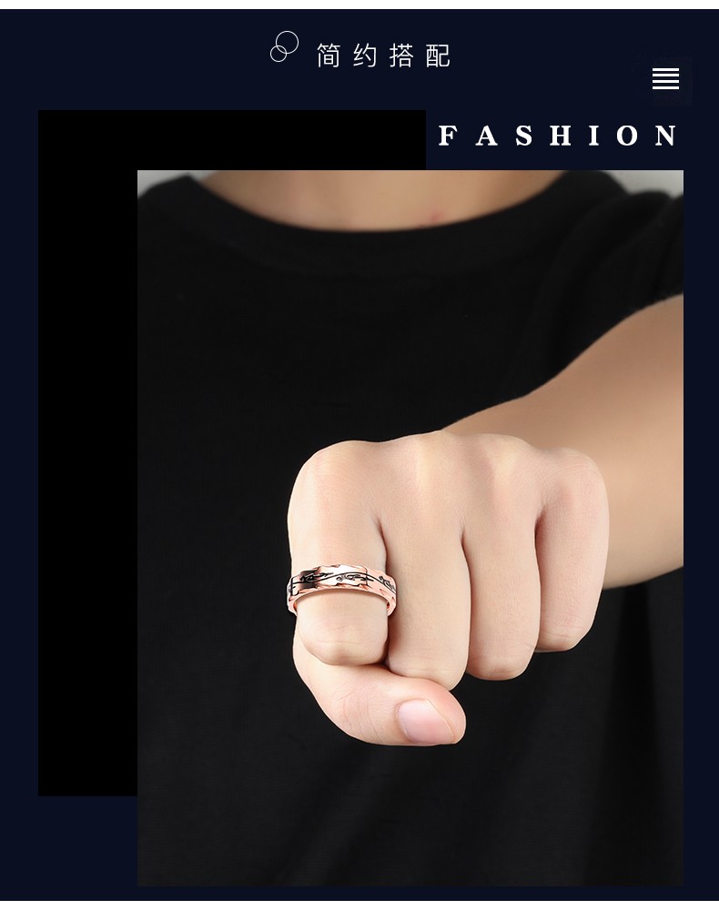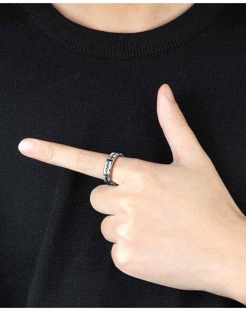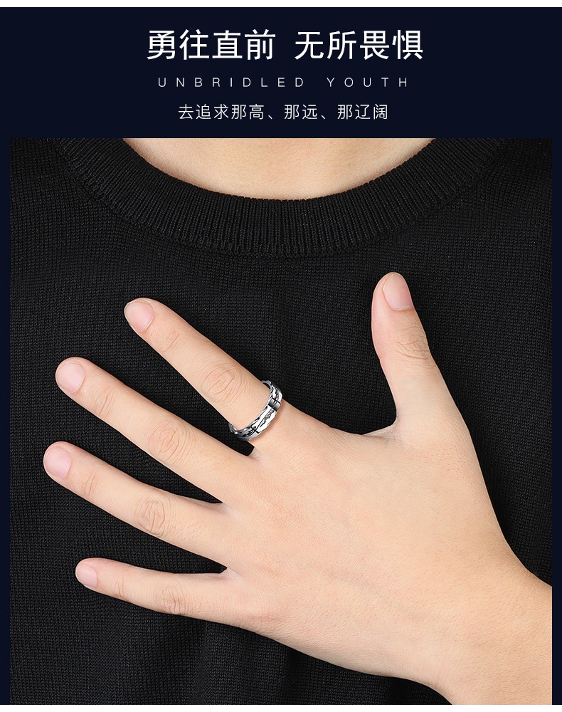 Core luxury engraving men's ring men's trendy Korean style hip-hop single men's open index finger ring adjustable tail ring
