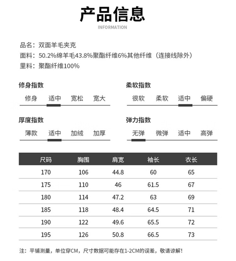 China (cm) 165 / 88-90 170 / 96-98 175 / 108-110 180 / 118-122 185 / 126-130